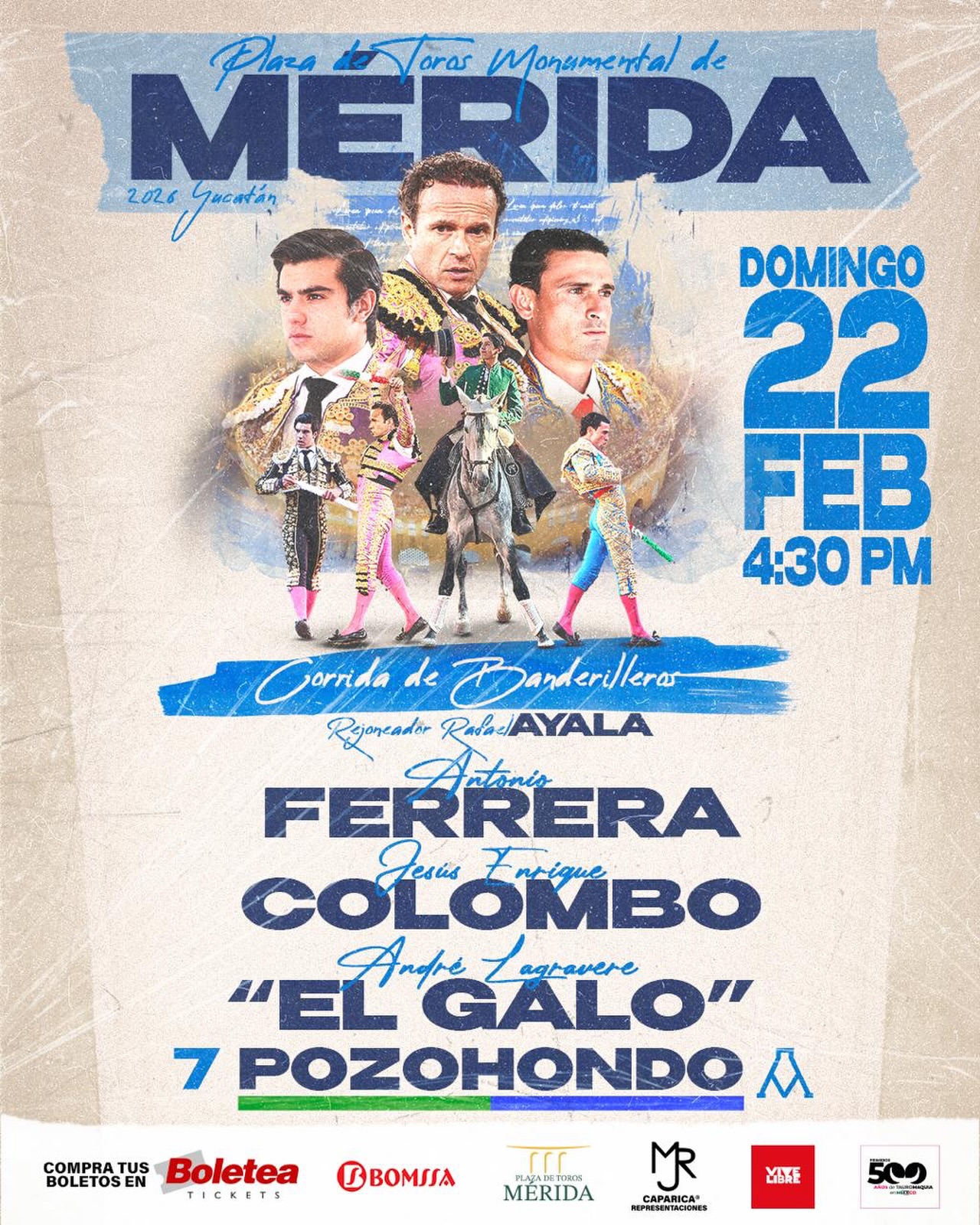 En el cartel figuran para el lunes 12 de Diciembre a las 3 de la tarde: El Rejoneador Hidalguense Leonardo Zatarain acompañado de los Forcados de Xico, Alejandro Lima «El Mojito» y el ídolo de la región David Aguilar, para lidiar hermosos toros de «Pie de Casas» propiedad de Don Ramón Serrano.