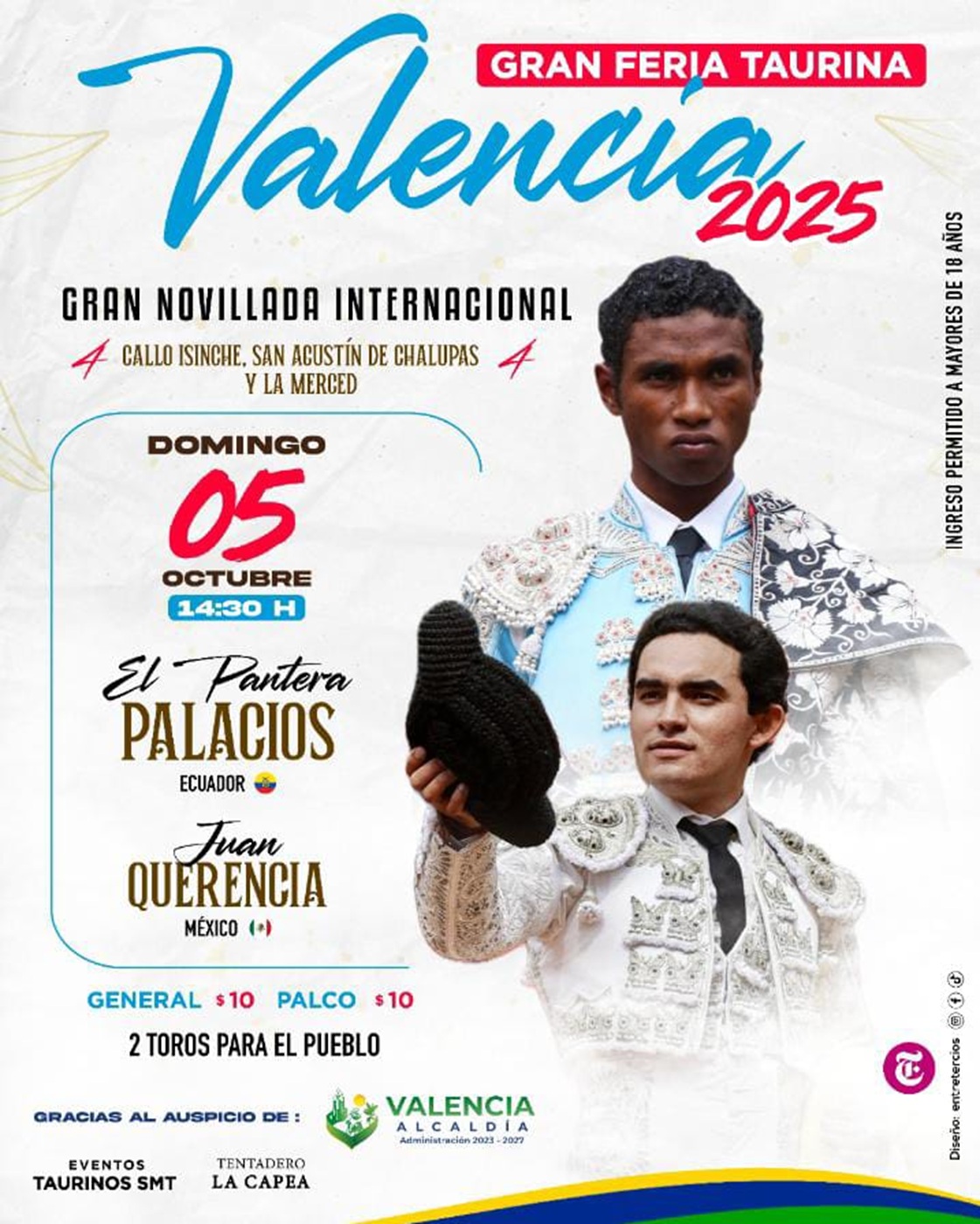 El destacado novillero queretano Juan Querencia ha sido contratado para que, el próximo domingo 5 de octubre de 2025, haga su debut como torero en ruedos del extranjero, lo que ocurrirá en el coso de Valencia, Ecuador, cabecera cantonal del Cantón de Valencia, sexta ciudad más grande y poblada de la provincia de Los Ríos, localizada al centro-norte de la región litoral del país sudamericano, dentro de su feria tradicional en honor a San Francisco de Asís y donde habrá de sostener un mano a mano con el espada anfitrión Juan Palacios “El Pantera”.