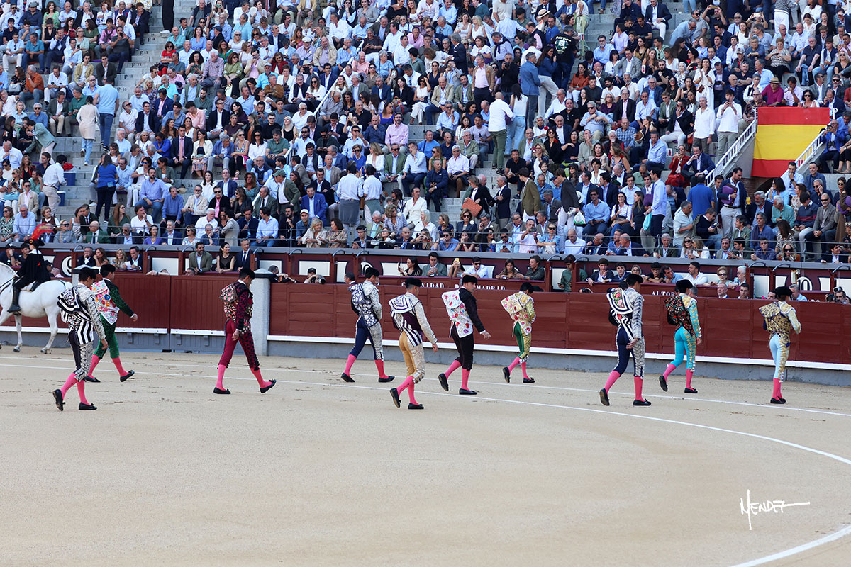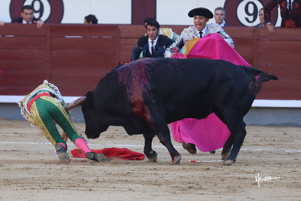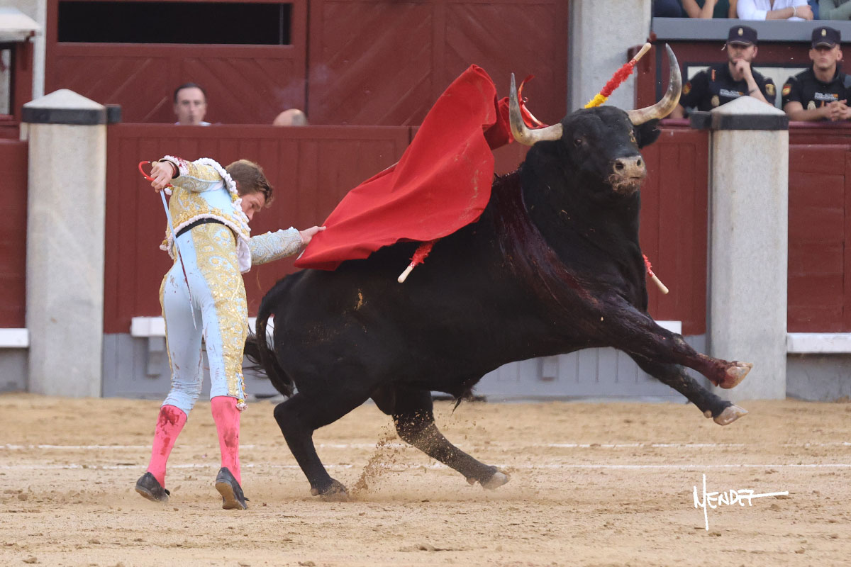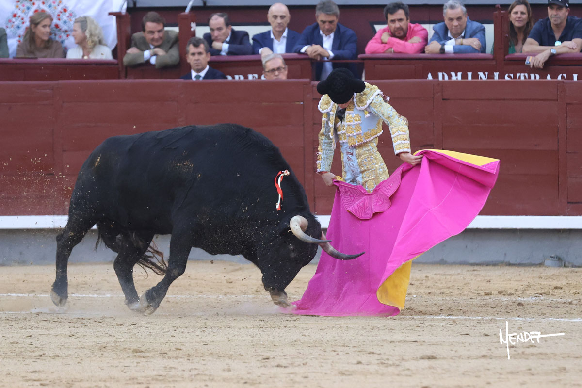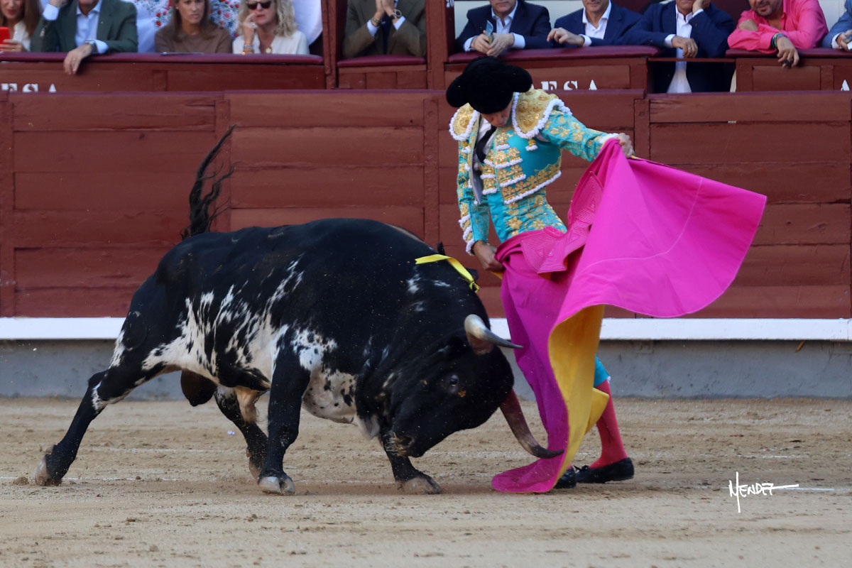 Las Ventas ha celebrado la primera corrida de toros y el segundo festejo de su Feria de Otoño, en la que los diestros Emilio de Justo, Borja Jiménez y Tomás Rufo se midieron a los ejemplares de la ganadería de Victoriano del Río y Toros de Cortés (5°). Los animales fueron variados en comportamiento, aunque de opciones limitadas y de embestidas. Se dejaron llevar, dejando pinceladas y muchos matices de calidad. Destacaron muy por encima el segundo y el sexto. Emilio de Justo se dispuso ante el primero y en la primera tanda se le metió por dentro y lo prendió feamente, teniendo que hacerse cargo Borja Jiménez. Aunque la tarde parecía que se quedaría en mano a mano tras el percance del extremeño, en el sexto toro y después de probarse, decidió salir para torear el segundo de su lote. Cautivó, en una faena de poder, firmeza, clase y mucha determinación con la que llegó con fuerza a los tendidos. El sevillano emocionó y llegó con fierza ante el tercero, un toro al que llevó con gusto y verdad, pero con el que también se metió entre pitones. Desarrolló un faena de poder e imposición, estando por encima del quinto, un toro que pasaba sin decir demasiado. Tomás Rufo encuentra el acople ante el buen segundo, un toro repetidor, con celo y entrega. Lo intentó con el cuarto sin alcanzar a calar en los tendidos venteños.