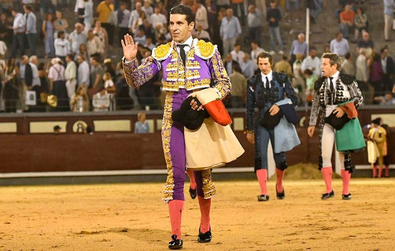Alejandro Talavante no pudo lucirse con «Morado» en su saludo capotero. se alcanzó la faena de muleta y bajo el tendido del ocho lo fue pasando por ambos pitones mientras le iba ganando terreno para llevárselo a los medios con torería. Siguió por el pitón izquierdo, alargando el trazo, llevándolo hasta el final. Fueron muchos los intentos del extremeño, que no terminaba de acoplarse con el. Le pasó en su muleta perdiéndole pasos sin encontrar la ligazón con un animal que no transmitía, solo pasaba. Alternó pitones buscando gustar y llegar al tendido, pero solo logró una tanda corta al natural reconocida. Al segundo intento hundió la espada.