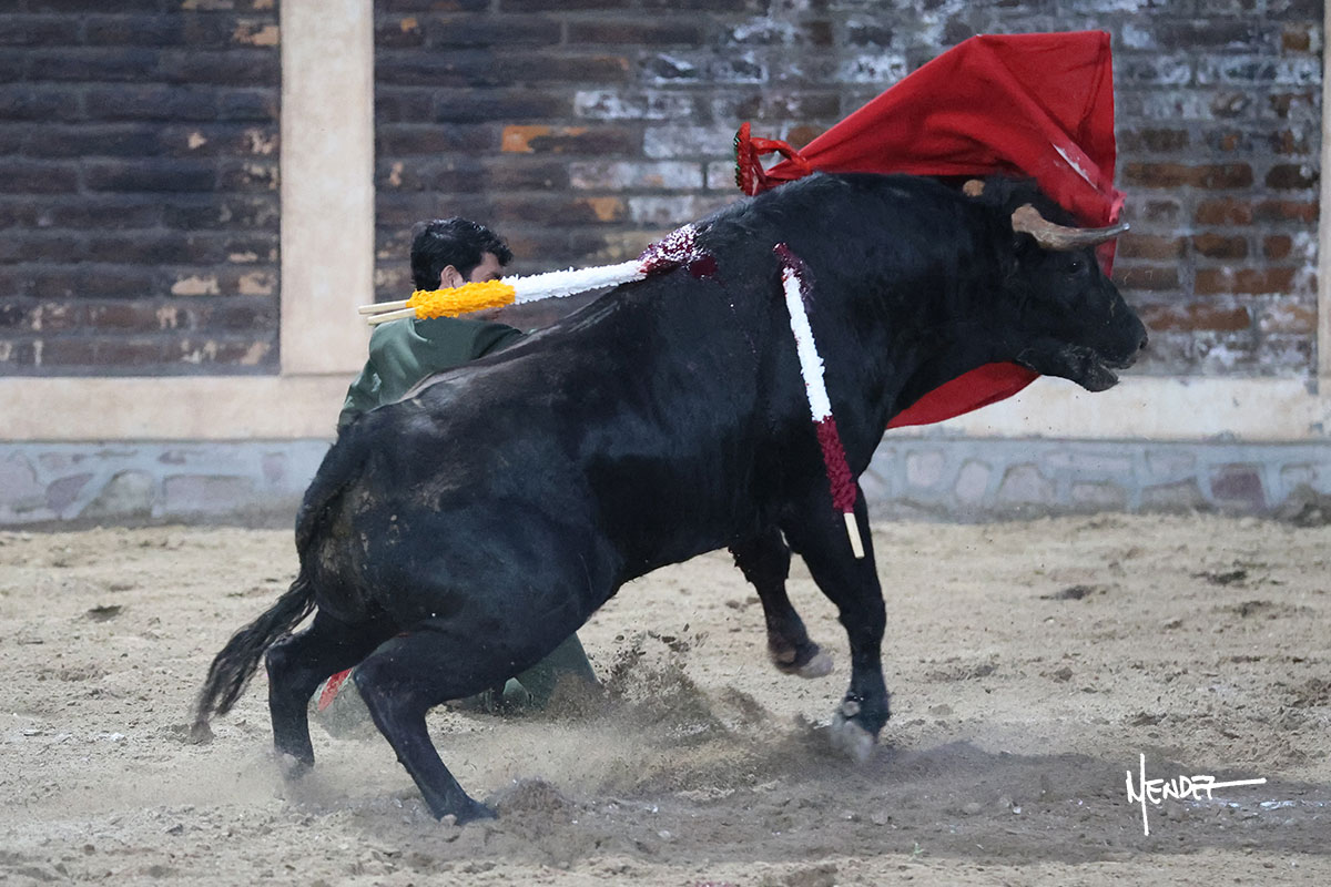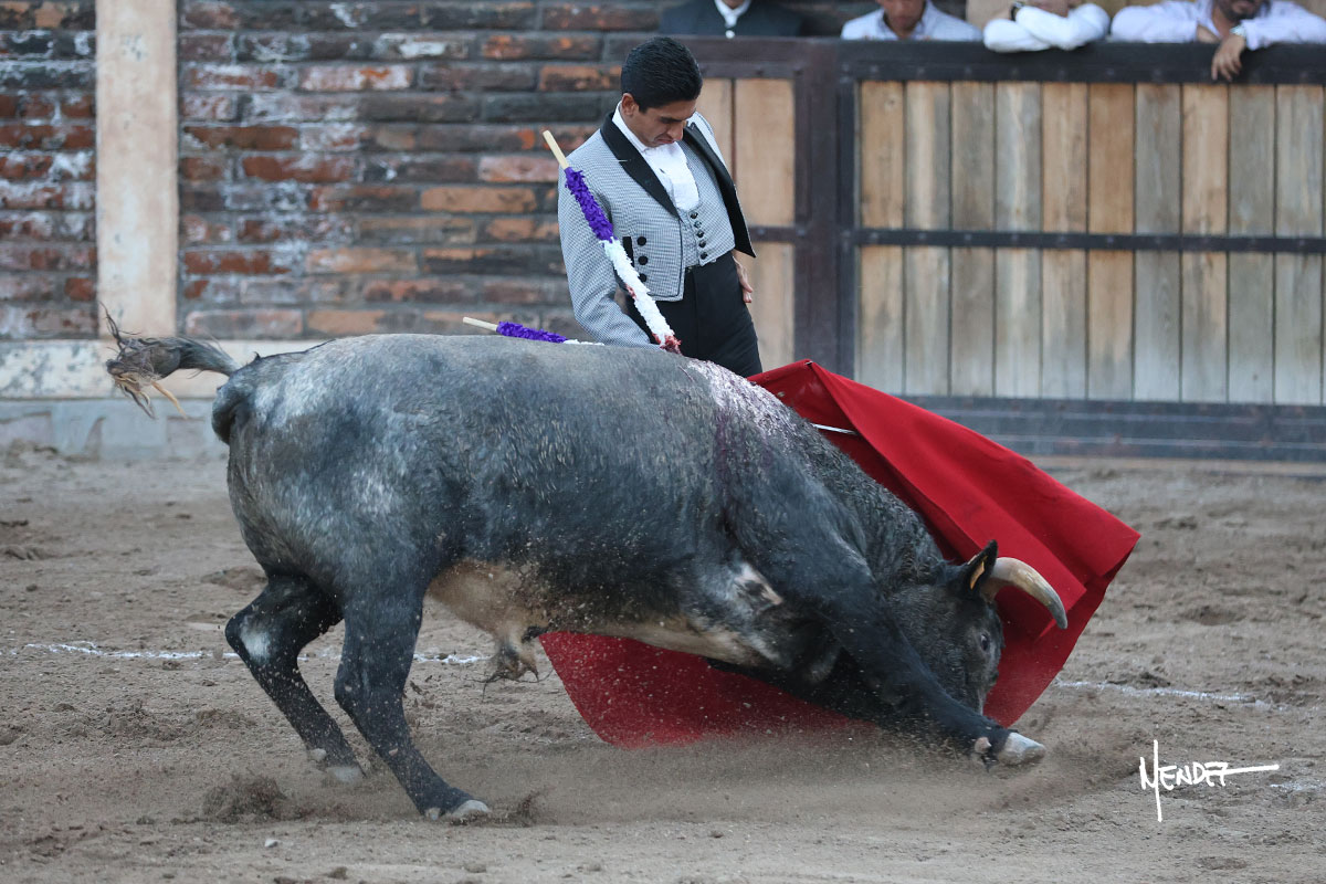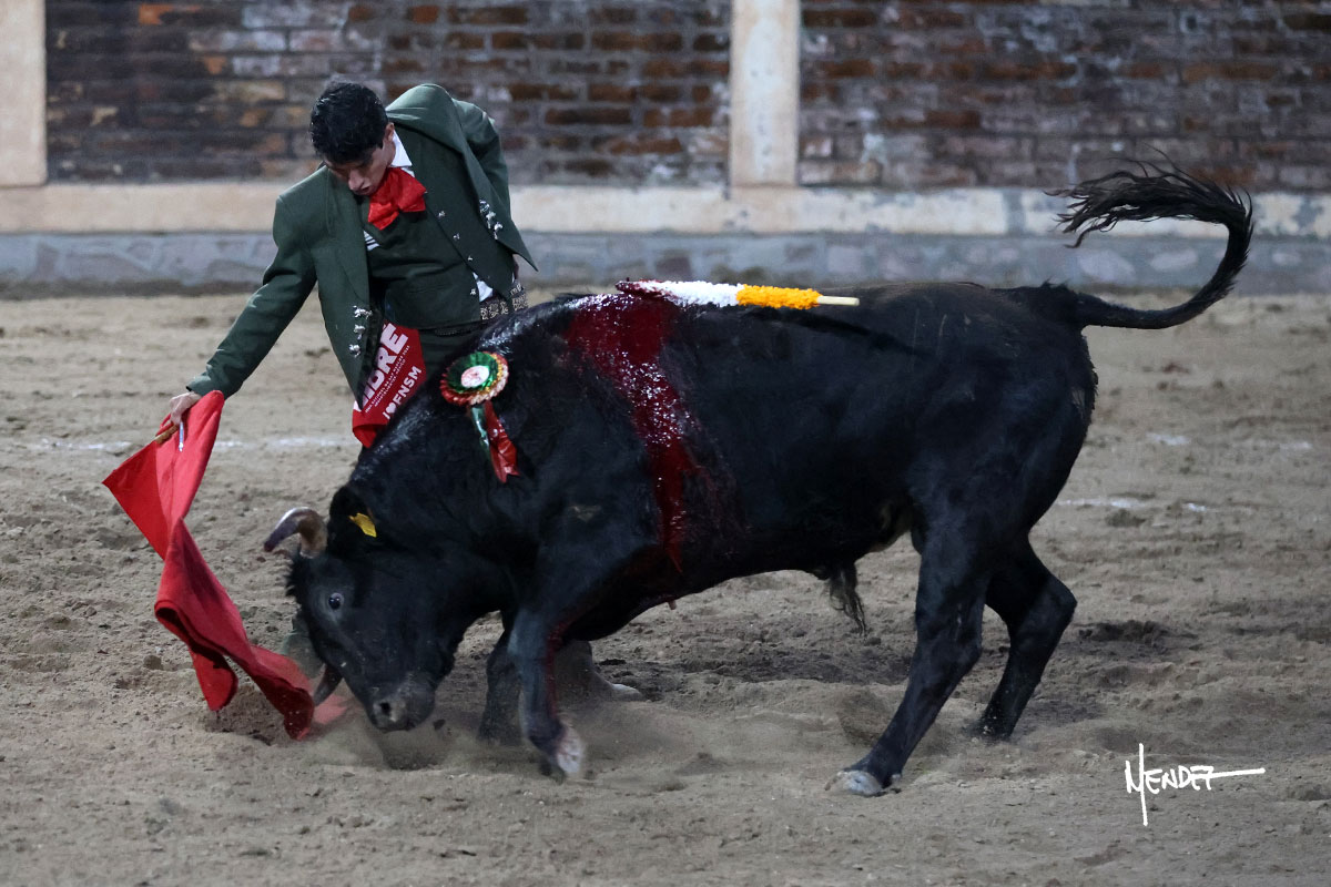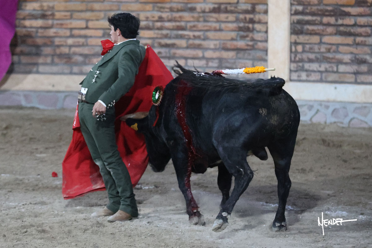 Y en el que cerró la función, “Invirtiendo Bienestar” de nombre, enrazado, el michoacano Isaac Fonseca le puso empeño a su actuación capoteril. Con el lienzo carmesí, luego de brindarle a los señores Óscar Reynoso y José Aspe, principales personajes en el montaje de este festejo benéfico, ejecutó una labor que inicio de rodillas por alto y, ya de pie, siguió por derechazos de impactante factura y mucha cadencia y hondura, intercalando molinetes de hinojos y de pie por los dos pitones. Al natural le puso valor y recursos para lograr lucirse. Acortó distancia para encadenar un derechazo, el cambiado por la espalda, el de pecho y ayudados por alto y por bajo para cerrar. Mató de estocada caída y atravesada para ser premiado con una oreja.