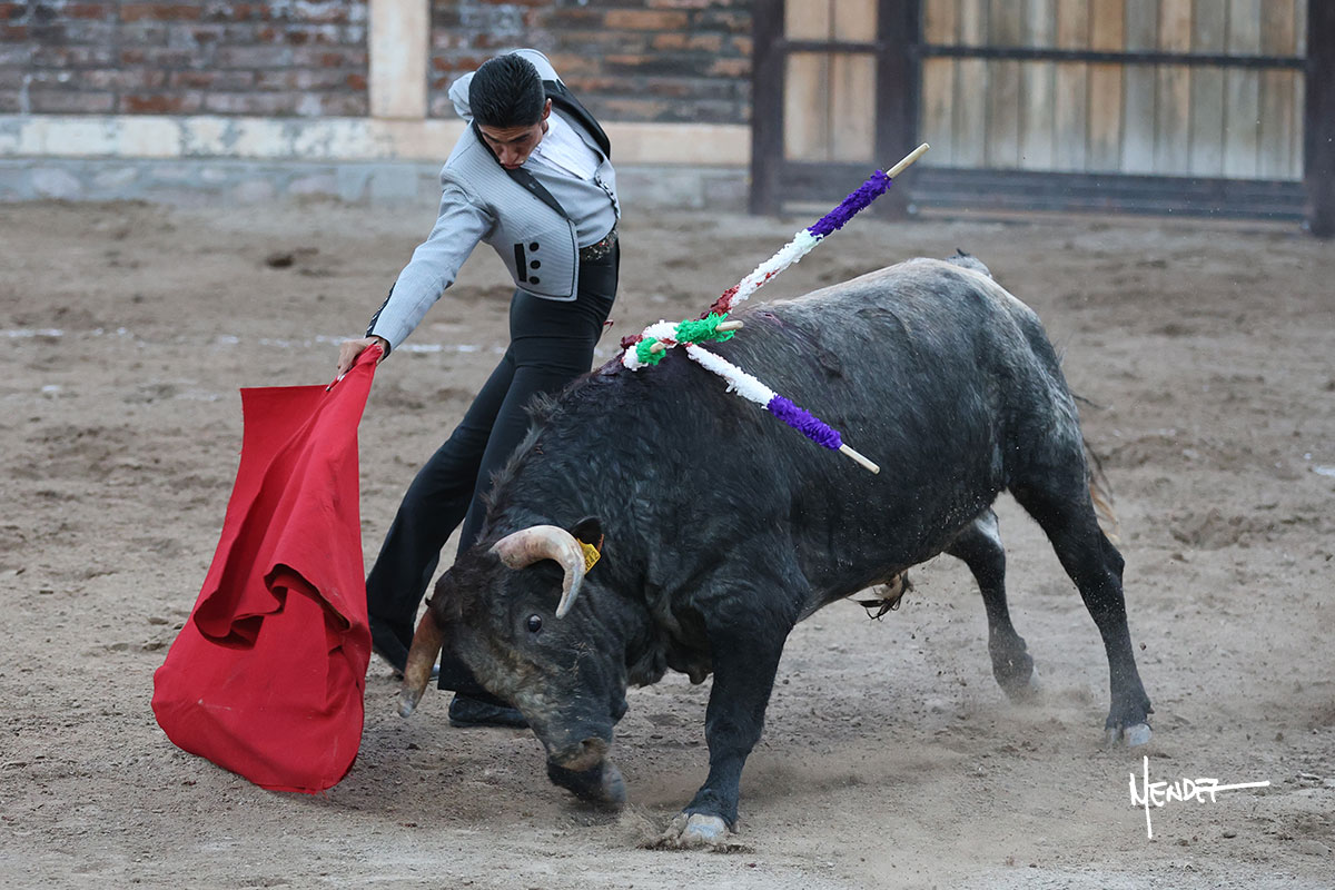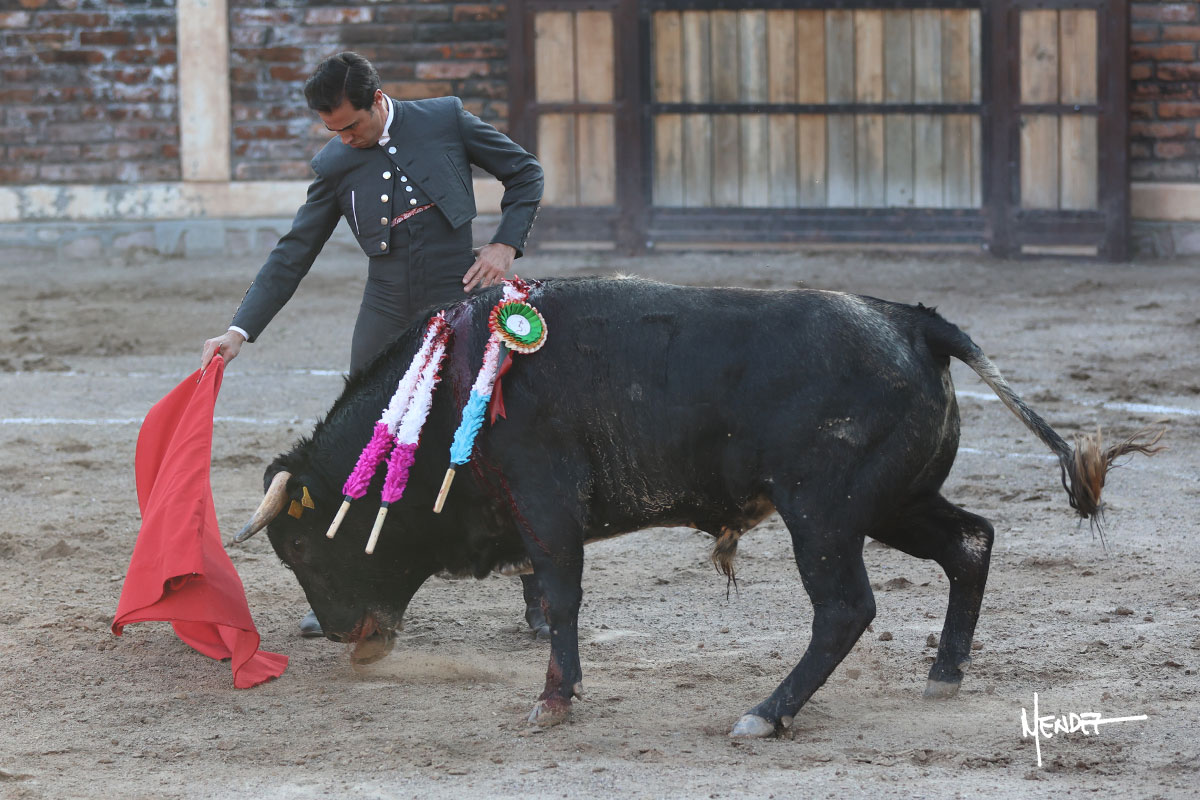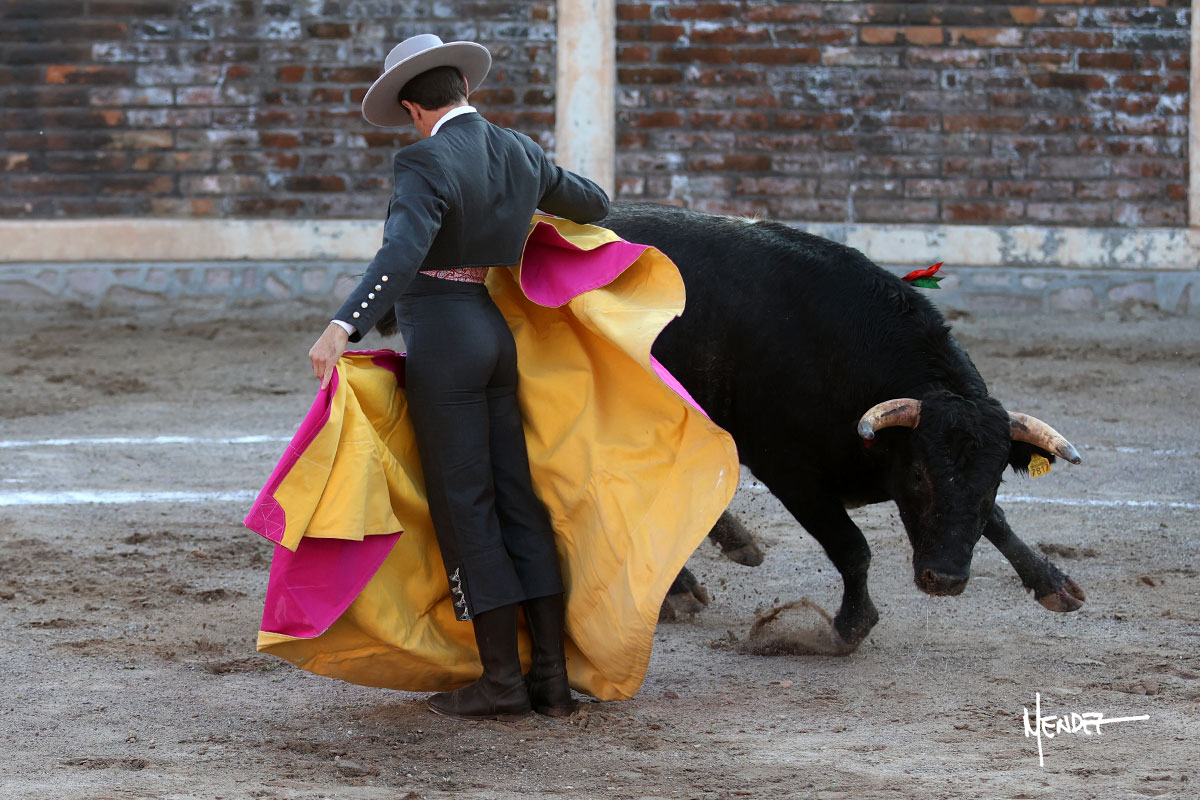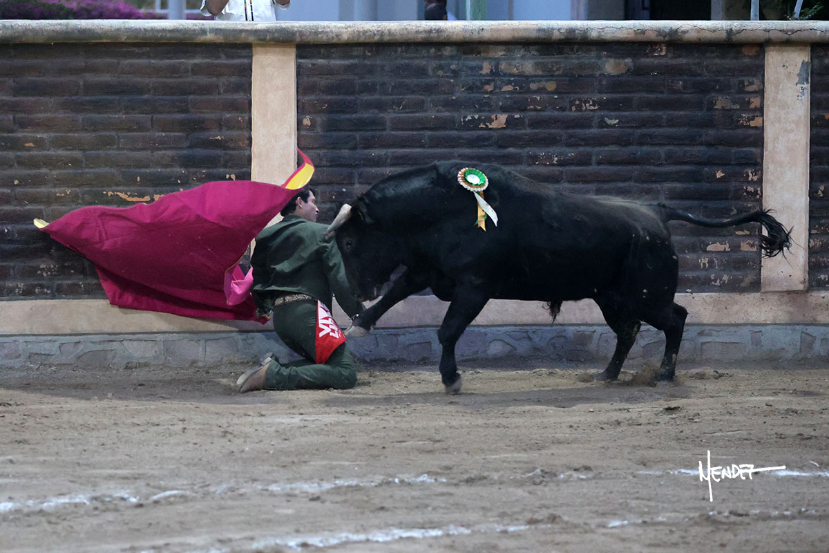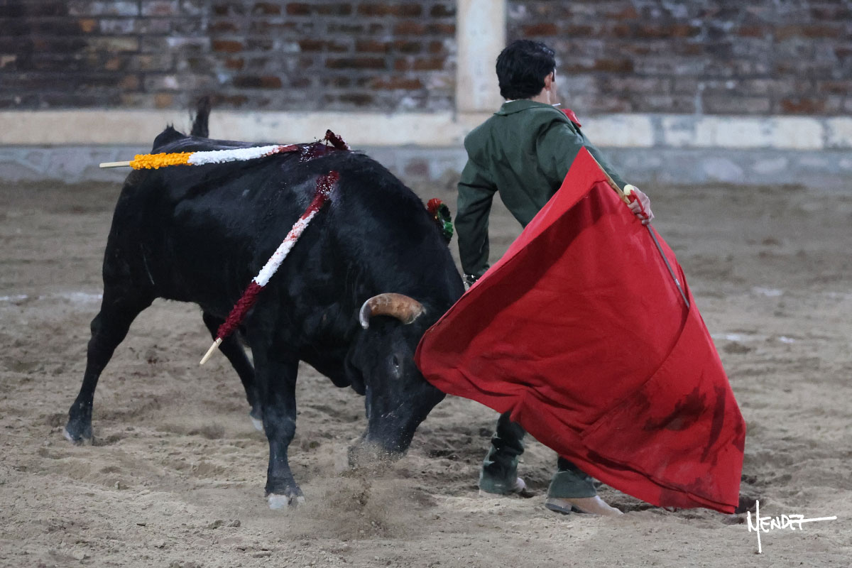 Y en el que cerró la función, “Invirtiendo Bienestar” de nombre, enrazado, el michoacano Isaac Fonseca le puso empeño a su actuación capoteril. Con el lienzo carmesí, luego de brindarle a los señores Óscar Reynoso y José Aspe, principales personajes en el montaje de este festejo benéfico, ejecutó una labor que inicio de rodillas por alto y, ya de pie, siguió por derechazos de impactante factura y mucha cadencia y hondura, intercalando molinetes de hinojos y de pie por los dos pitones. Al natural le puso valor y recursos para lograr lucirse. Acortó distancia para encadenar un derechazo, el cambiado por la espalda, el de pecho y ayudados por alto y por bajo para cerrar. Mató de estocada caída y atravesada para ser premiado con una oreja.