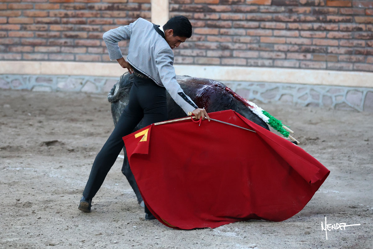 El diestro estatal Diego Sánchez, a su ejemplar, de buen juego, lo bregó de manera solvente. Con la sarga, tras brindarle a Claudia Mayordomo, dirigente de BIFAM, se dio a realizar un trasteo templado y lento, trazando largo y con mucha dimensión, llevándolo por ambos perfiles, principalmente por el derecho, además, de acortar distancia y ligar pases en un palmo de terreno. Luquesinas para cerrar y mató de pinchazo, media estocada, un golpe de descabello y otro espadazo hondo, siendo aplaudido.