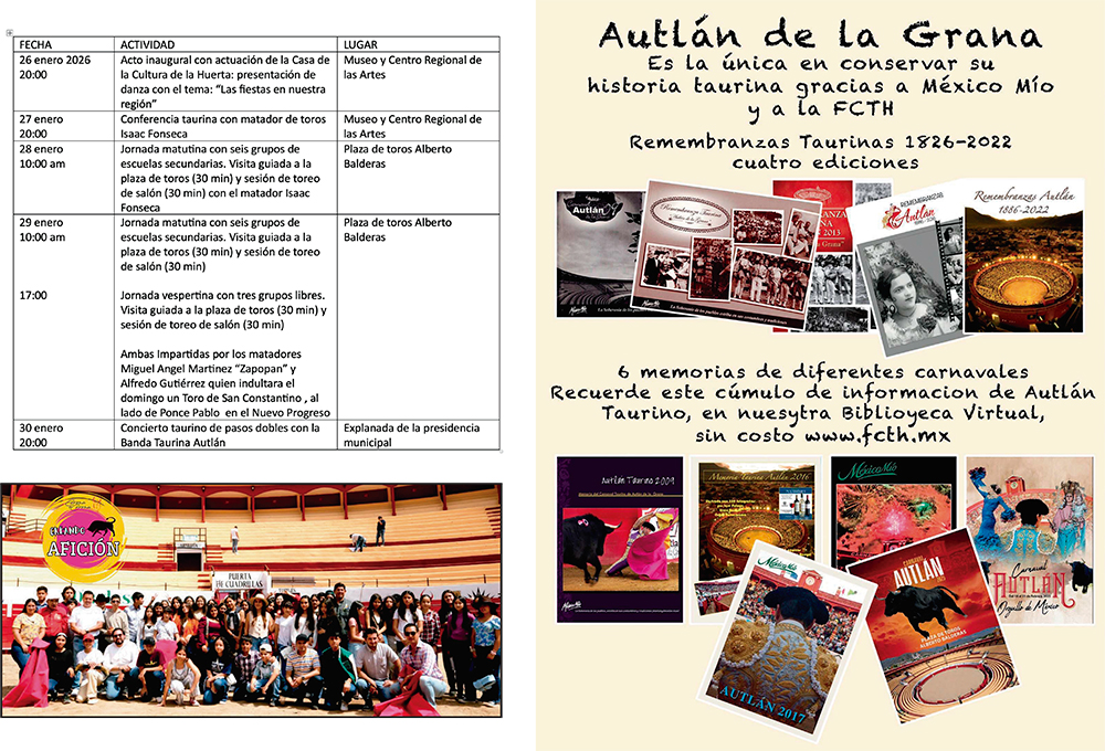 La información del Elenco de las corridas formales del Carnaval de Autlán de la Grana 2026