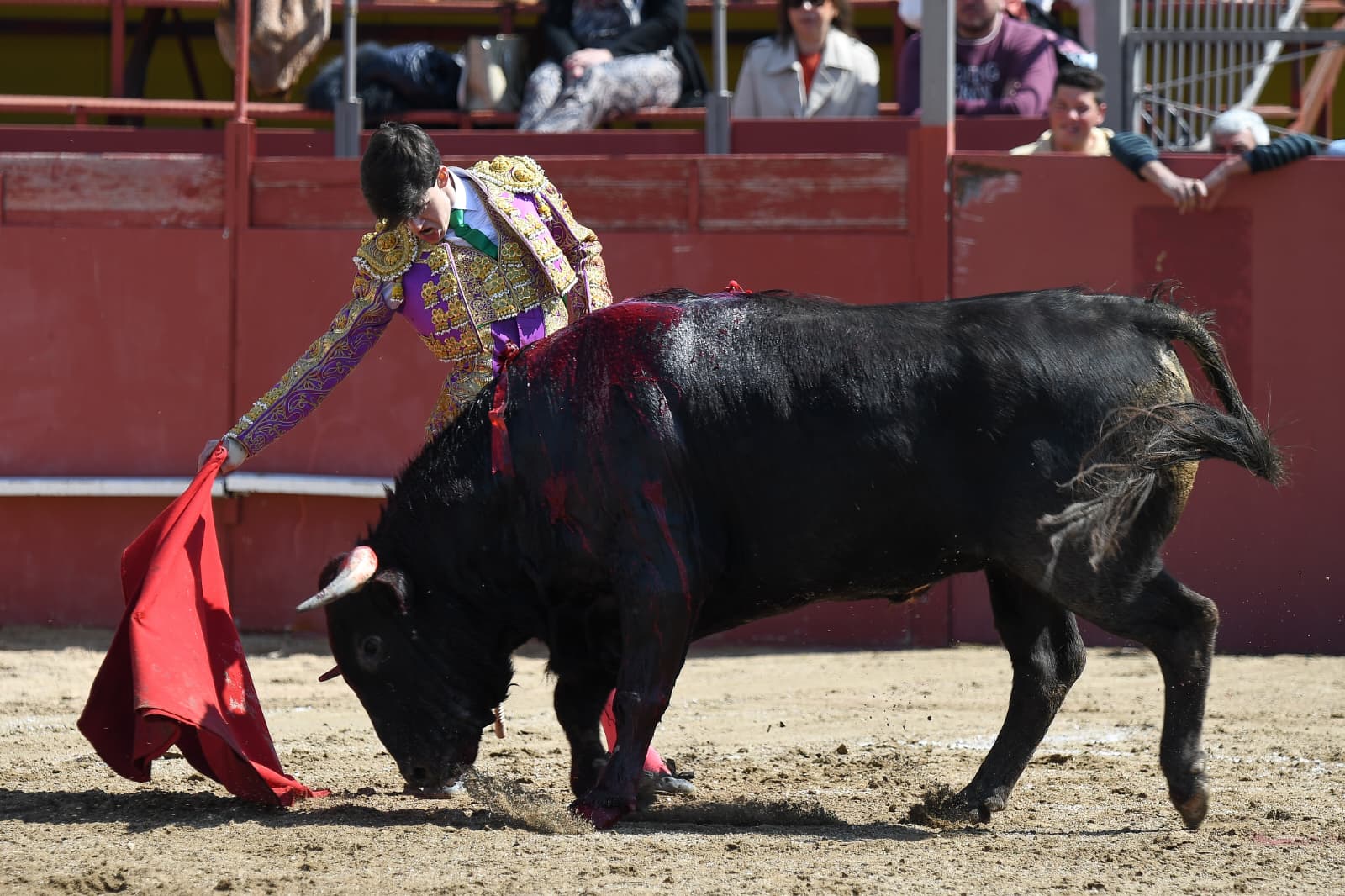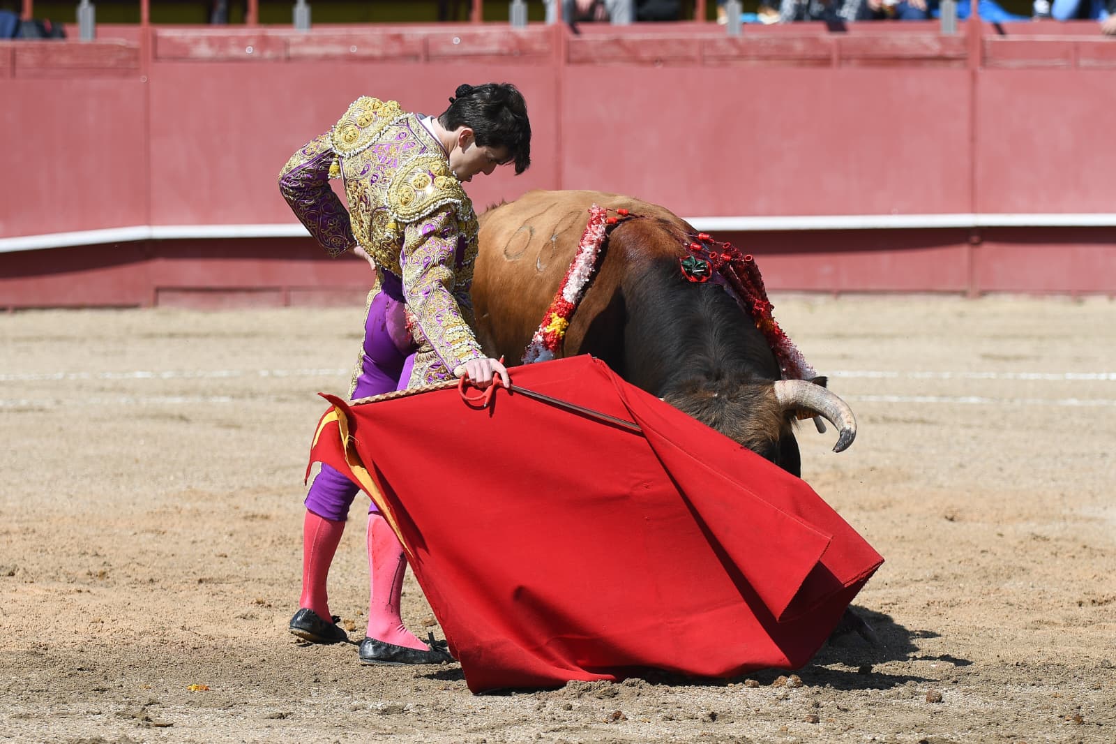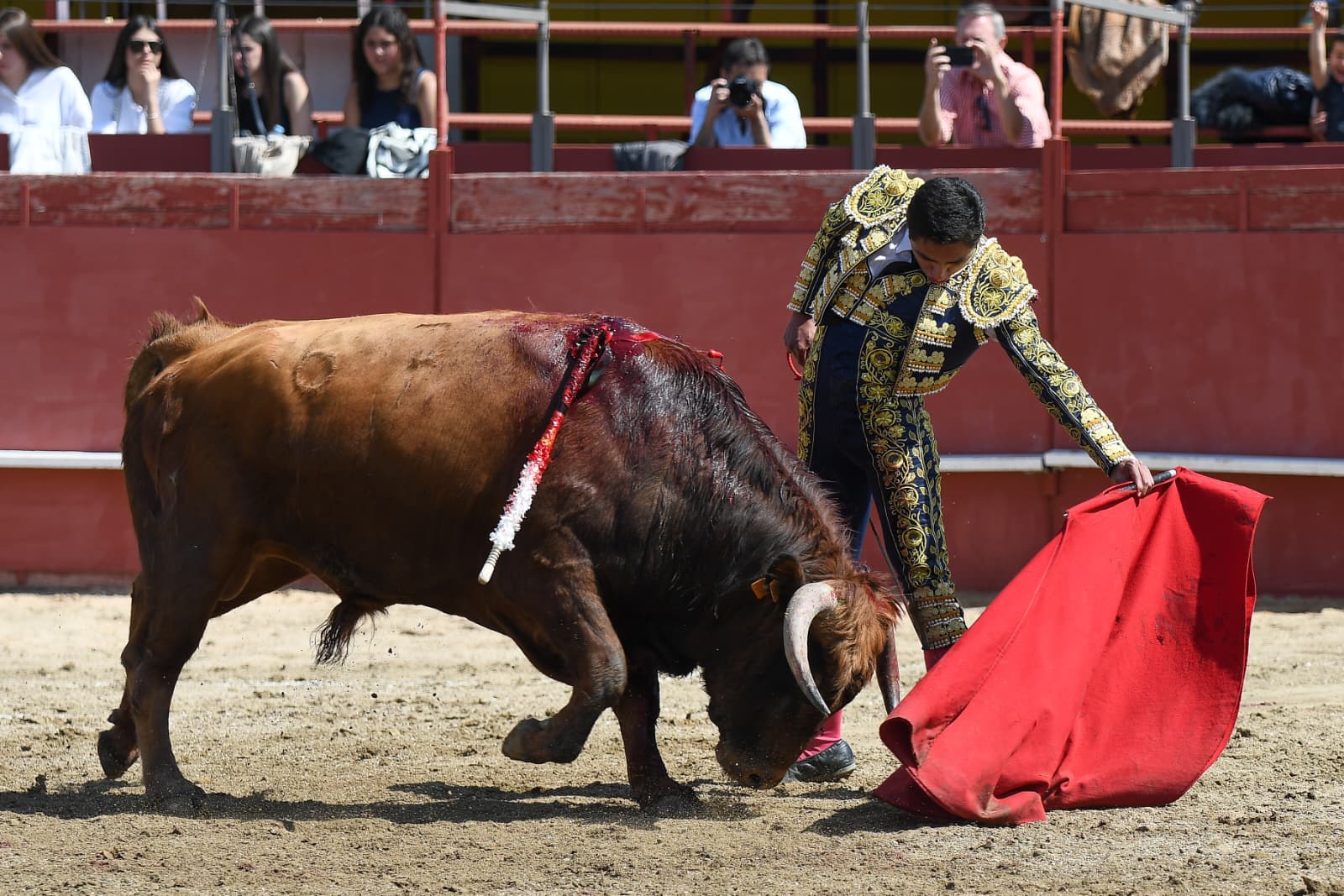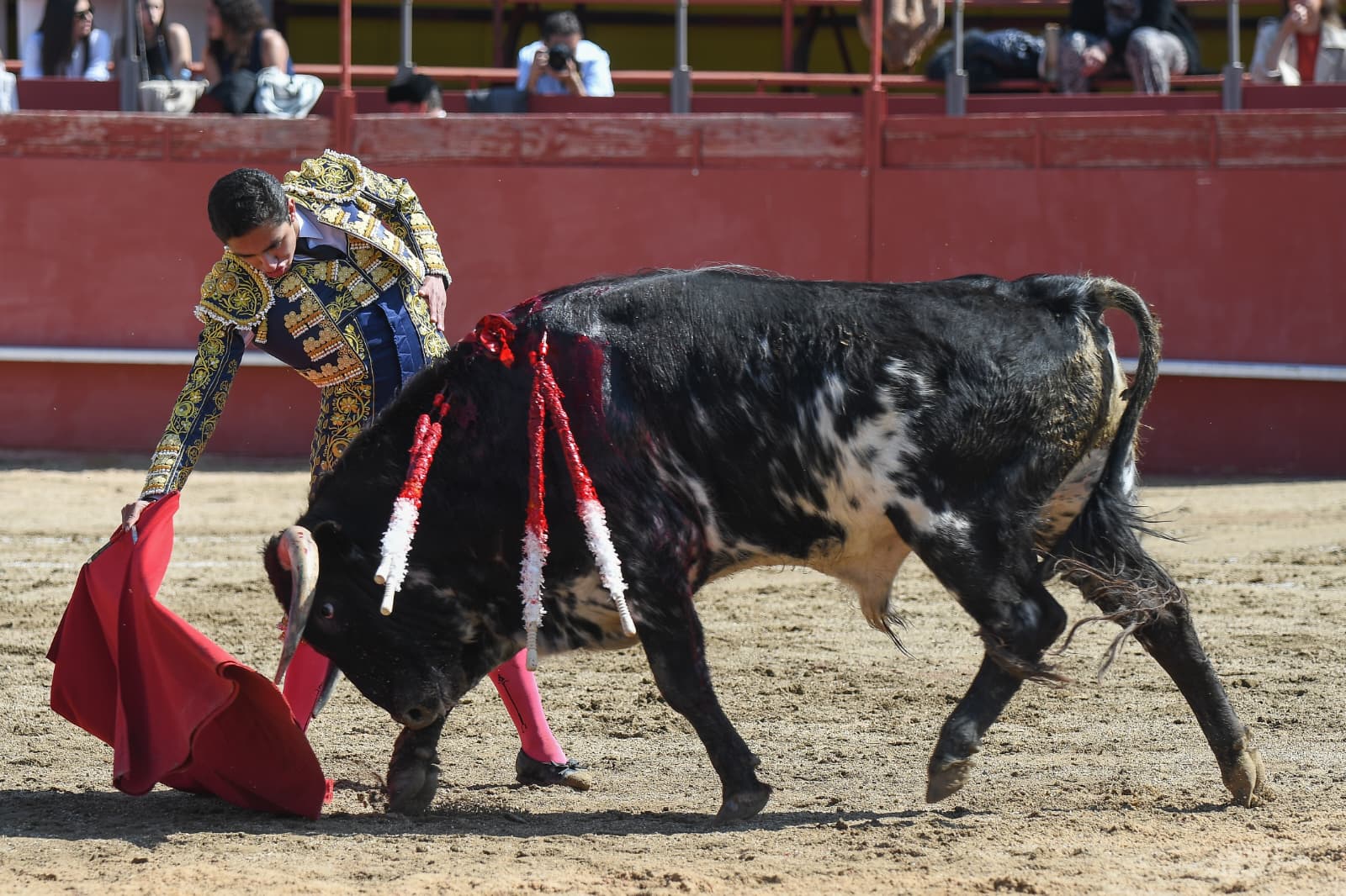 Se fue Juan Pablo Ibarra a portagayola en el cierra plaza. Inició por cambiados de rodillas, sufriendo una voltereta en el tercero. Se puso en pie y repitió por la espalda. Por el izquierdo se acoplaron ambos e Ibarra lo llevó cogido de cerca. Le volvió a voltear en el final de faena. Mató de estocada casi entera y cortó una oreja.