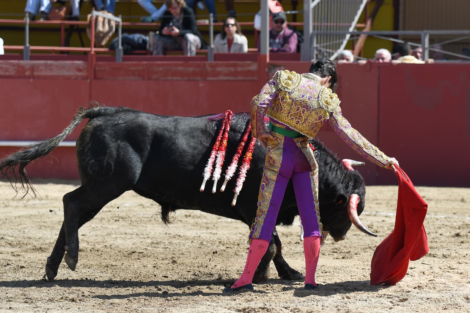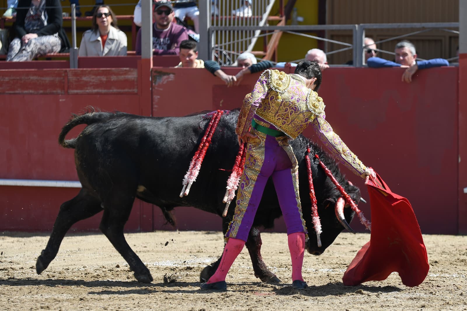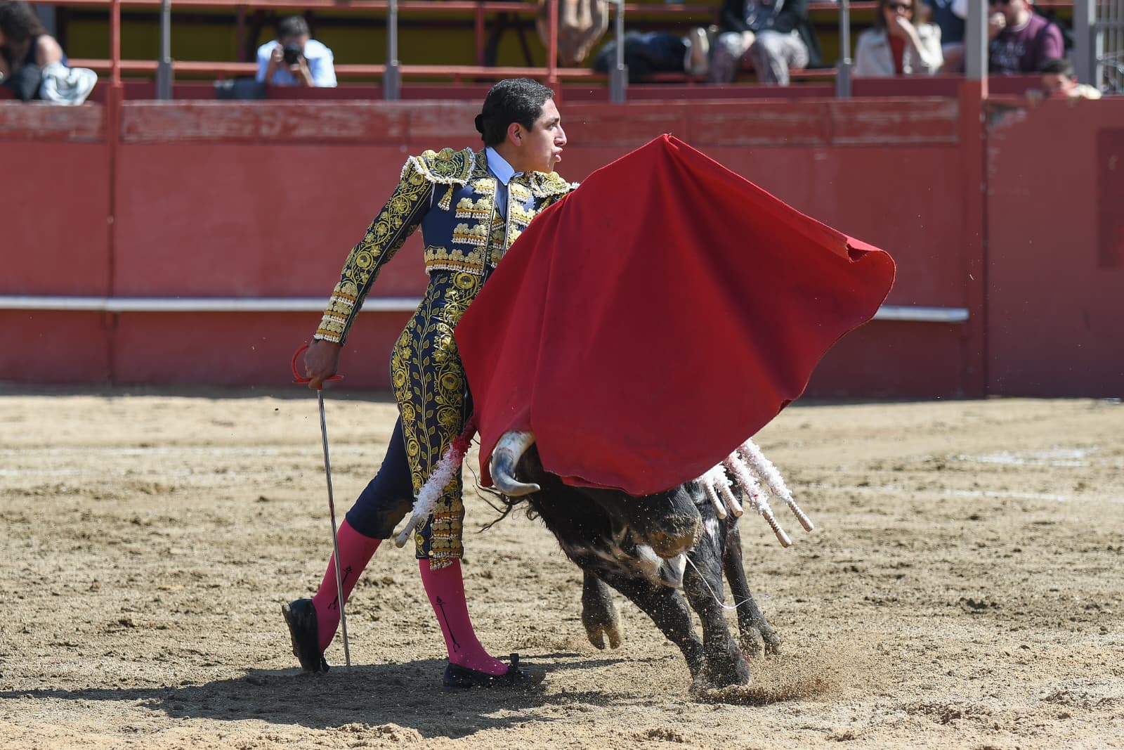 Recibió Sergio Rollón al primero de la mañana, de Ginés Bartolomé por verónicas en el tercio. Quitó por chicuelinas. Inició por cambiados por la espalda en los medios. Repitió el de Ginés Bartolomé por el pitón izquierdo. Firme estuvo Sergio Rollón, llevándolo largo y acompañando la embestida. Cerró por manoletinas y mató de estocada tras dos pinchazos. Dio una vuelta al ruedo.