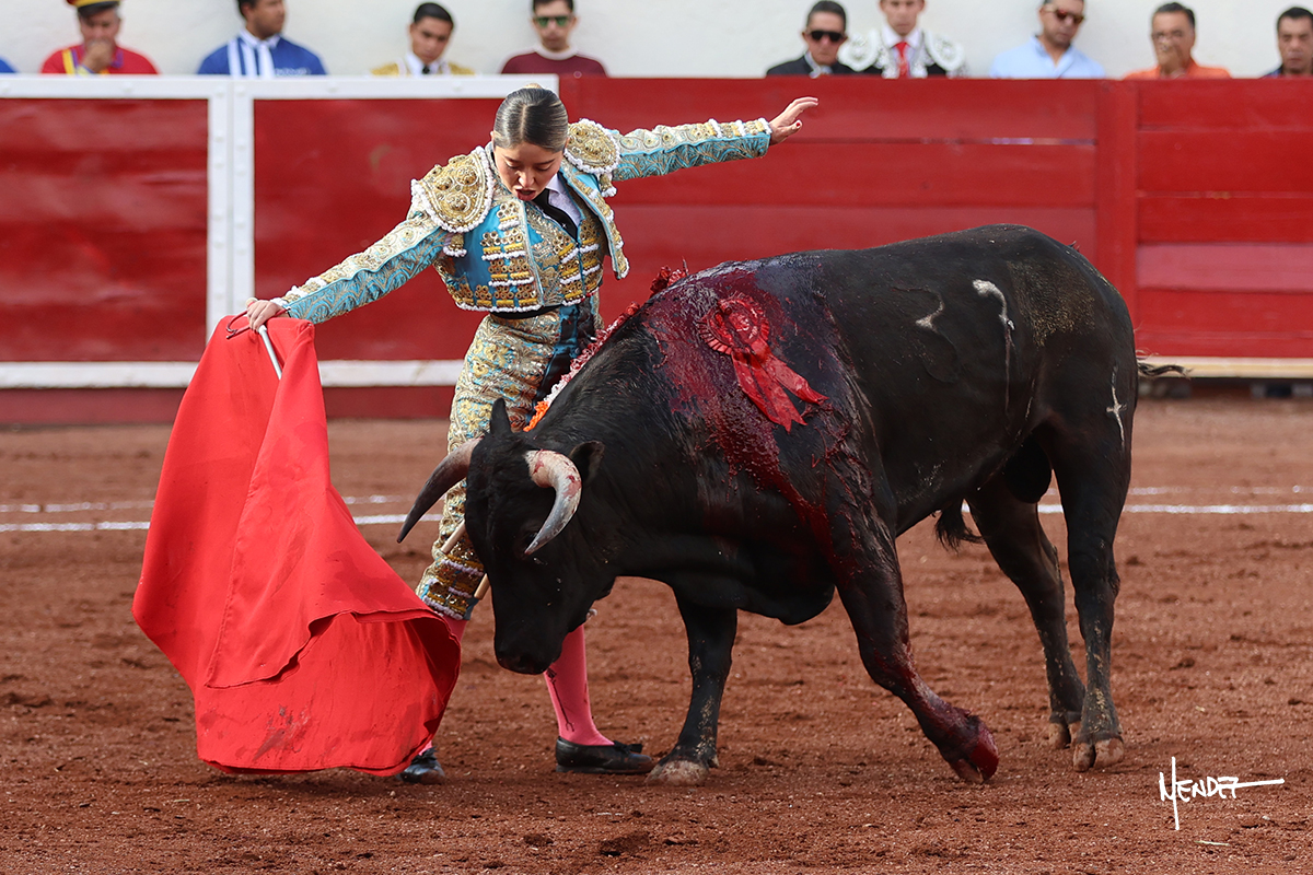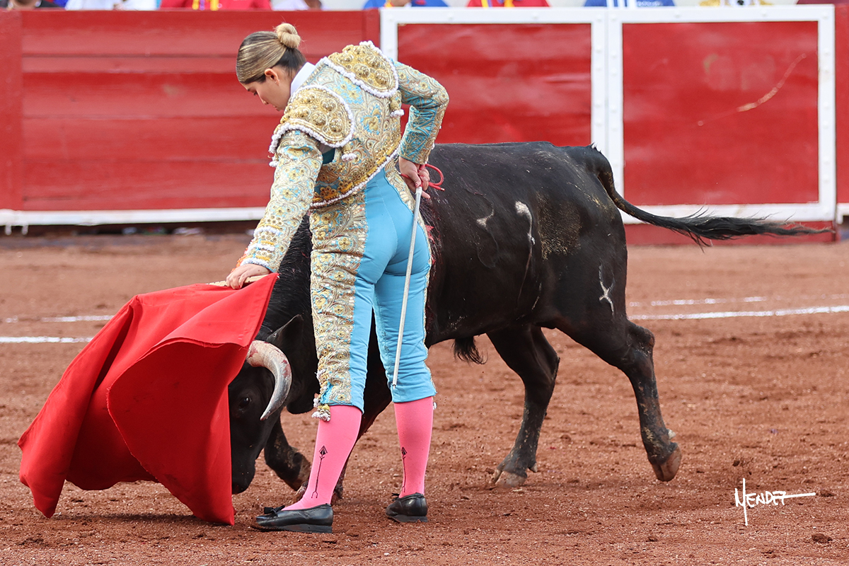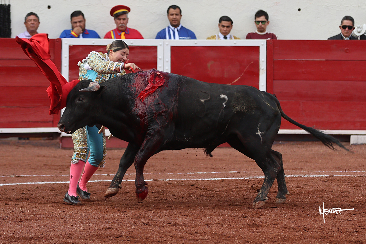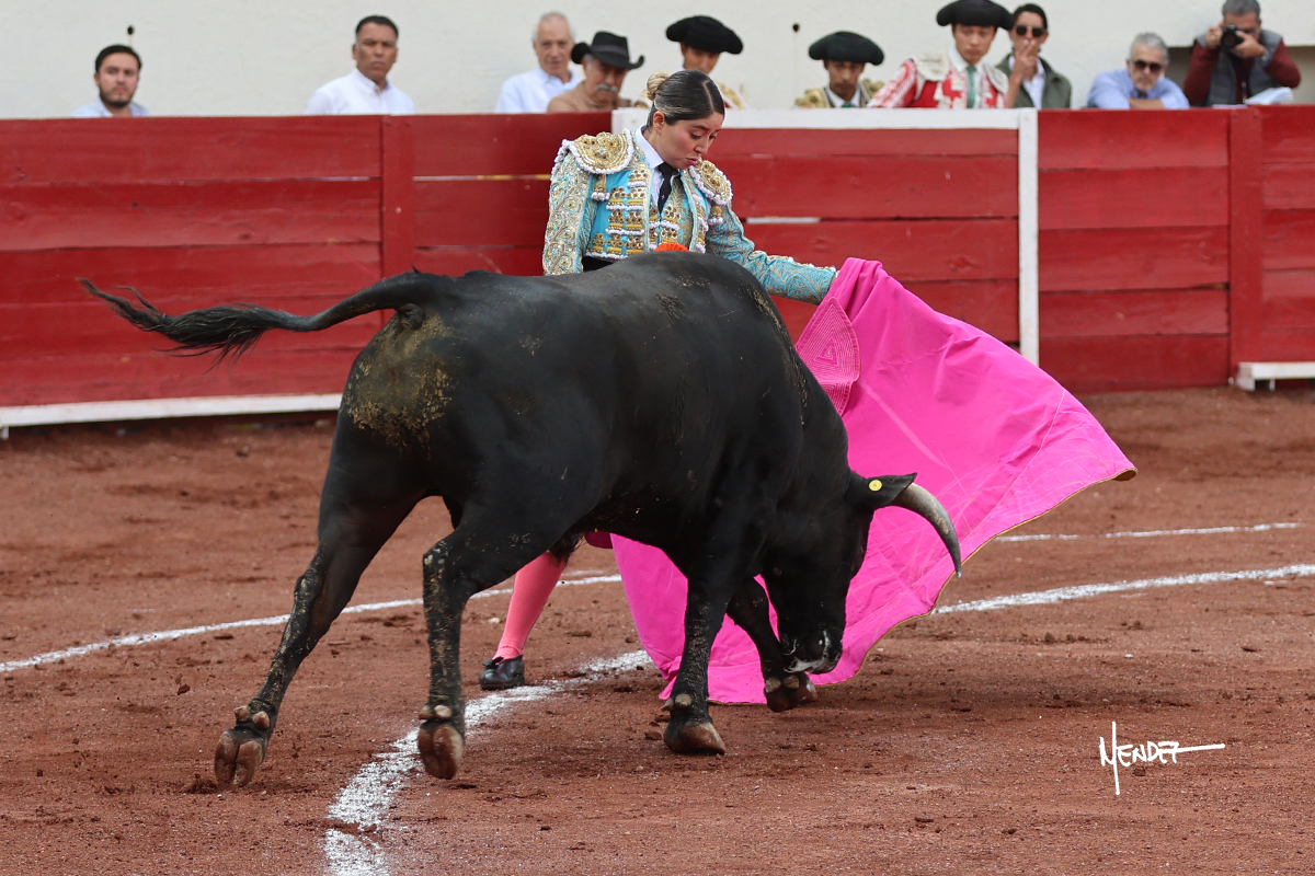Luz Elena Martínez saludó con una larga cambiada de rodillas junto a las tablas al primero de la tarde. Después continuó estirándose con el animal, con ritmo y calado. Tras un brindis a su los de espadas, Luz Elena comenzó su faena de muleta genuflexa, pasándolo por abajo, entre probaturas por ambos pitones. Se decidió por el derecho, desarrollando una tanda de calado y expresión. Se adornó mientras le daba tiempo y sitio a un novillo que seguía el engaño y atendía con prontitud a las demandas de la novillera. Cambió al pitón izquierdo, desarrollando naturales de peso y transmisión con los que llegaba. Sin embargo, tras aquella tanda recuperó la mano derecha, envolviéndoselo con ritmo y ligazón, aunque en pasándolo de uno a uno. Supo vender su faena y entender las embestidas de su adversario a la perfección, midiendo los tiempos en cada serie. Culminó por manoletinas y una estocada efectiva.