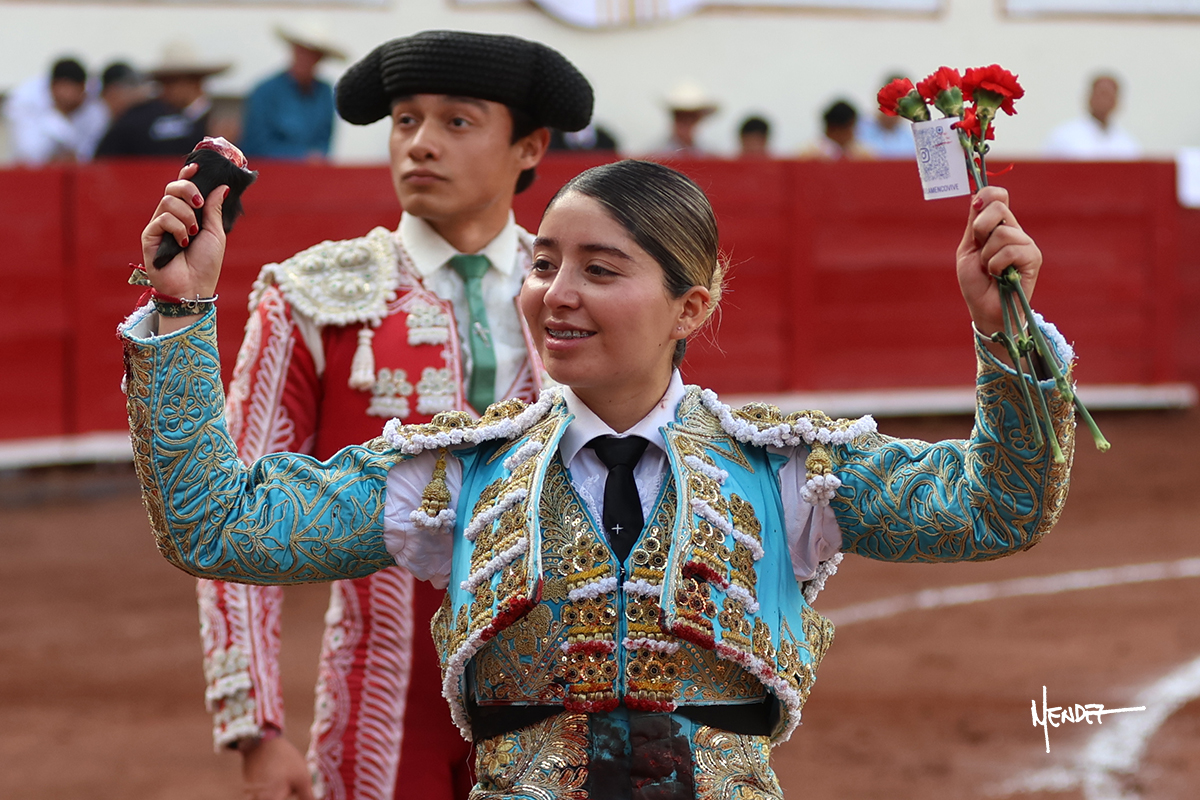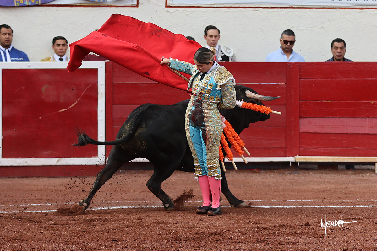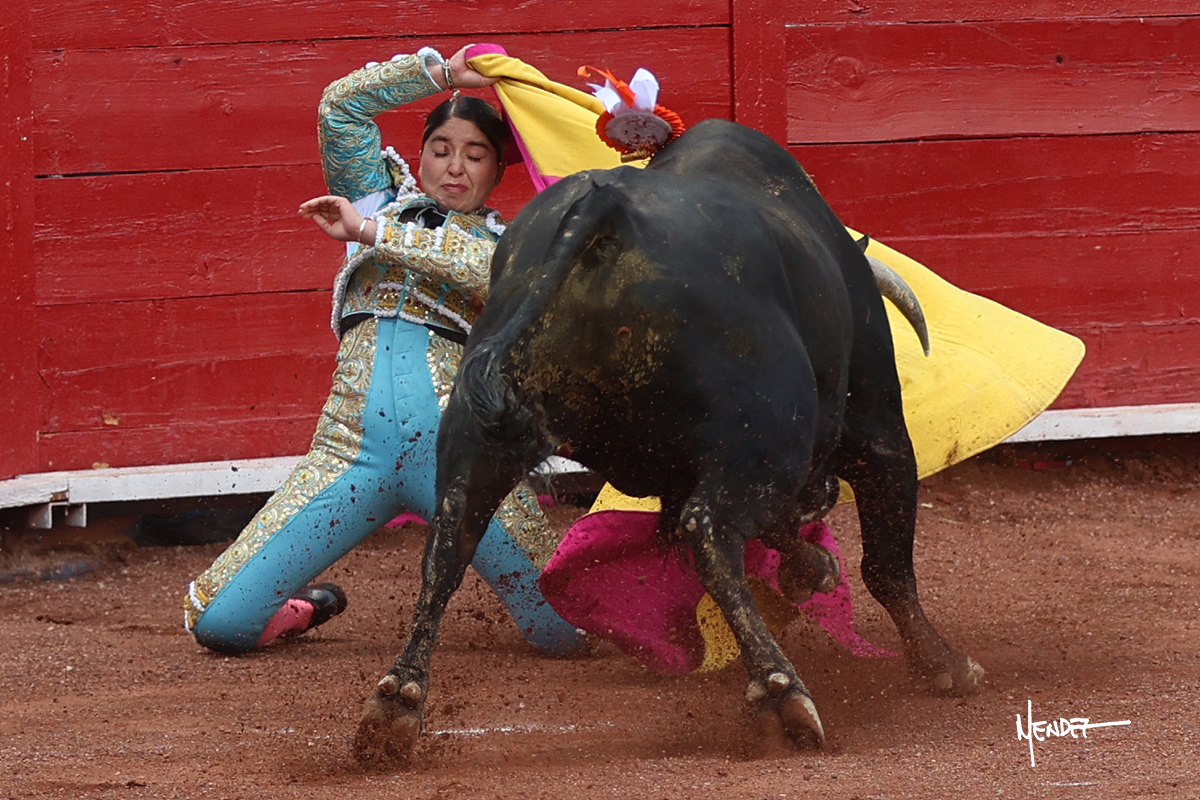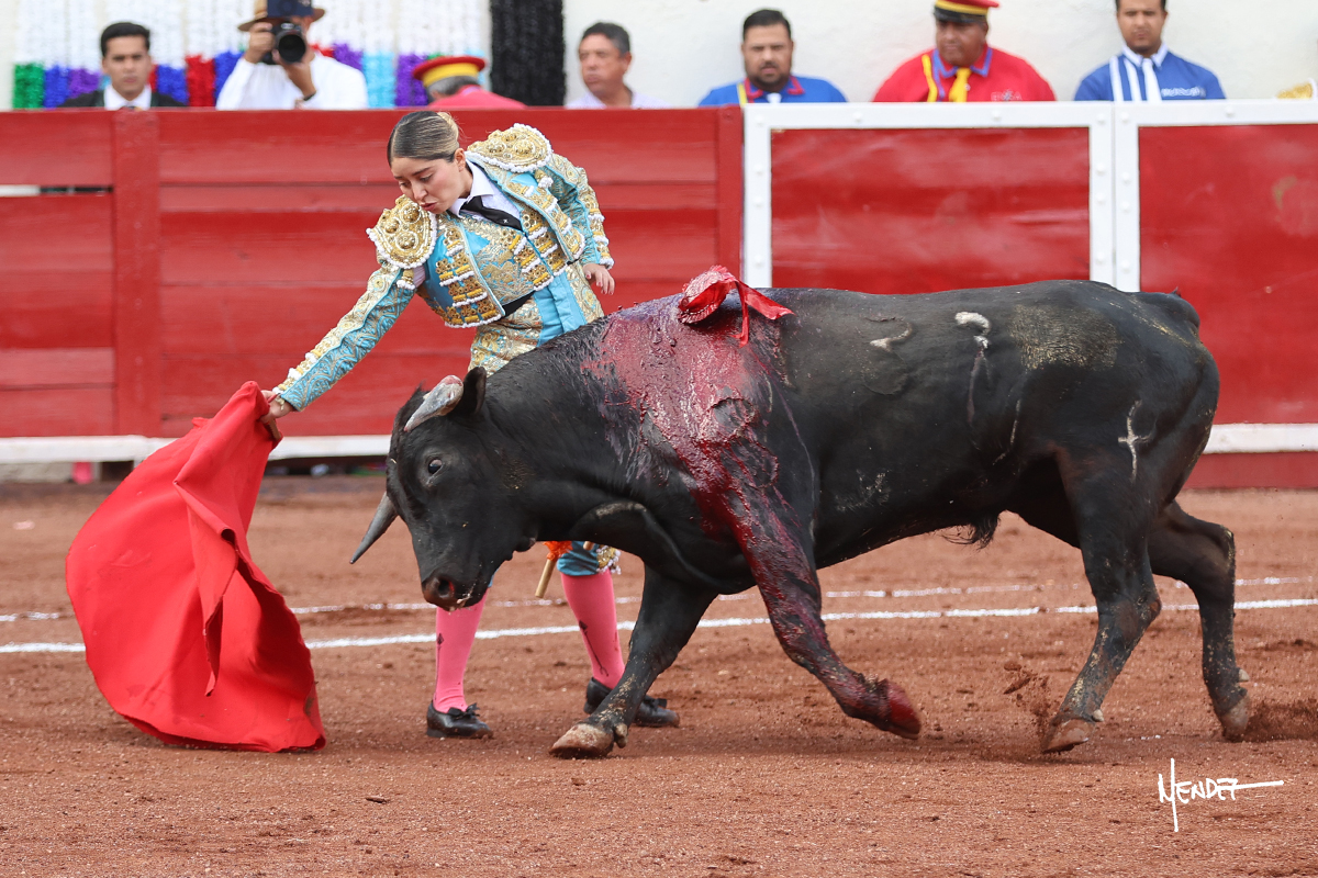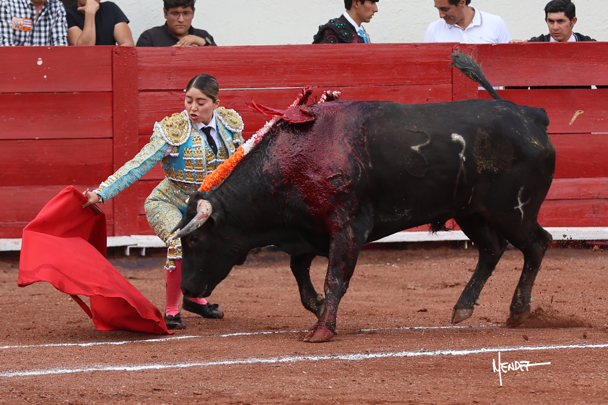 Luz Elena Martínez saludó con una larga cambiada de rodillas junto a las tablas al primero de la tarde. Después continuó estirándose con el animal, con ritmo y calado. Tras un brindis a su los de espadas, Luz Elena comenzó su faena de muleta genuflexa, pasándolo por abajo, entre probaturas por ambos pitones. Se decidió por el derecho, desarrollando una tanda de calado y expresión. Se adornó mientras le daba tiempo y sitio a un novillo que seguía el engaño y atendía con prontitud a las demandas de la novillera. Cambió al pitón izquierdo, desarrollando naturales de peso y transmisión con los que llegaba. Sin embargo, tras aquella tanda recuperó la mano derecha, envolviéndoselo con ritmo y ligazón, aunque en pasándolo de uno a uno. Supo vender su faena y entender las embestidas de su adversario a la perfección, midiendo los tiempos en cada serie. Culminó por manoletinas y una estocada efectiva.