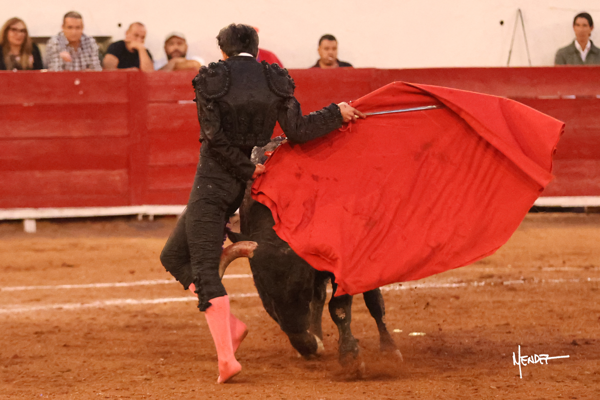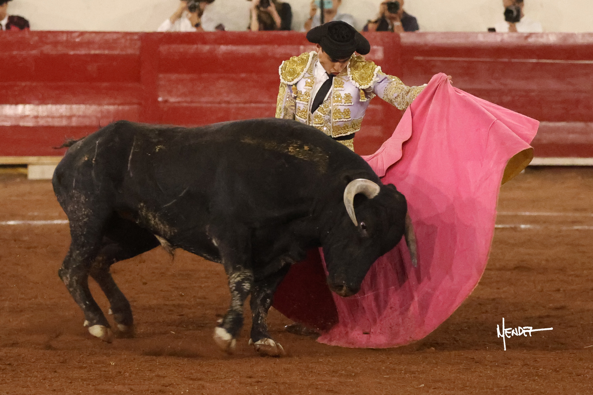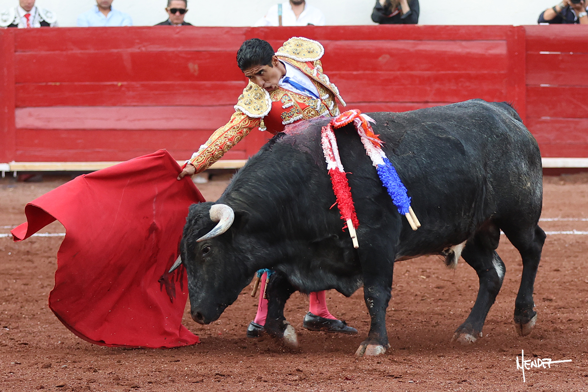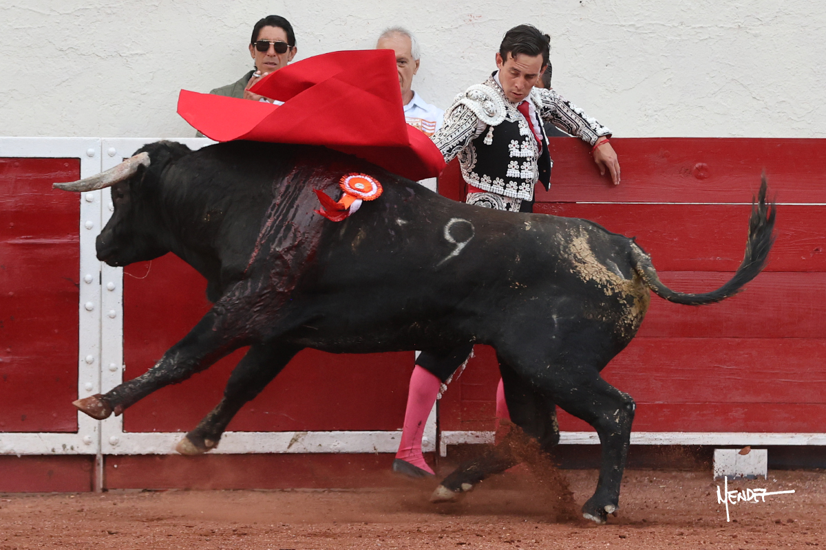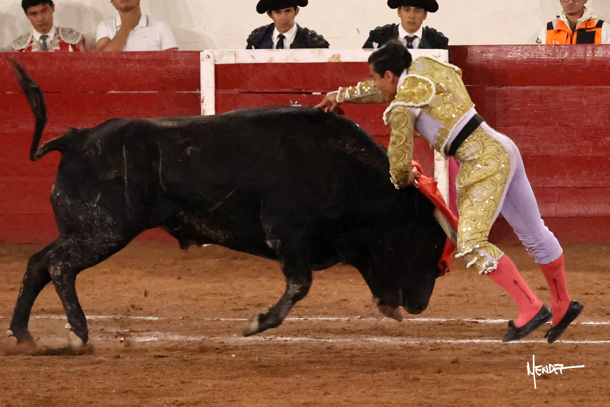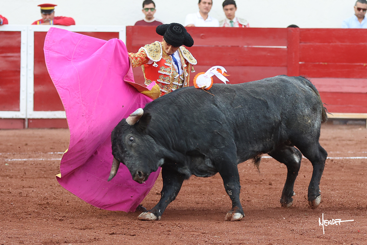 Enrique Melchor recibió a “4 Hermano” con una larga cambiada de rodillas junto a las tablas, después le ganó terreno y se lo llevó a los medios, donde se estiró con el. Se excedieron en el tercio de varas, siendo picado hasta en tres ocasiones, aunque en el último lo señaló. Se cambió el tercio y empezó la faena llevándolo por alto, sacándolo de tablas, pasándolo por ambos pitones. Desarrolló una primera tanda templada y pausada en la que lo metió y fijó en la tela. Lo llevó por el derecho, tratando de acoplarse con una embestida pronta a la que había que tocar y fijar con determinación. Le costó encontrar el compás, así que cambió al natural. Sin embargo, cuando retomó el pitón derecho, ya le había agarrado el aire a aquella embestida, cuajando una buena tanda dorada de sabor y transmisión. Lo llevó en largo, entre pausas, pero con firmeza, siempre tocándolo para meterlo y correr la mano. Volvió a mostrarlo por el izquierdo, sin el acople ni la embestida que le proporcionaba por el derecho. El animal ya le había dado todo lo que le podía y se estaba viniendo a menos, por lo que la faena fue perdiendo intensidad. Mató con acierto.