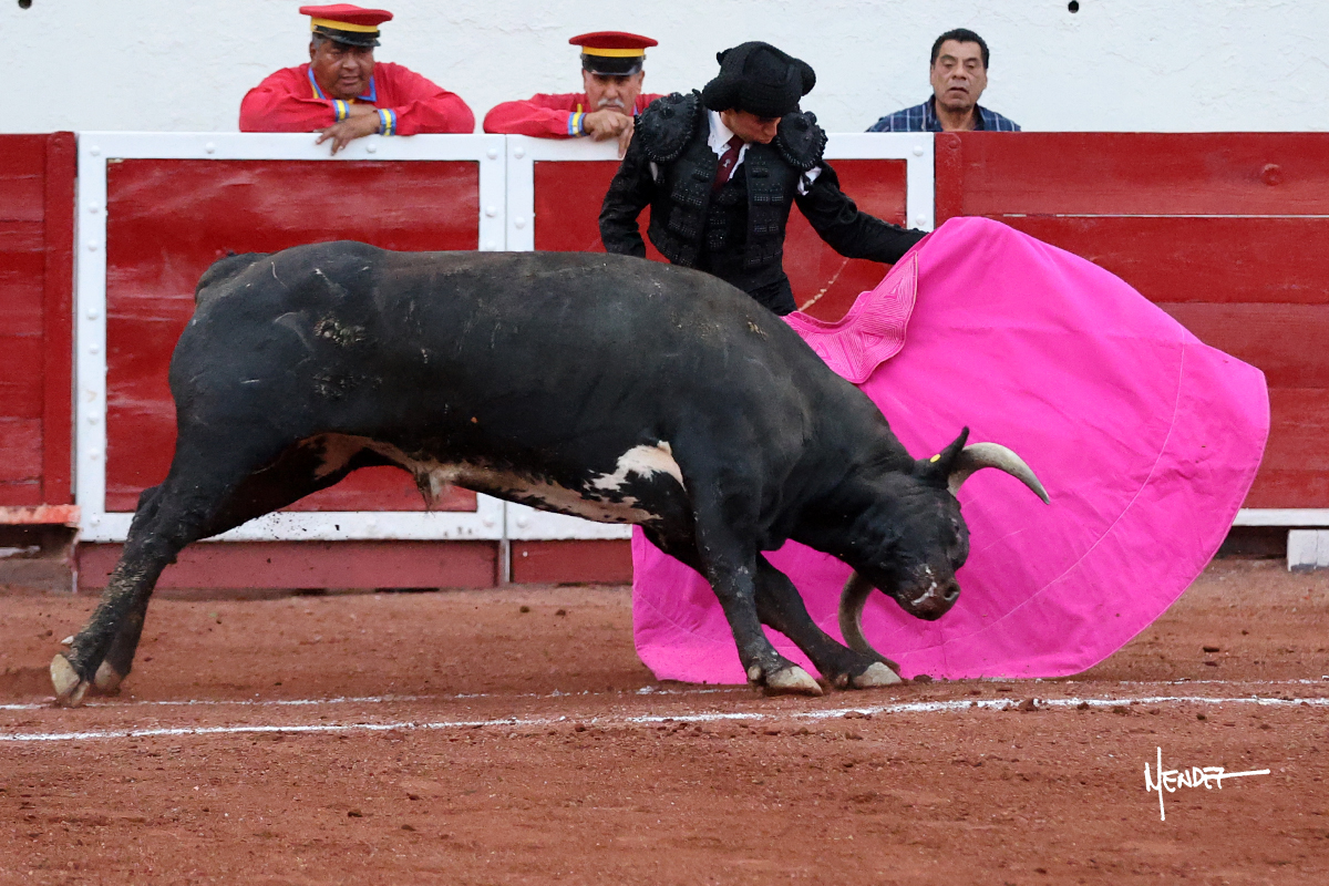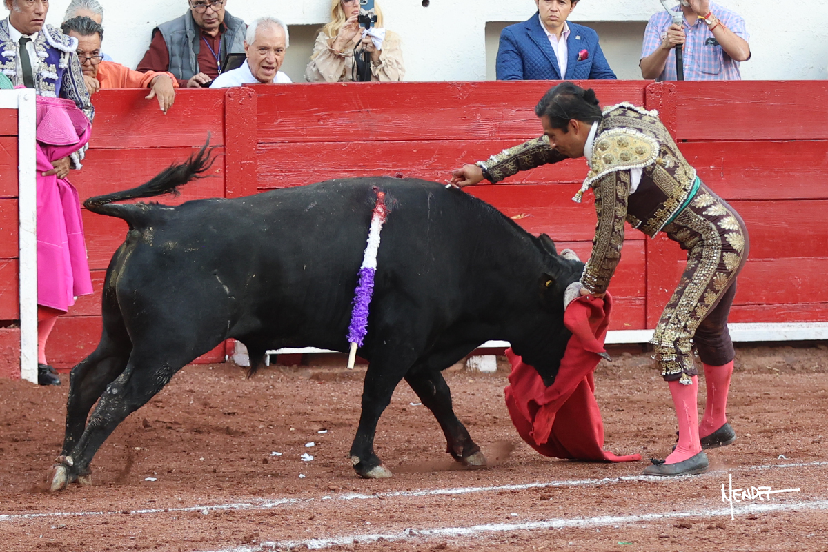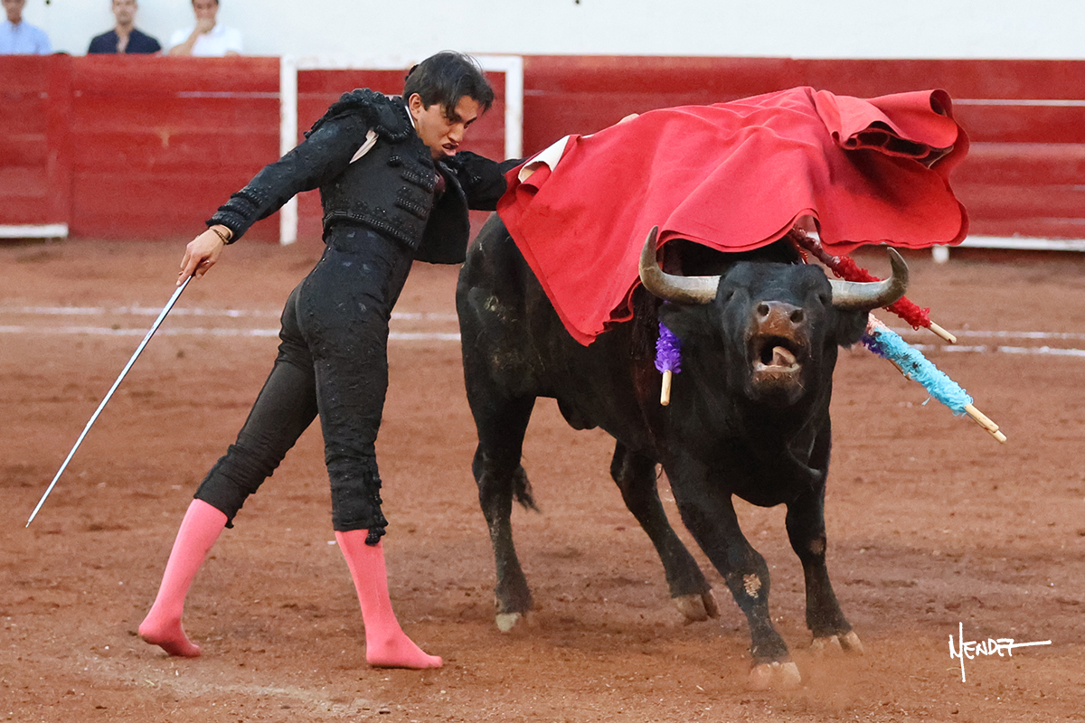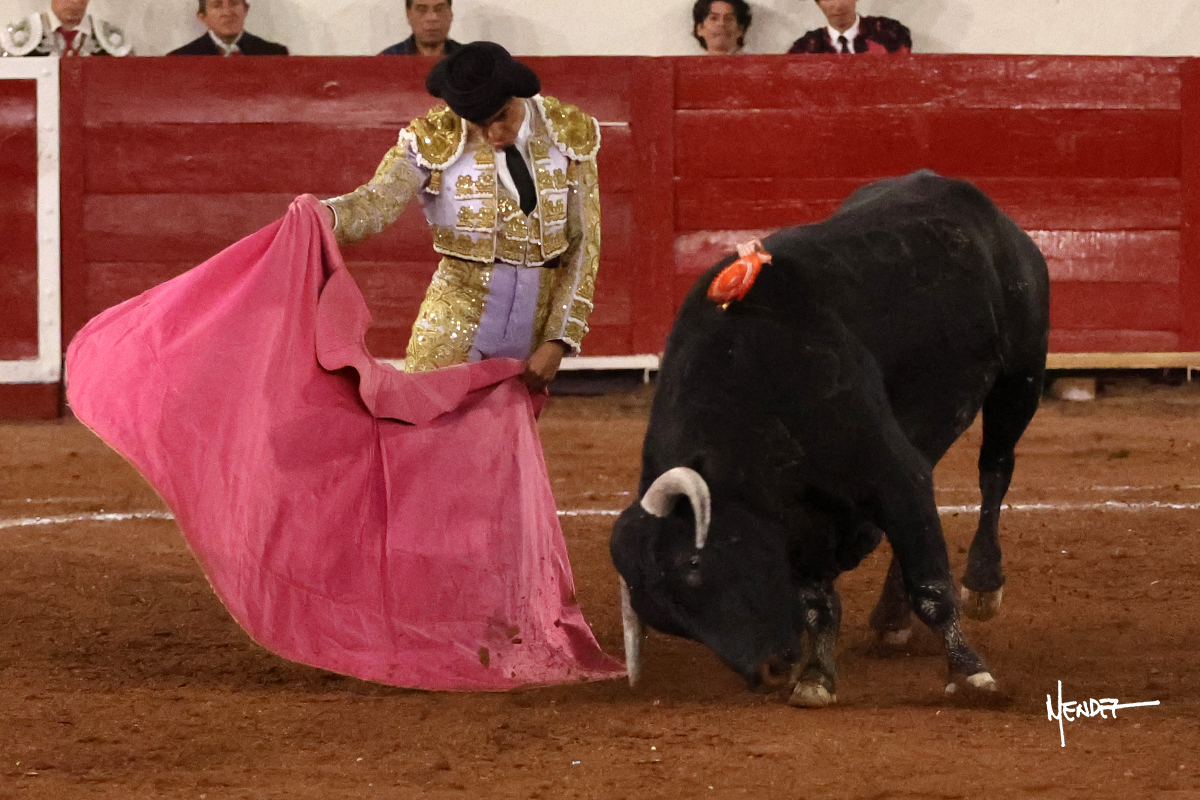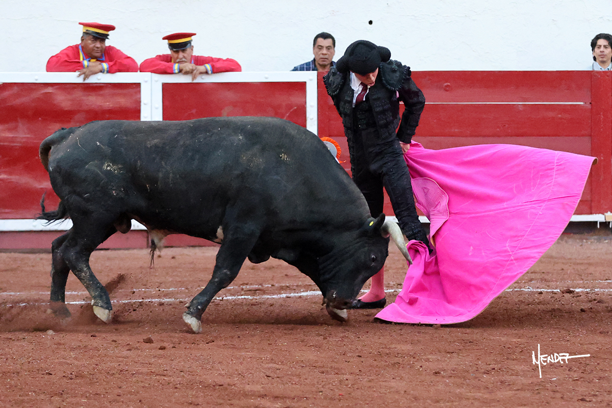 Enrique Melchor recibió a “4 Hermano” con una larga cambiada de rodillas junto a las tablas, después le ganó terreno y se lo llevó a los medios, donde se estiró con el. Se excedieron en el tercio de varas, siendo picado hasta en tres ocasiones, aunque en el último lo señaló. Se cambió el tercio y empezó la faena llevándolo por alto, sacándolo de tablas, pasándolo por ambos pitones. Desarrolló una primera tanda templada y pausada en la que lo metió y fijó en la tela. Lo llevó por el derecho, tratando de acoplarse con una embestida pronta a la que había que tocar y fijar con determinación. Le costó encontrar el compás, así que cambió al natural. Sin embargo, cuando retomó el pitón derecho, ya le había agarrado el aire a aquella embestida, cuajando una buena tanda dorada de sabor y transmisión. Lo llevó en largo, entre pausas, pero con firmeza, siempre tocándolo para meterlo y correr la mano. Volvió a mostrarlo por el izquierdo, sin el acople ni la embestida que le proporcionaba por el derecho. El animal ya le había dado todo lo que le podía y se estaba viniendo a menos, por lo que la faena fue perdiendo intensidad. Mató con acierto.
