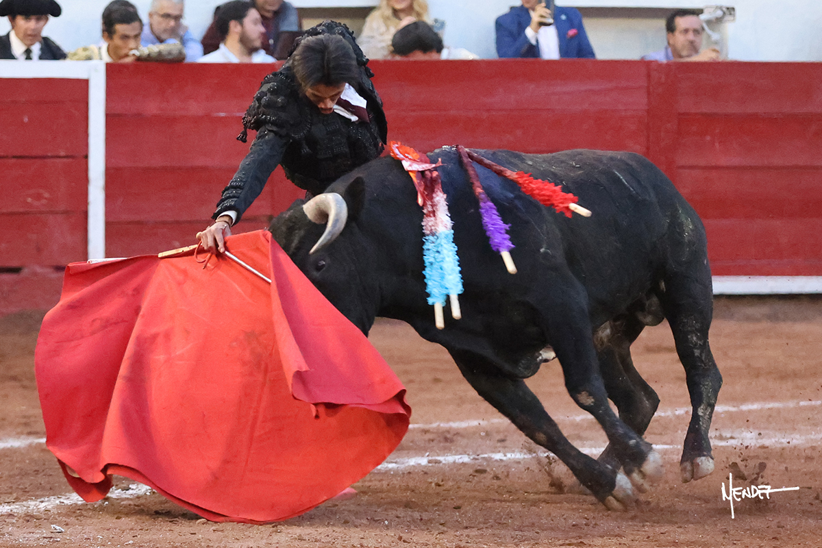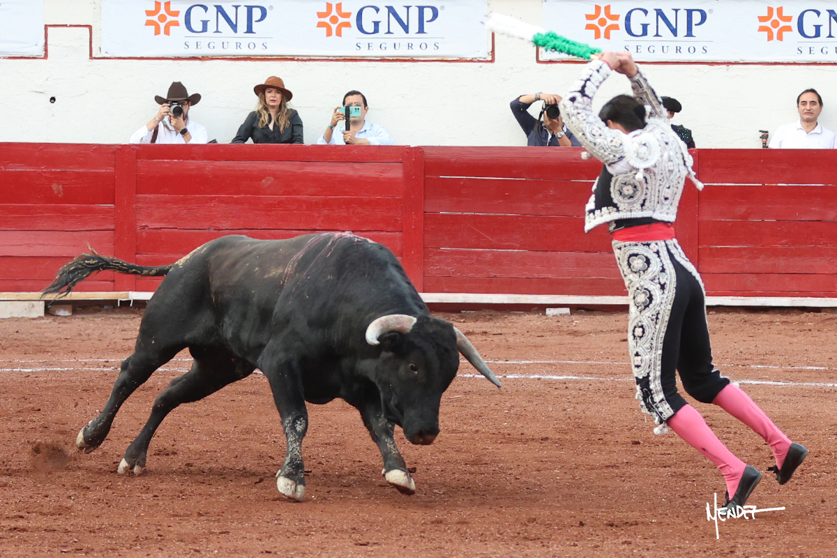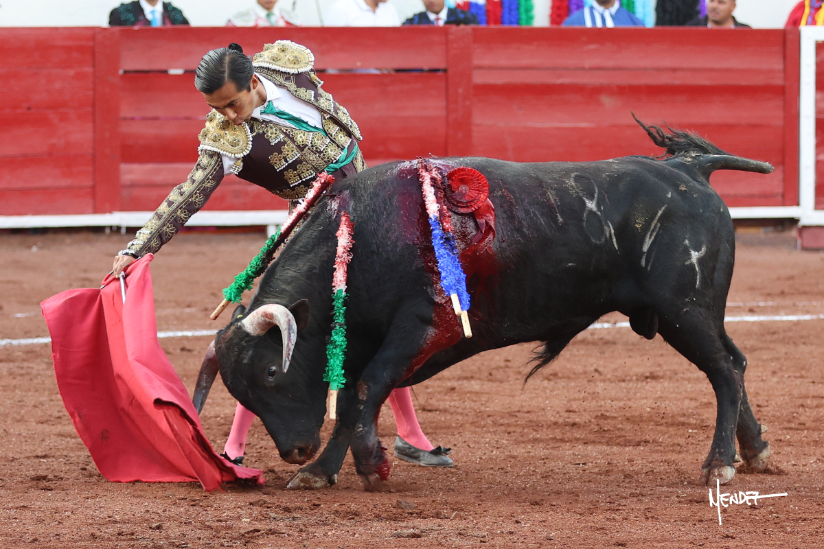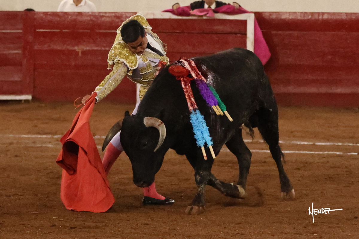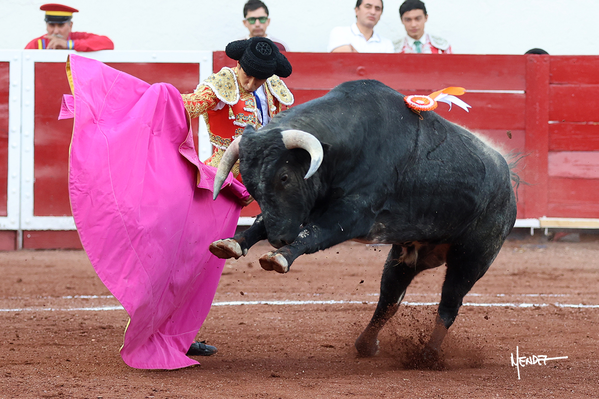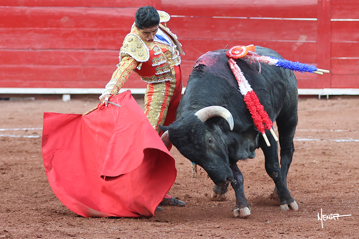 Enrique Melchor recibió a “4 Hermano” con una larga cambiada de rodillas junto a las tablas, después le ganó terreno y se lo llevó a los medios, donde se estiró con el. Se excedieron en el tercio de varas, siendo picado hasta en tres ocasiones, aunque en el último lo señaló. Se cambió el tercio y empezó la faena llevándolo por alto, sacándolo de tablas, pasándolo por ambos pitones. Desarrolló una primera tanda templada y pausada en la que lo metió y fijó en la tela. Lo llevó por el derecho, tratando de acoplarse con una embestida pronta a la que había que tocar y fijar con determinación. Le costó encontrar el compás, así que cambió al natural. Sin embargo, cuando retomó el pitón derecho, ya le había agarrado el aire a aquella embestida, cuajando una buena tanda dorada de sabor y transmisión. Lo llevó en largo, entre pausas, pero con firmeza, siempre tocándolo para meterlo y correr la mano. Volvió a mostrarlo por el izquierdo, sin el acople ni la embestida que le proporcionaba por el derecho. El animal ya le había dado todo lo que le podía y se estaba viniendo a menos, por lo que la faena fue perdiendo intensidad. Mató con acierto.