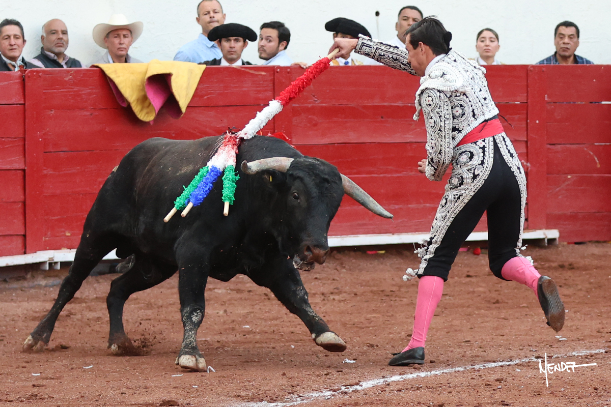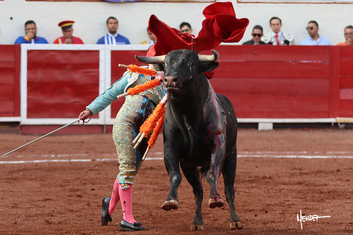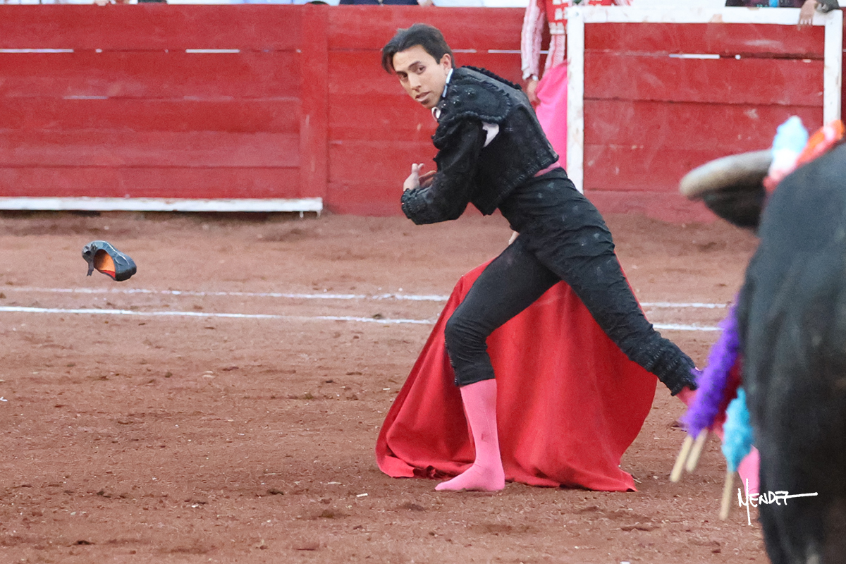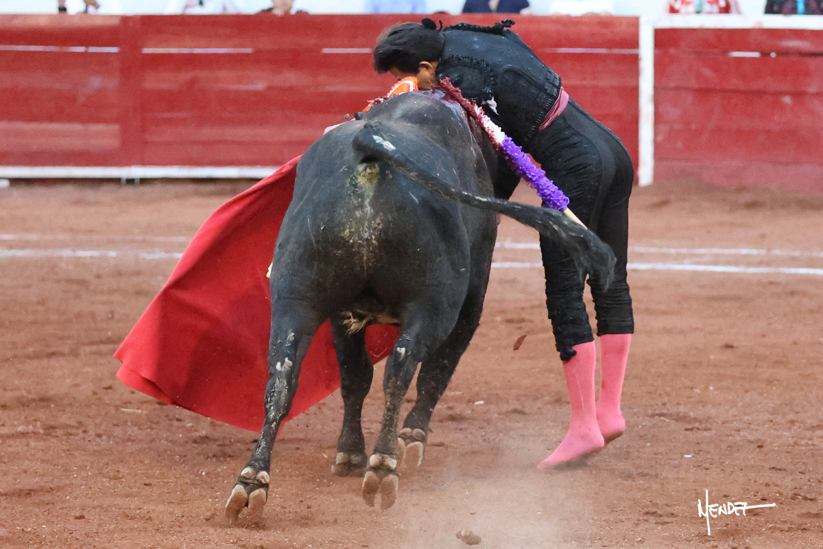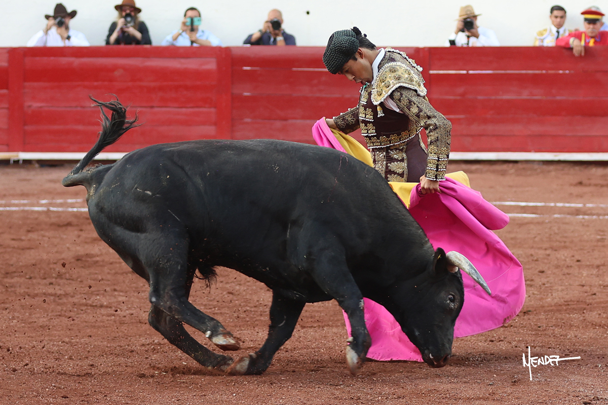 Enrique Melchor recibió a “4 Hermano” con una larga cambiada de rodillas junto a las tablas, después le ganó terreno y se lo llevó a los medios, donde se estiró con el. Se excedieron en el tercio de varas, siendo picado hasta en tres ocasiones, aunque en el último lo señaló. Se cambió el tercio y empezó la faena llevándolo por alto, sacándolo de tablas, pasándolo por ambos pitones. Desarrolló una primera tanda templada y pausada en la que lo metió y fijó en la tela. Lo llevó por el derecho, tratando de acoplarse con una embestida pronta a la que había que tocar y fijar con determinación. Le costó encontrar el compás, así que cambió al natural. Sin embargo, cuando retomó el pitón derecho, ya le había agarrado el aire a aquella embestida, cuajando una buena tanda dorada de sabor y transmisión. Lo llevó en largo, entre pausas, pero con firmeza, siempre tocándolo para meterlo y correr la mano. Volvió a mostrarlo por el izquierdo, sin el acople ni la embestida que le proporcionaba por el derecho. El animal ya le había dado todo lo que le podía y se estaba viniendo a menos, por lo que la faena fue perdiendo intensidad. Mató con acierto.