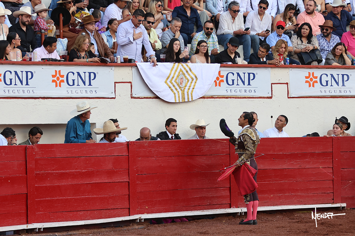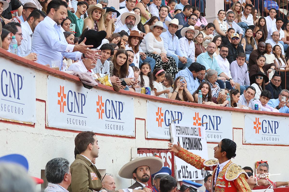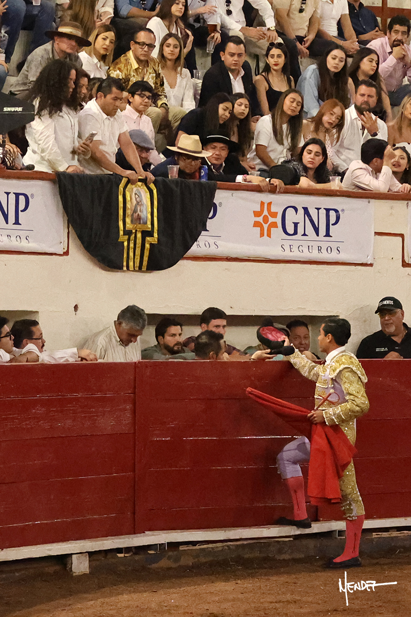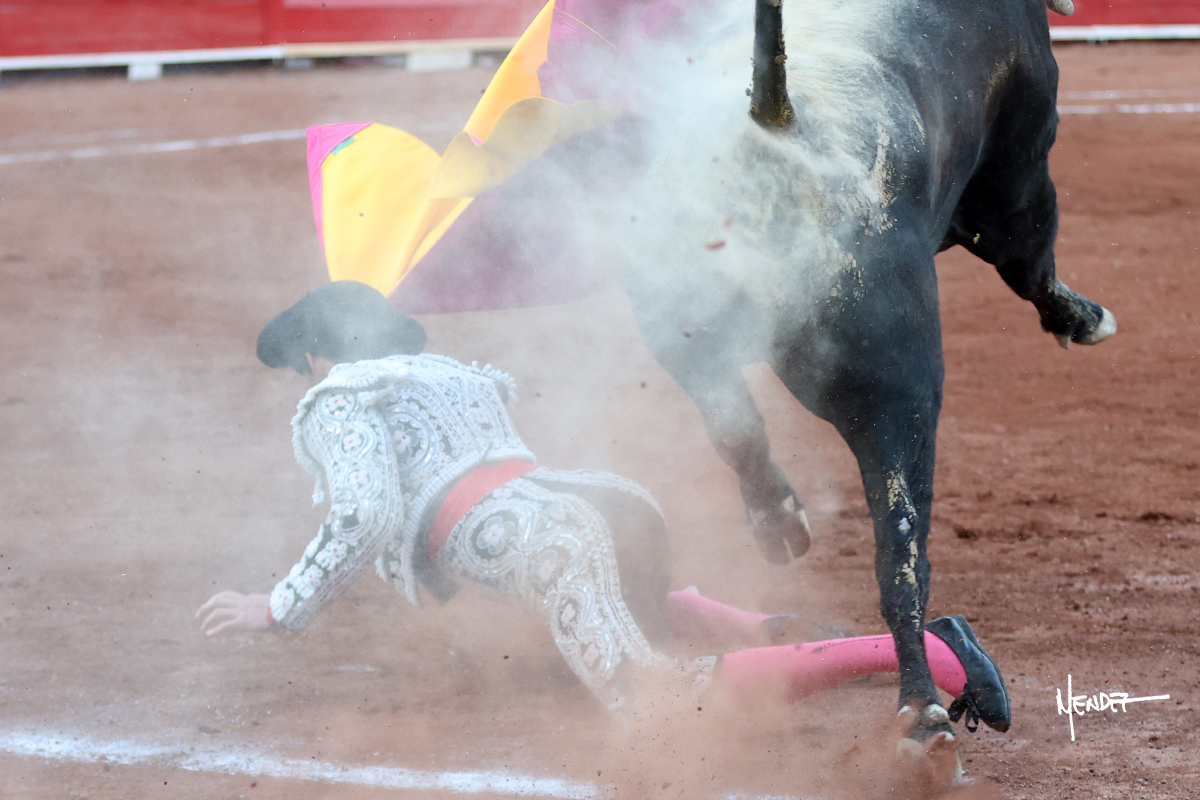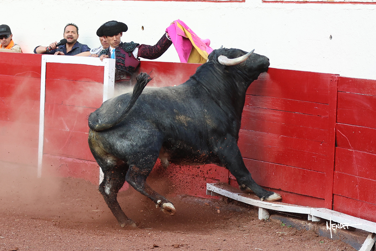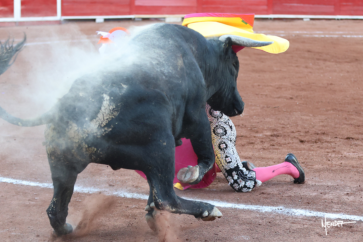 Enrique Melchor recibió a “4 Hermano” con una larga cambiada de rodillas junto a las tablas, después le ganó terreno y se lo llevó a los medios, donde se estiró con el. Se excedieron en el tercio de varas, siendo picado hasta en tres ocasiones, aunque en el último lo señaló. Se cambió el tercio y empezó la faena llevándolo por alto, sacándolo de tablas, pasándolo por ambos pitones. Desarrolló una primera tanda templada y pausada en la que lo metió y fijó en la tela. Lo llevó por el derecho, tratando de acoplarse con una embestida pronta a la que había que tocar y fijar con determinación. Le costó encontrar el compás, así que cambió al natural. Sin embargo, cuando retomó el pitón derecho, ya le había agarrado el aire a aquella embestida, cuajando una buena tanda dorada de sabor y transmisión. Lo llevó en largo, entre pausas, pero con firmeza, siempre tocándolo para meterlo y correr la mano. Volvió a mostrarlo por el izquierdo, sin el acople ni la embestida que le proporcionaba por el derecho. El animal ya le había dado todo lo que le podía y se estaba viniendo a menos, por lo que la faena fue perdiendo intensidad. Mató con acierto.
