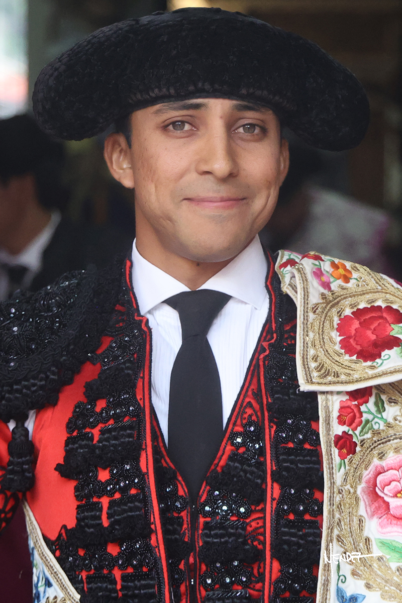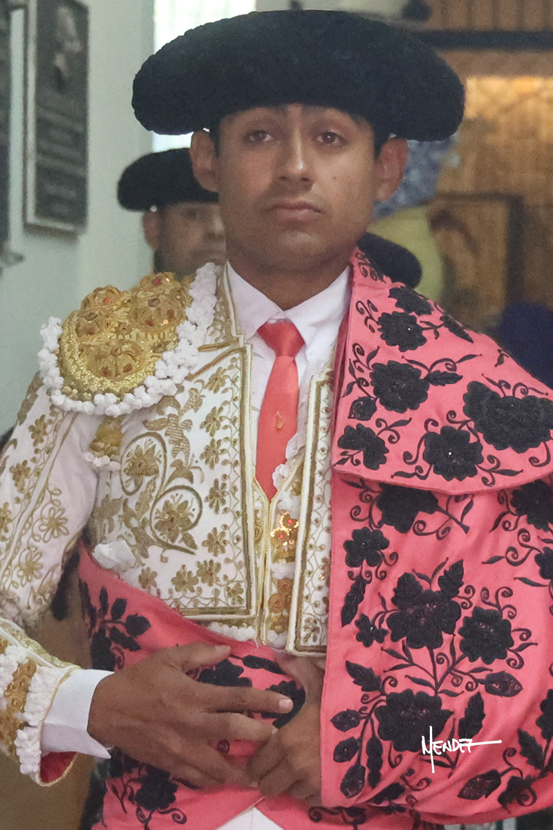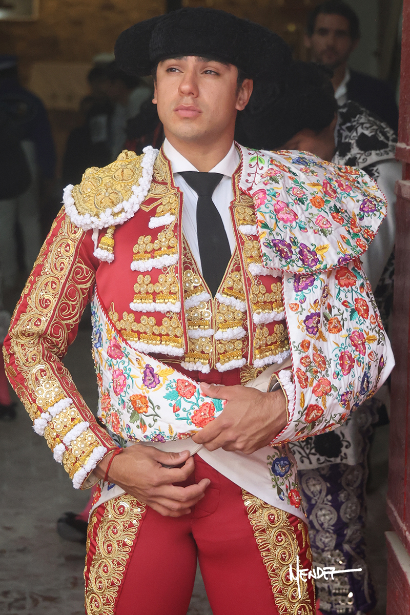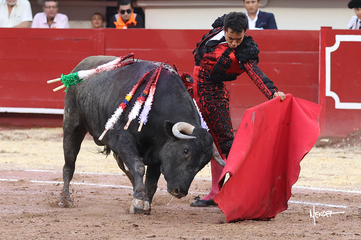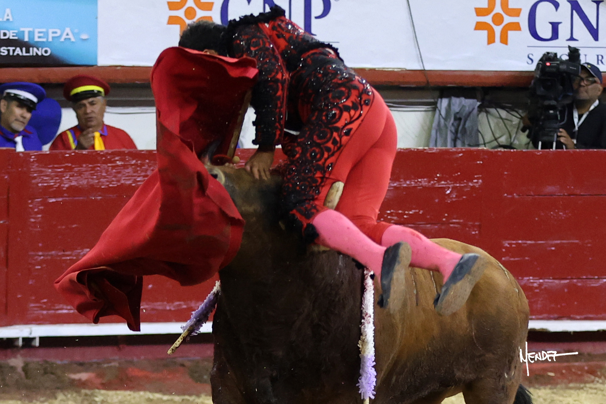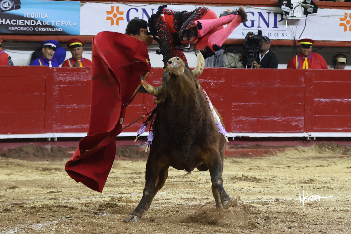 Leo Valadez se fue a los medios para recibir con una larga cambiada de rodillas al primero de la tarde, sin embargo, el animal se estrelló contra el burladero y solo pudieron apuntillarlo. En su lugar, salió “Fundador” un toro de Marco Garfias al que también saludó desde los medios con una larga cambiada. Le arrebató el capote de las manos, pero volvió a repetir su saludo junto a las tablas. Después de su quite por chicuelinas, Leo invitó a sus compañeros de terna a poner las banderillas, completando un tercio variado y lleno de emoción que gustó en los tendidos. Brindó al público y comenzó su faena de rodillas en el tercio, pasándolo por ambos pitones para después ganarle terreno poco a poco. Se definió por el pitón derecho de un toro bronco que soltaba la cara a su salida y se descomponía con facilidad. Cambió al pitón izquierdo para mostrarlo al natural y le avisó, pero aún así Leo decidió continuar y pisar terrenos comprometidos. Lo mantuvo en los medios, con voz firme y fijadora, llevándolo a media altura. Culminó al natural ya en el tercio para pasarlo uno a uno, completando así una labor exigente y muy compleja. Con unas bernadinas dio paso a la suerte suprema con una estocada completa, pero con la que tardó en doblar.