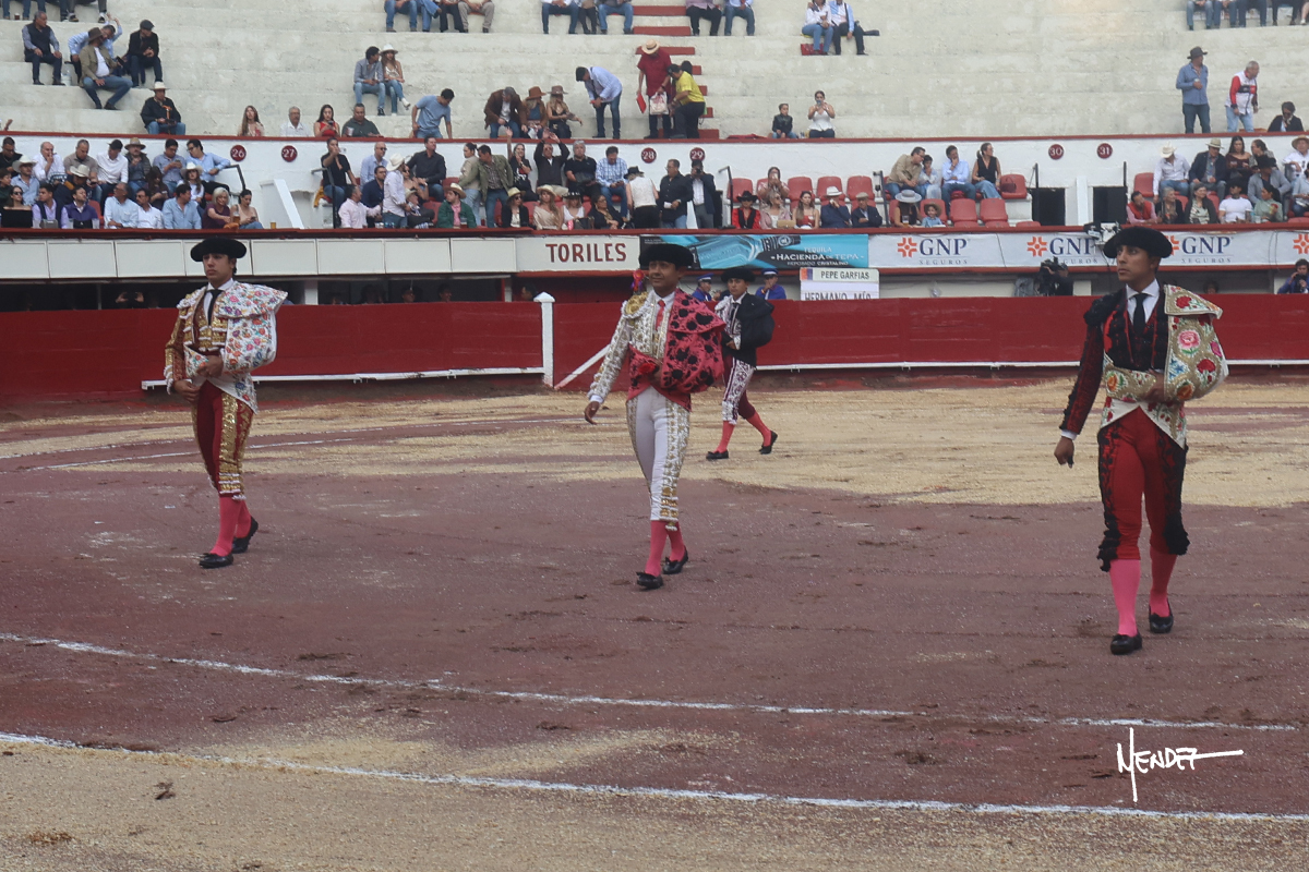 Monumental de Aguascalientes. Toros de José Garfias, Marco Garfias y Julio Delgado (4º). Los animales fueron variados en comportamiento y entrega, teniendo teclas y presentando ciertas complejidades en la tela. Leo Valadez, palmas y saludos; Jesús Enrique Colombo, palmas y oreja; Alejandro Adame, palmas y silencio tras dos avisos.