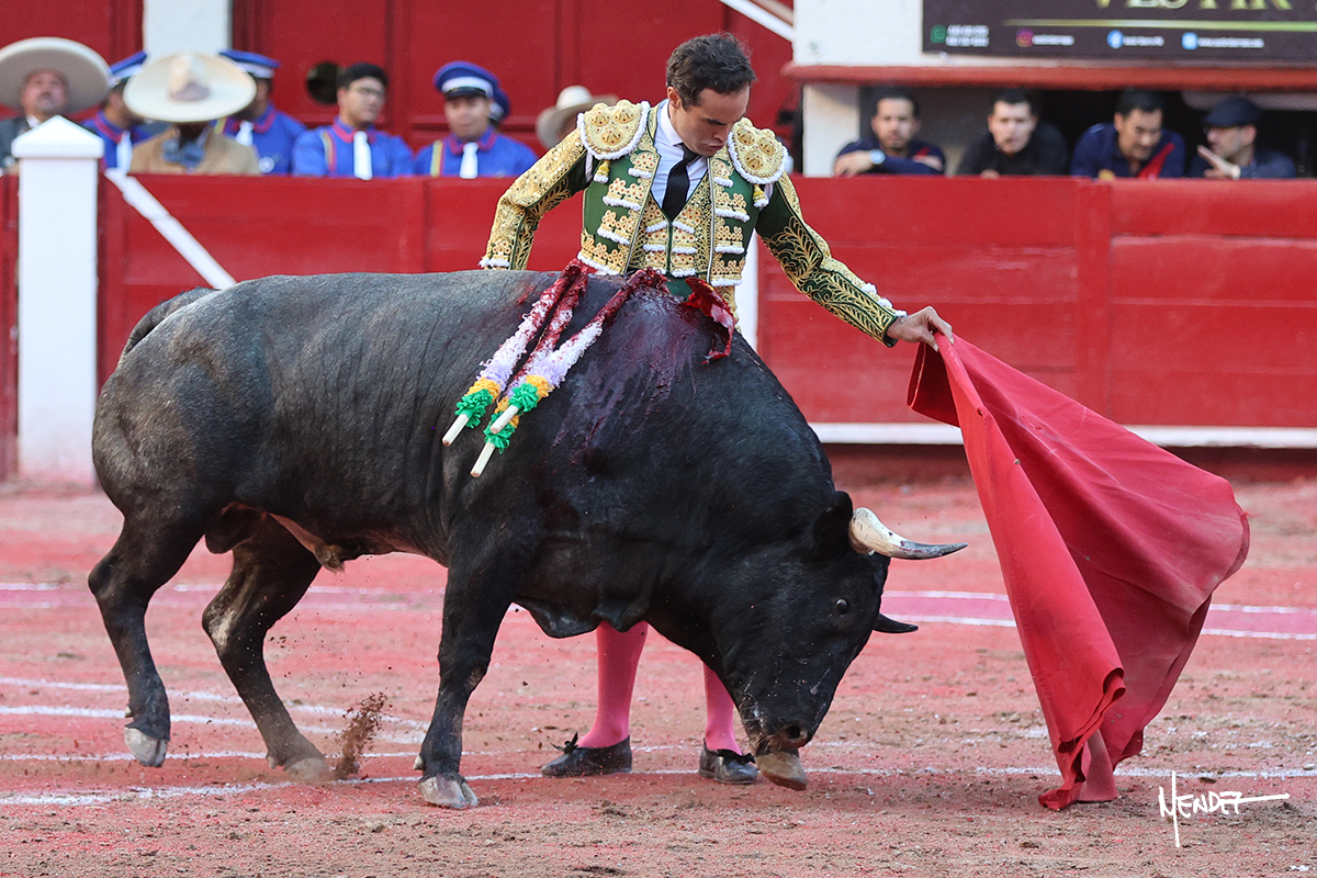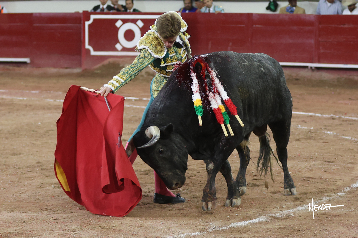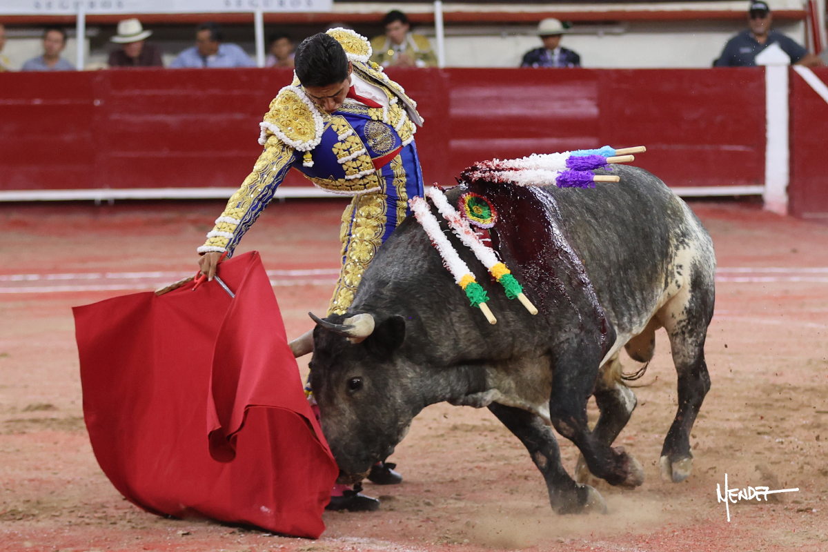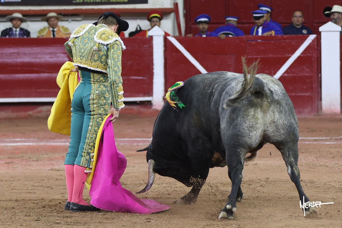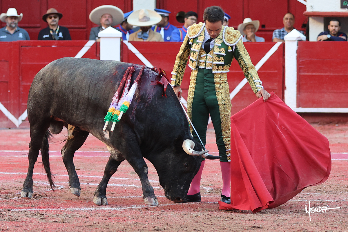 Héctor Gutiérrez saludó a pies juntos al tercero de la tarde, con torería y cadencia. Se fue a los medios y allá se estiró a la verónica. Se alcanzó la faena de muleta y se lo llevó a los medios para iniciar su labor. Lo hizo sobre el pitón derecho, teniendo que tocarlo con firmeza e insistencia en la cara. El animal tenía sus teclas y llevaba un peligro sordo que no facilitaba a Héctor su labor. Cambió al natural y totalmente encajado, se abandonó para darle largura y profundidad a unos pases en los que se gustó y gustó. Continuó por el izquierdo, envolviéndoselo, encontrando ligazón y mucha transmisión, aunque sin poder pasarlo por el derecho, ya que se metía por dentro y lo buscaba. Le dio tiempo y sitio, dosificando las embestidas que volvió a llevar al natural, con firmeza y rotundidad. La capacidad de Héctor se sobrepuso y brilló en una faena que no era nada fácil. A pesar de saber que por el derecho pasaba, lo mostró, jugándosela. Culminó con unos invertidos, pero pinchazo hondo con el que mató al toro.