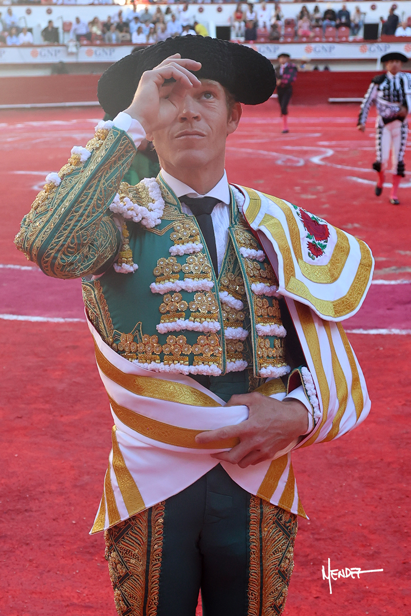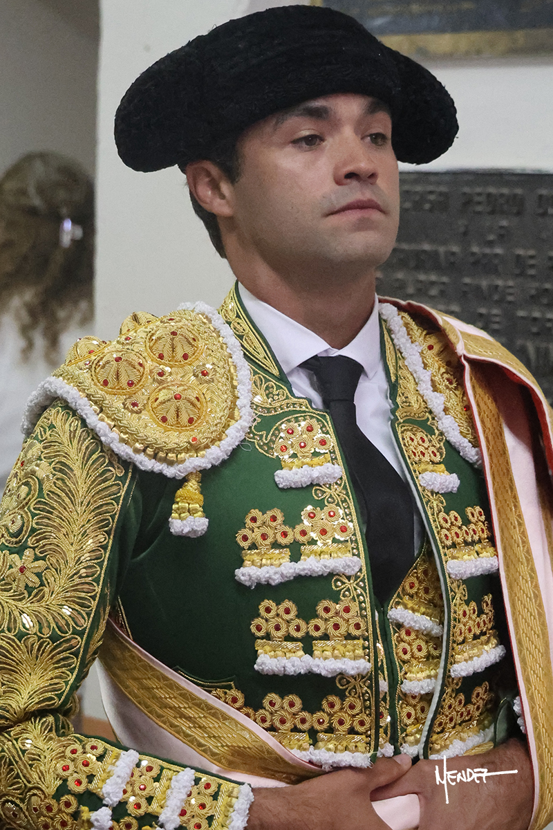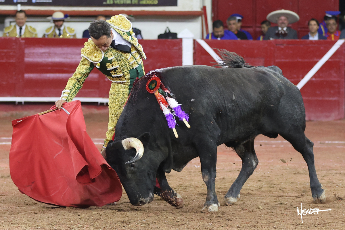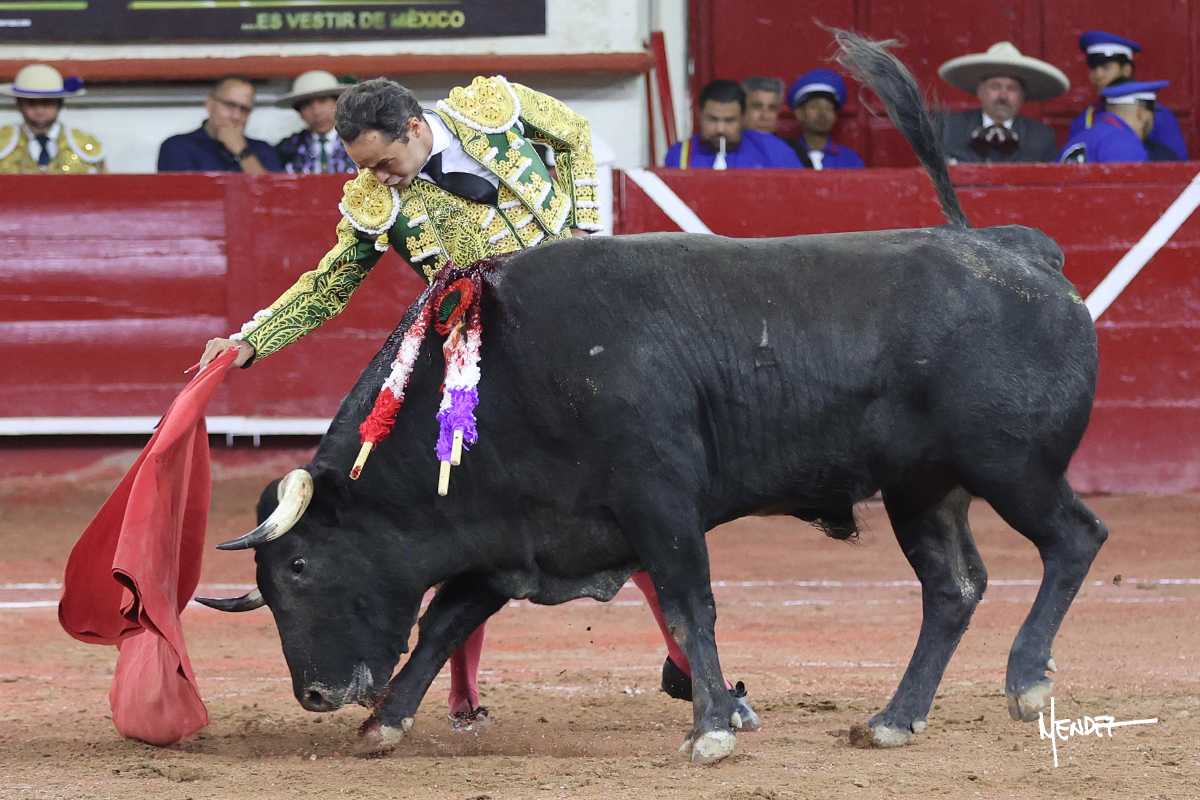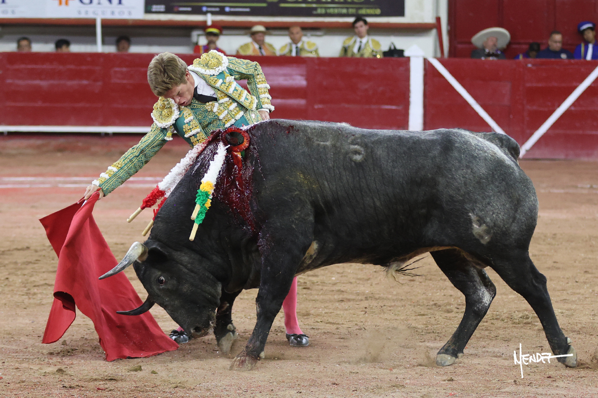 Héctor Gutiérrez saludó a pies juntos al tercero de la tarde, con torería y cadencia. Se fue a los medios y allá se estiró a la verónica. Se alcanzó la faena de muleta y se lo llevó a los medios para iniciar su labor. Lo hizo sobre el pitón derecho, teniendo que tocarlo con firmeza e insistencia en la cara. El animal tenía sus teclas y llevaba un peligro sordo que no facilitaba a Héctor su labor. Cambió al natural y totalmente encajado, se abandonó para darle largura y profundidad a unos pases en los que se gustó y gustó. Continuó por el izquierdo, envolviéndoselo, encontrando ligazón y mucha transmisión, aunque sin poder pasarlo por el derecho, ya que se metía por dentro y lo buscaba. Le dio tiempo y sitio, dosificando las embestidas que volvió a llevar al natural, con firmeza y rotundidad. La capacidad de Héctor se sobrepuso y brilló en una faena que no era nada fácil. A pesar de saber que por el derecho pasaba, lo mostró, jugándosela. Culminó con unos invertidos, pero pinchazo hondo con el que mató al toro.