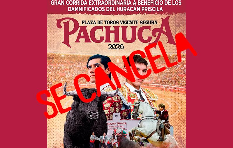 Pizarro Producciones informa que, por razones ajenas a la empresa y derivado del ambiente político que se ha generado en el último mes en la ciudad de Pachuca, se ha tomado la decisión de aplazar la corrida benéfica programada para el día 30 de mayo.