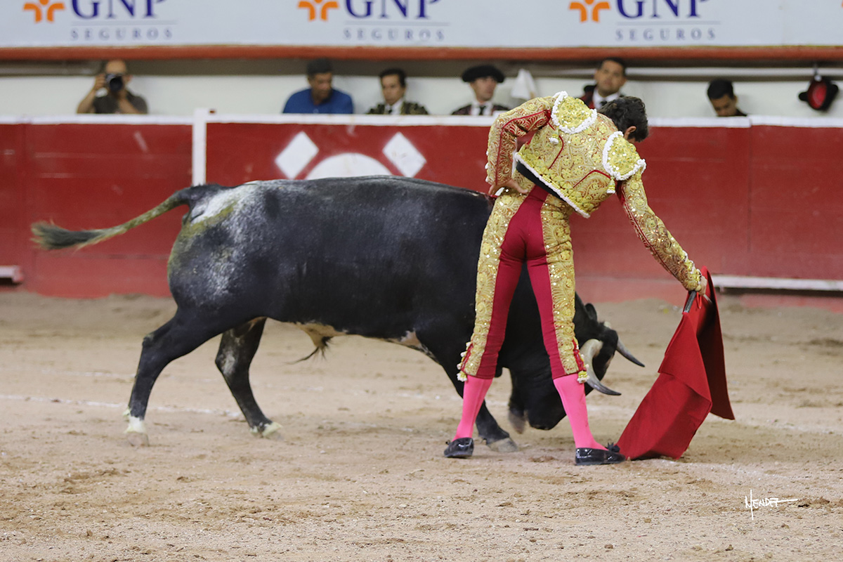 Regaló el séptimo, de Jaral de Peñas, de buen juego, al que lanceó a la verónica suavemente. Con la pañosa, comenzó con un cambiado por la espalda y el pecho para seguir por derechazos plenos de esmero y ganas de agradar, intercalando adornos y hacer el toreo en redondo, rematando con un molinete y el de pecho. Concluyó de estocada trasera y, cuando se merecía una oreja, todo quedó en una salida al tercio.