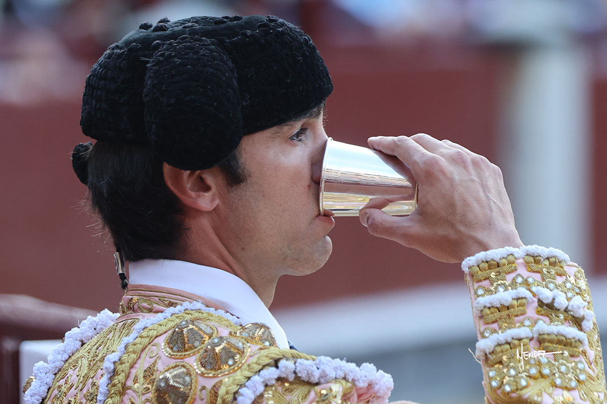 Fortes se estiró a la verónica con el primero de su lote. Inició la faena despacio, con temple, envolviéndoselo a la cintura, prácticamente en los medios. Fue un inicio muy pausado, dosificando aquellas primeras embestidas en la franela. Siguió sobre el derecho, tocándolo en corto, cruzándose, dejándosela puesta a un animal que buscaba la tela abajo. Cambió al natural, pero el animal, a pesar de su forma de meter la cara, se quedaba corto y no transmitía. Retomó el pitón derecho, con mucha cautela, echándole los vuelos a la cara, desarrollando unos muletazos que cuajó por abajo, toreando con profundidad. Culminó con unos pases por abajo, a pies juntos, con desmayo y cadencia que pusieron a la plaza en pie. Metió el acero al segundo intento.