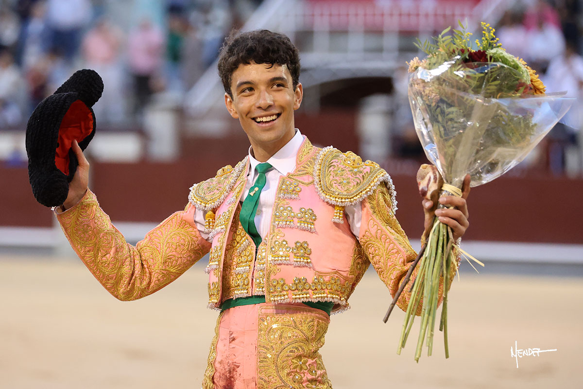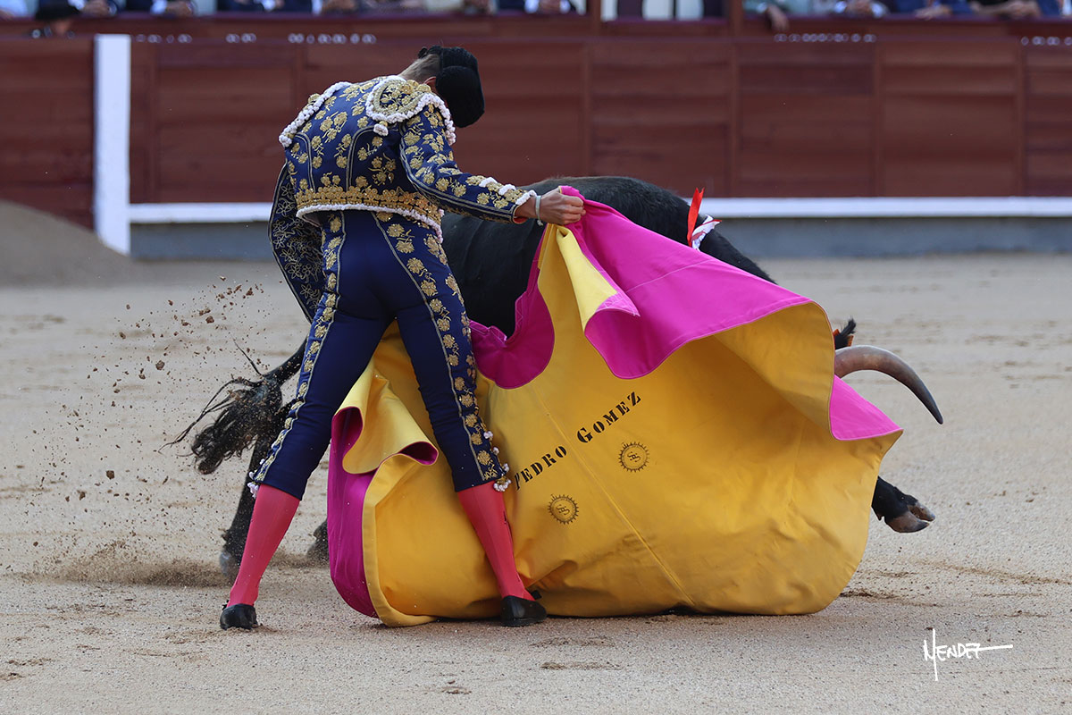 Pedro Gómez se fue a la puerta de chiqueros para recibir a portagayola con una larga cambiada de rodillas al cuarto de la tarde. Apostó por poner los palos en el tercio de banderillas, teniendo más disposición que acierto. Brindó desde los medios y comenzó su labor ante un eral de embestida bronca. Sin embargo, tras aquel inicio de acople y de tira y afloja, logró conectar con los tendidos sobre el pitón derecho, aprovechando la inercia para ligarlo y darle ritmo a la faena. Pudo acoplarse, dejando detalles de calidad, encontrando la suavidad y la armonía. Se la dejó puesta y a media altura volvió a llevarlo con cierta continuidad y largura en el trazo. Hubo muchos altibajos en su faena, pero no le faltó entrega. Culminó por manoletinas para después fallar con los aceros.
