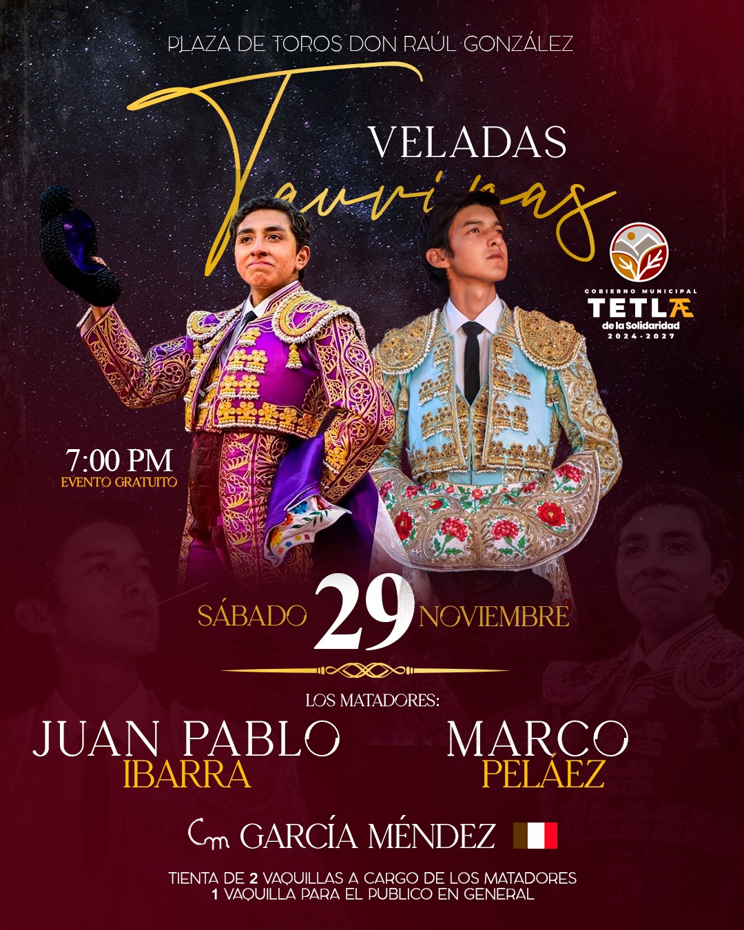 Se informa que, el H. Ayuntamiento de Tetla de la Solidaridad, Tlaxcala, dio a conocer, mediante sus redes sociales, el cartel para la que será III y última Velada Taurina de este serial 2025.