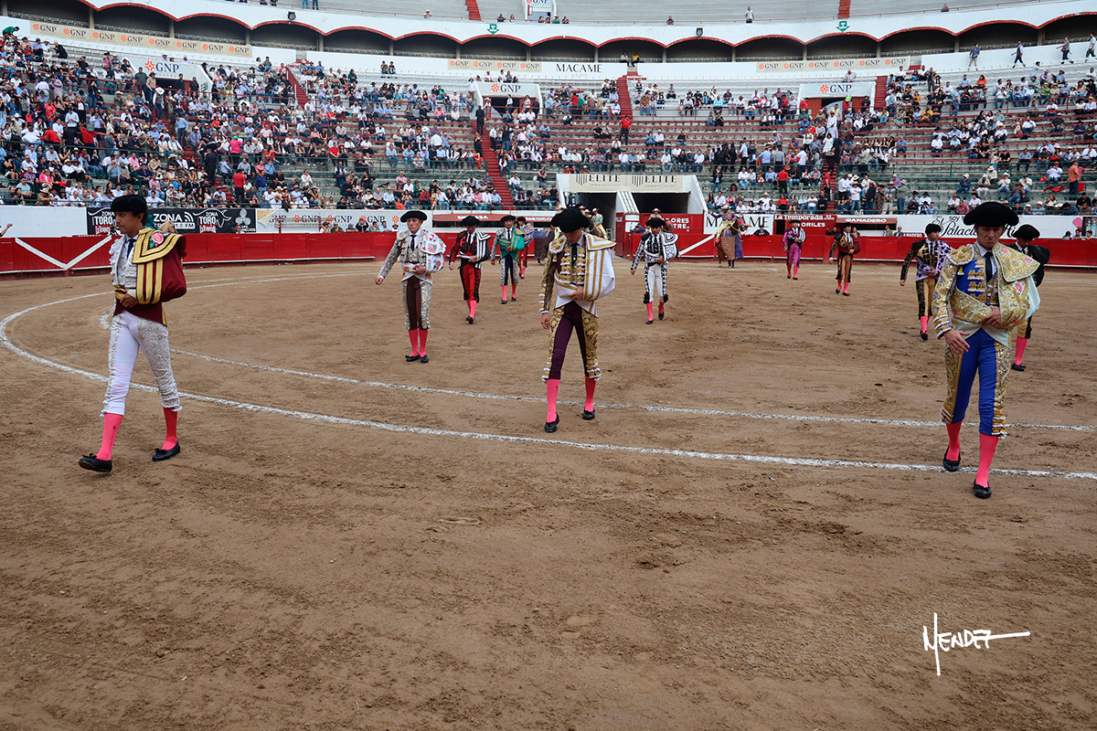 Salieron siete toros de la dehesa guanajuatense de Peñalba, siendo noble, pero, falto de fuerza el primero. El segundo, por falta de fuerza, fue devuelto a los corrales, por lo que fue sustituido por la primera reserva, de la misma casa ganadera, dando buen juego. El tercero también fue bueno. Débil resultó el cuarto. Y complicados resultaron el quinto y el sexto.