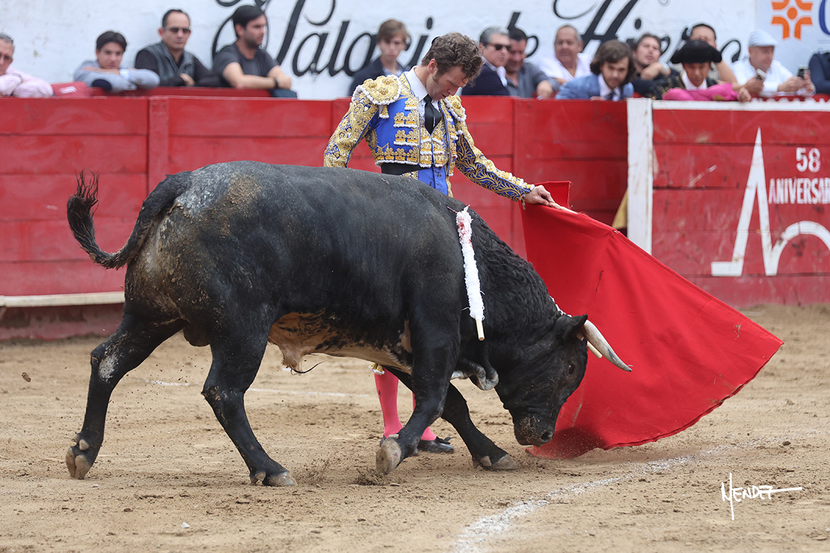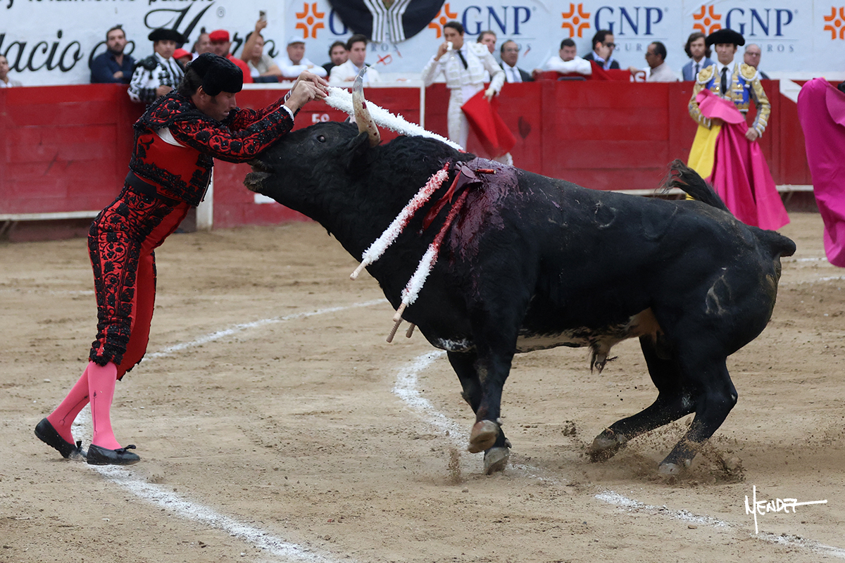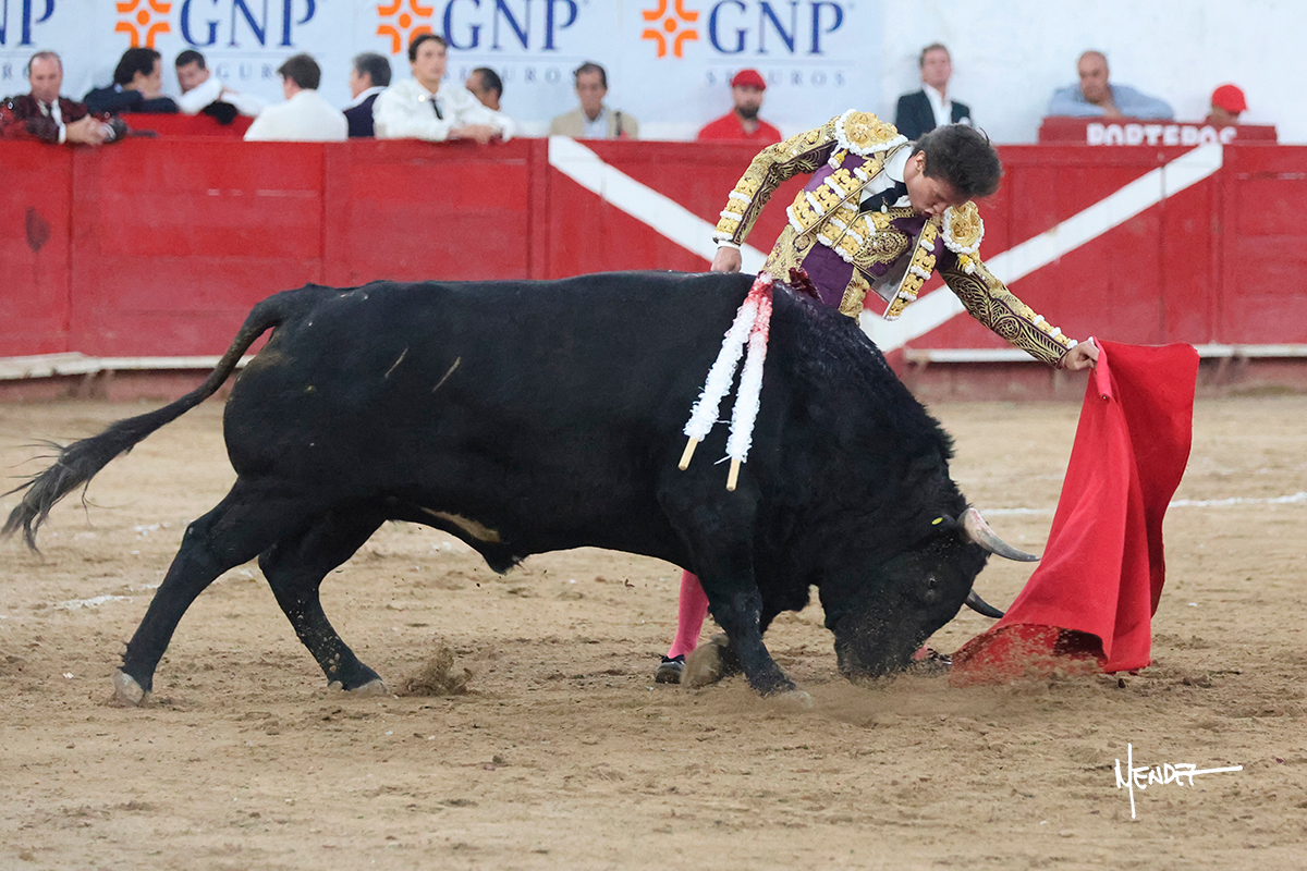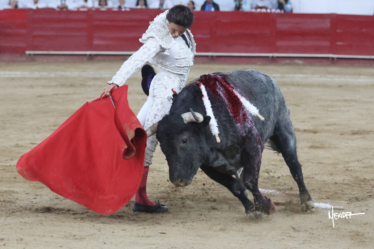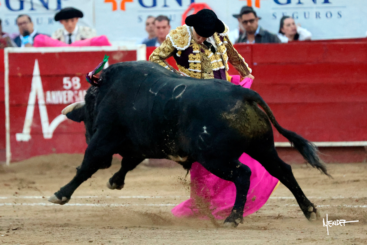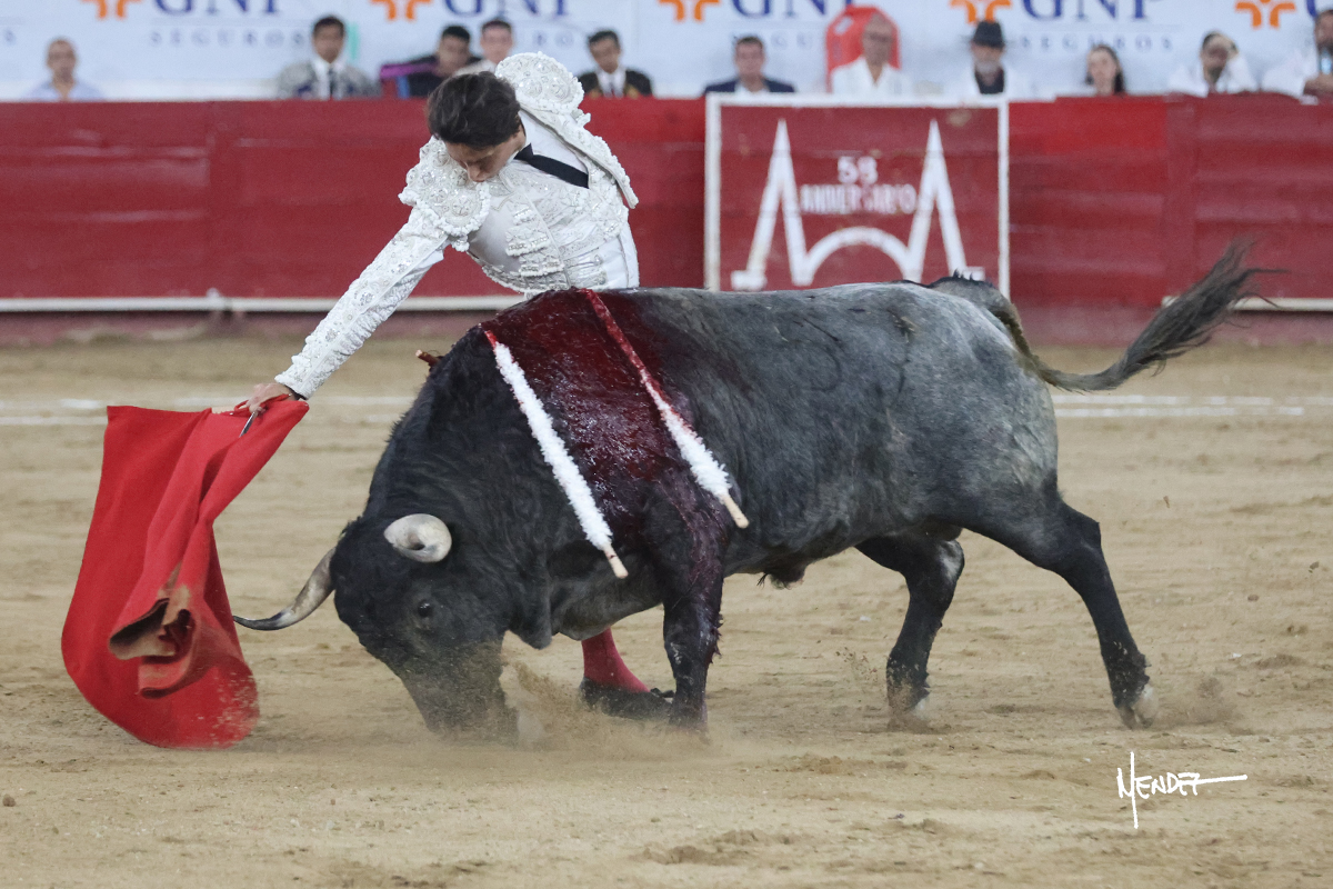 En su primero, de poca fuerza, el limeño Andrés Roca Rey se dejó ver empeñoso y variado en el saludo capotero. Saliendo del caballo, el astado perdió las manos y ante la inconformidad del público, la autoridad ordenó que regresara a los corrales, por lo que, en su lugar, salió la primera reserva, llamado “Costurero”, de la misma dehesa titular, que tuvo nobleza y, al que Roca Rey, lanceó de forma voluntariosa. Buena vara del piquero Alfredo Ruiz. Luego de brindarle al empresario y ganadero Pablo Moreno Valenzuela, Andrés, con la sarga, poco a poco lo fue metiendo en el engaño, yendo de menos a más hasta bajarle la mano y corrérsela con gusto, sobresaliendo dos brillantes tandas diestras que le fueron jaleadas y una más por naturales. Ha sido una faena plena de entrega y hondura. Cerró por ceñidas manoletinas y mató de media estocada para que el juez de plaza, de manera benévola, le otorgara las orejas bajo algunas protestas. Al toro se le aplaudió en el arrastre.