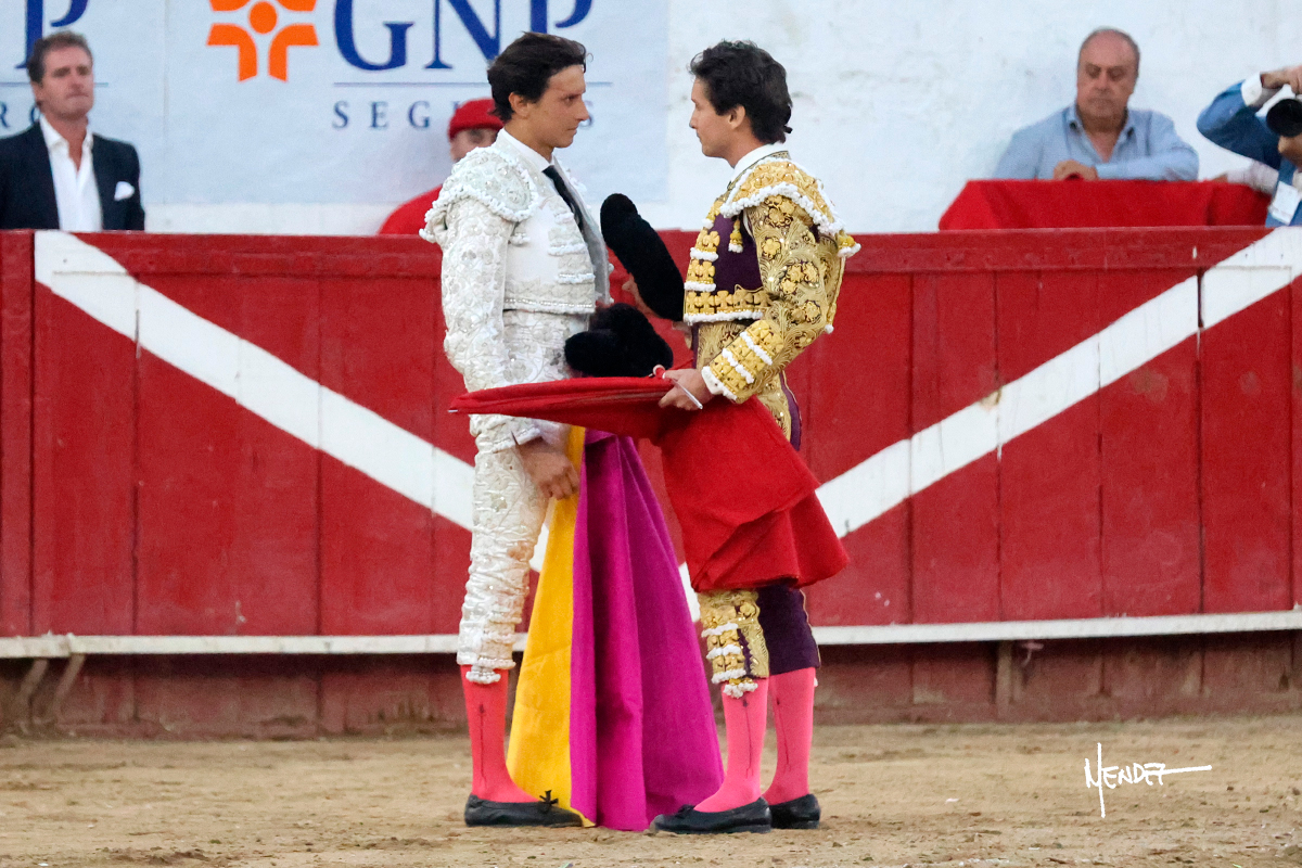 El lagunero Arturo Gilio, a su primero, bueno también, lo recibió de rodillas, frente a la puerta de toriles, para intentar una larga cambiada siendo casi atropellado y otra más al hilo de las tablas, además, de cuatro verónicas y, ya de pie, ligar chicuelinas. Con la pañosa, tras brindarle a su alternante Roca Rey, Arturo se dejó ver maduro y con ambición, sobre todo, sereno, para cuajar pases de calidad por el lado derecho. Fue bajándole la mano hasta que se hizo del burel y, así, cristalizar una labor llena de empaque y torería. Por naturales, igualmente, se gustó corriendo la mano. Ha sido un trasteo completo y que caló en el tendido. No atinó al matar y fue ovacionado en el tercio.