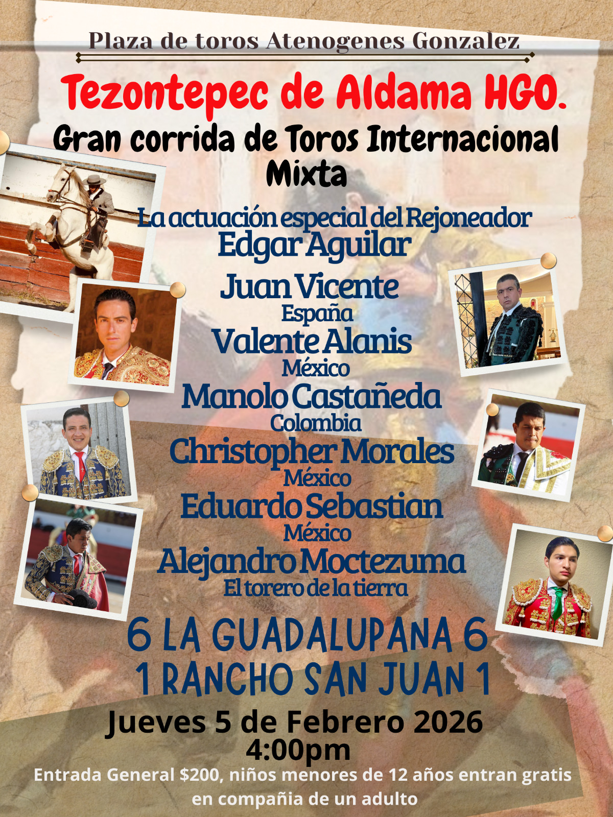 En estos días fue presentado el cartel del tradicional festejo de feria en honor a la virgen de La Candelaria de la localidad hidalguense de Tezontepec de Aldama. Se trata de una corrida mixta que se realizará el jueves 5 de febrero.