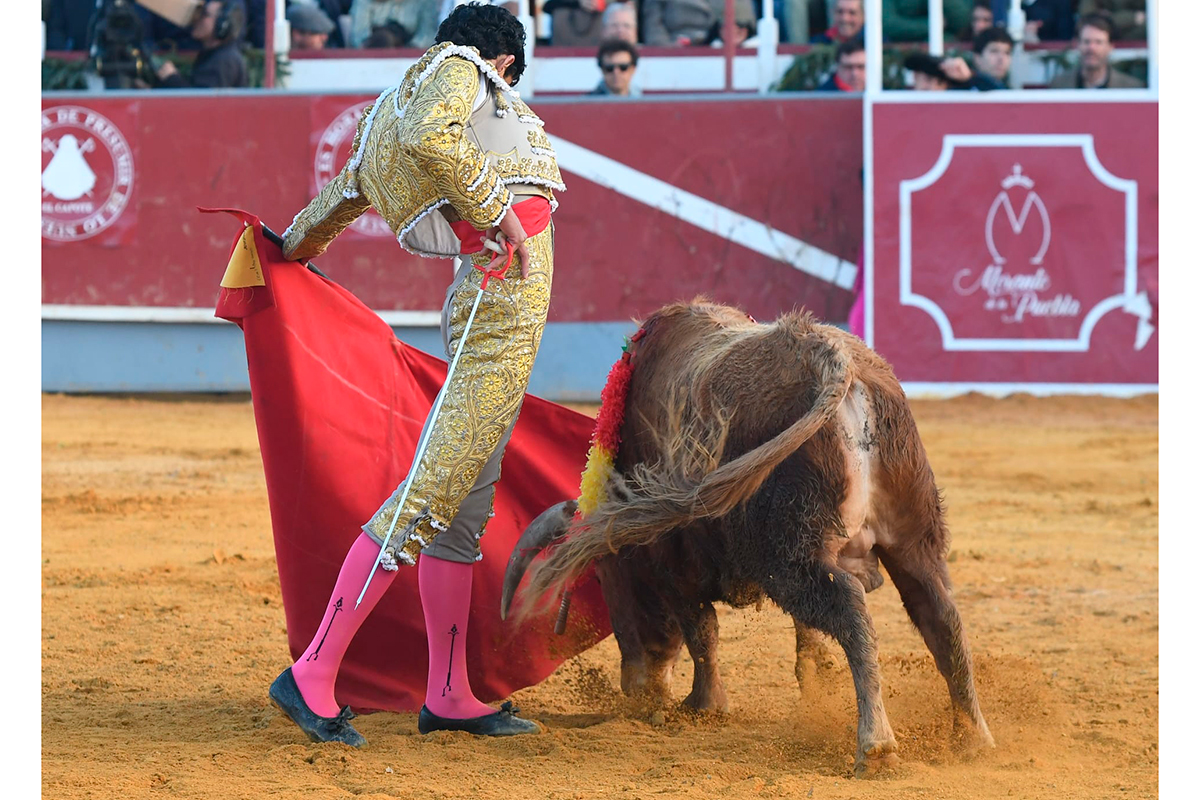 Ignacio Garibay saludó al tercero de la tarde, un novillo de Fermín Bohórquez de nombre «Pantuflo», al que recibió con unos lances templados ante la codicia, prontitud y exigencia de un ejemplar al que tuvo que darle sitio mientras le ganaba terreno. A continuación, salió al ruedo Íñigo Norte que se echó el capote a la espalda para desarrollar el quite ante un novillo justo de fuerza y que llegó a perder las manos. Comenzó su labor de muleta después de brindar al público desde el tercio. Lo recibió en la franela a pies juntos, pasándolo por alto por ambos pitones, teniendo que insistirle en el toque, aunque metiéndolo para sacarlo de tablas. Continuó sobre el pitón izquierdo, dándole tiempo y sitio, para después aprovechar la inercia de un novillo que iba largo y darle ritmo a su serie. El animal tenía condiciones, pero le faltaba fuerza, por lo que Garibay, a base de oficio, midió los tiempos y la altura. Cambió al pitón derecho, aunque sin poder darle ligazón a las series por aquel ejemplar de Fermín Bohórquez que estaba justo de fuerza. Volvió a darle tiempo para mostrarlo al natural, siempre en el sitio, tirando de la embestida a media altura con soltura, suavidad y mucho gusto, tratando de alargar el trazo mientras lo pulseaba y se ajustaba a aquella embestida irregular, en la que quería más que podía. El mexicano se la dejó puesta en la cara y poco a poco le fue bajando la mano, con mucha delicadeza, robándole las embestidas. Incluso sobre el derecho, lo llevó al natural, encontrando el acople, en una serie milimetrada pero con ritmo en la que midió los tiempos y logró lucirse hasta rematar la tanda con un pase en redondo. Alargó su labor, toreándolo paralelo a tablas, gustando y gustándose, derrochando capacidad y mucho oficio. Culminó a pies juntos y con quietud, envolviéndoselo a la cintura para culminar con una estocada entera y en todo lo alto.