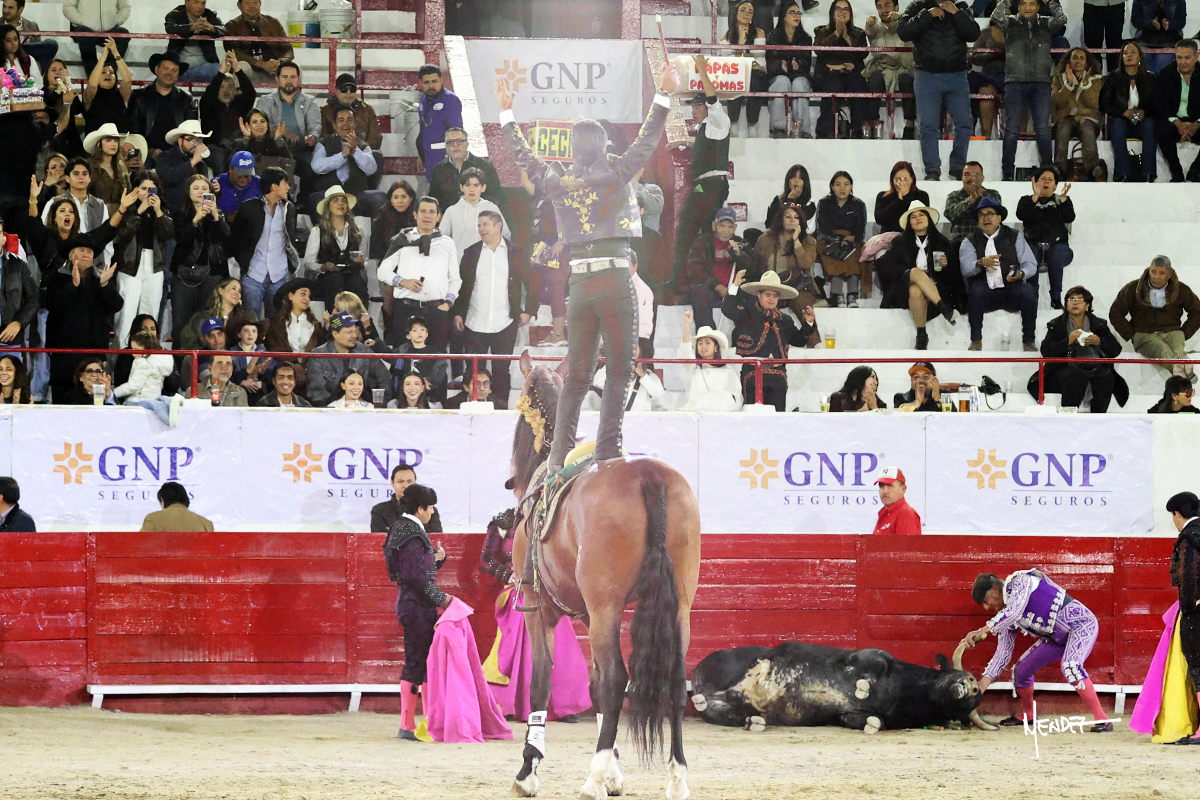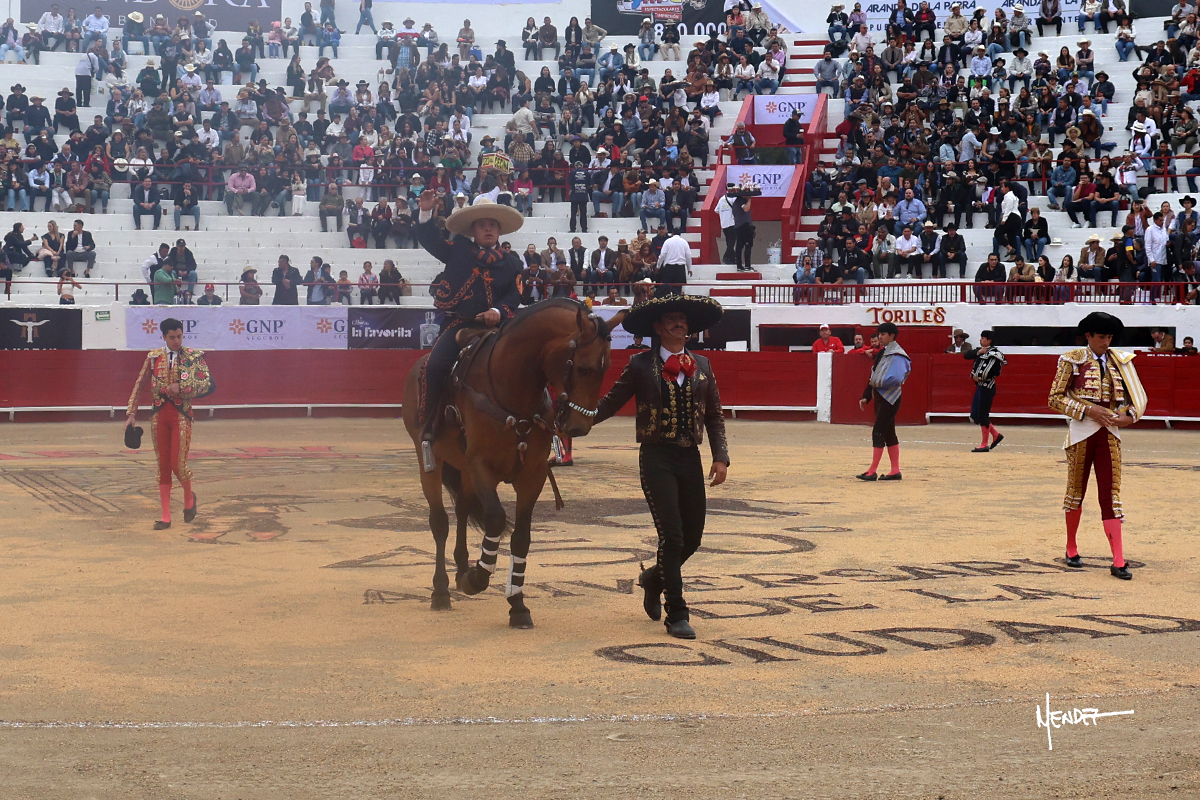 Ante poco menos de media entrada en el coso Monumental “La Luz”, en tarde nublada, pero, de agradable clima, se dio la primera corrida de la feria, resultando como triunfadores el espada ibérico Marco Pérez al obtener tres apéndices y, el rejoneador Emiliano Gamero, quien se hizo de dos apéndices para, al final, ambos ser paseados en hombros. El otro diestro en el cartel, Ernesto Javier “Calita”, muy bien toreando, pero, muy mal al momento de matar.