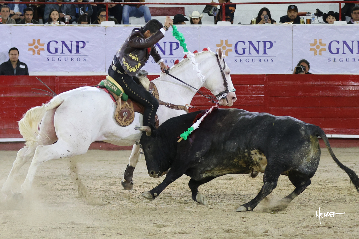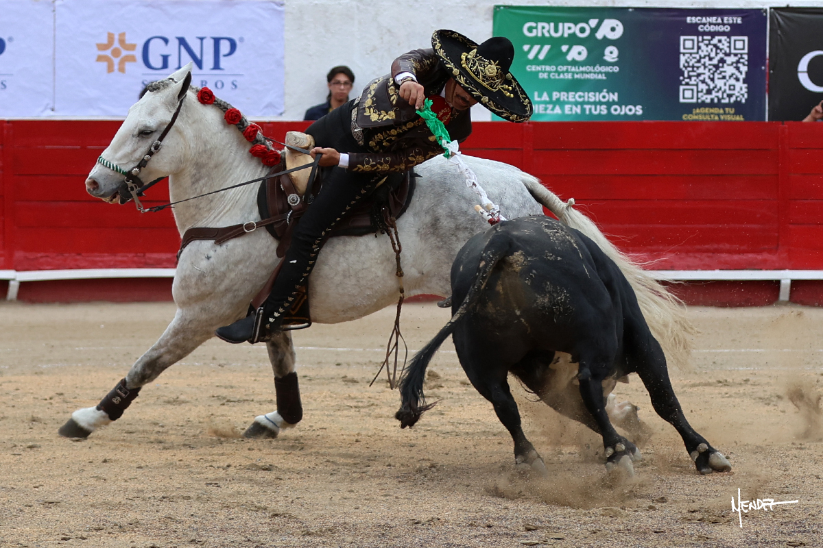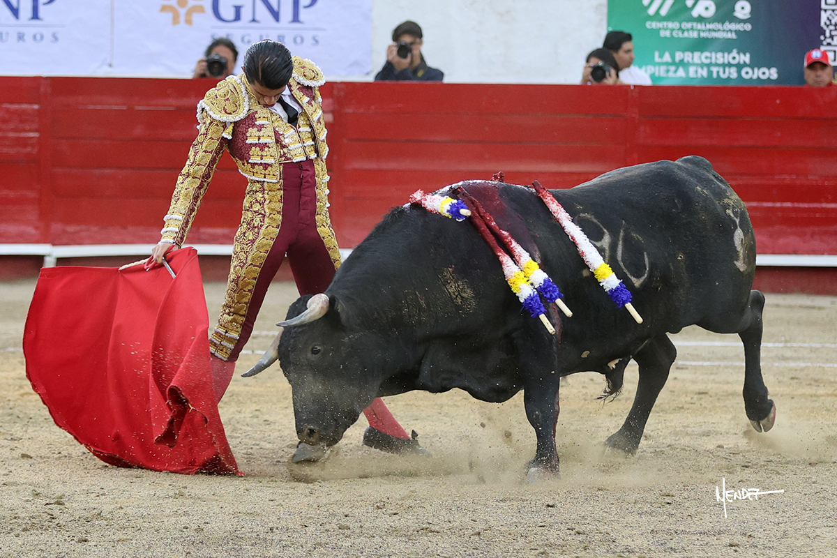 Emiliano a su segundo, “Corazón Valiente”, que era el primero de su lote, emotivo, al que de entrada le puso dos fierros de castigo. Se hizo aplaudir en el manejo de su cuadra, sobre todo, manejando a “Ilusión” y “Jaque Mate”, con los que emocionó a la afición al colocar banderillas al cambio y al violín, así como templar a la grupa. Hizo una espectacular suerte al encelar al toro caminándole para atrás, aguantó la embestida en la reunión y, en un palmo de terreno, puso la banderilla para ser ovacionado. Al final, clavó la rosa y mató de manera certera para obtener un apéndice y al toro se le aplaudió en el arrastre.
