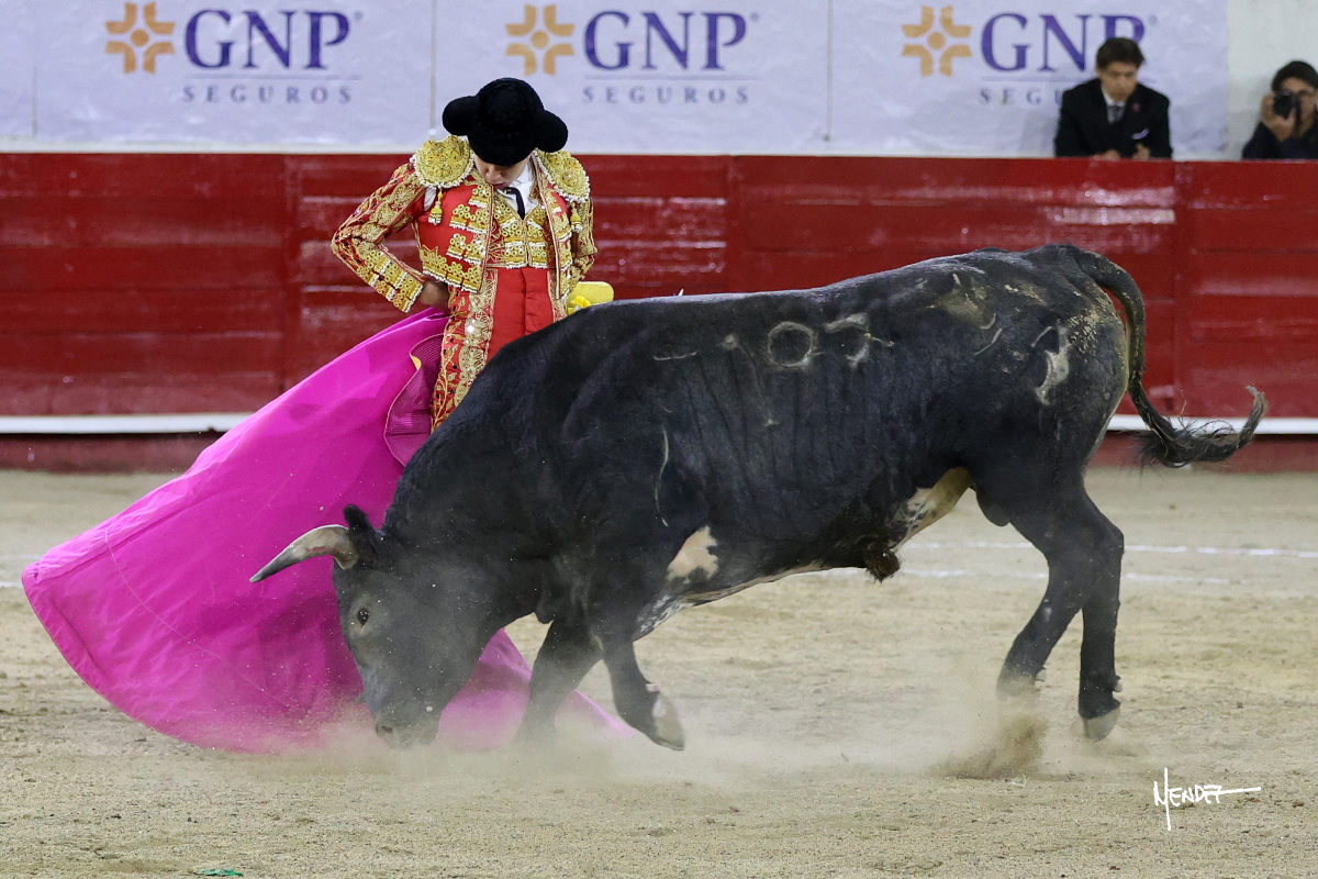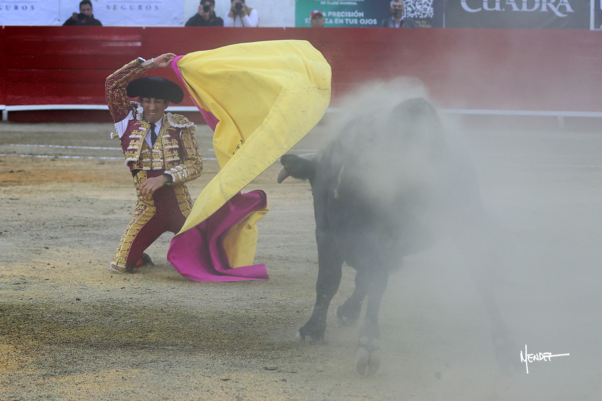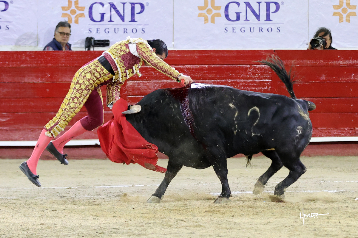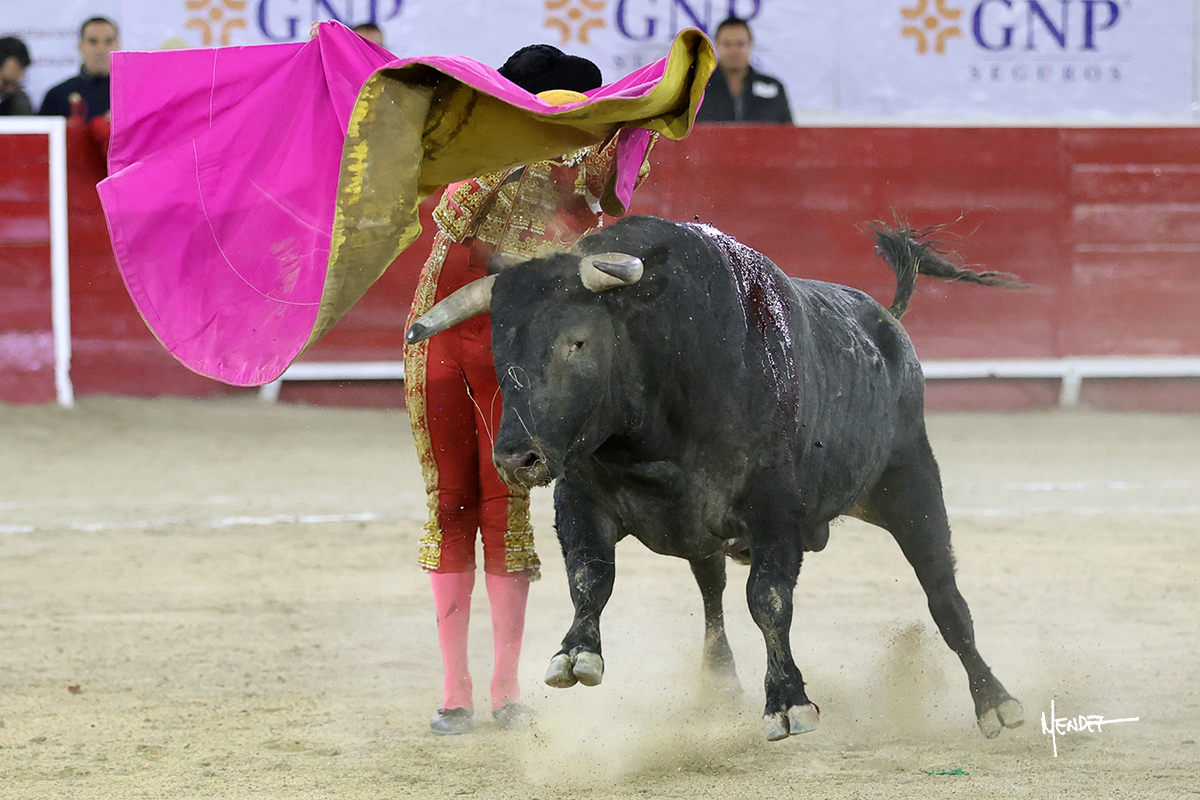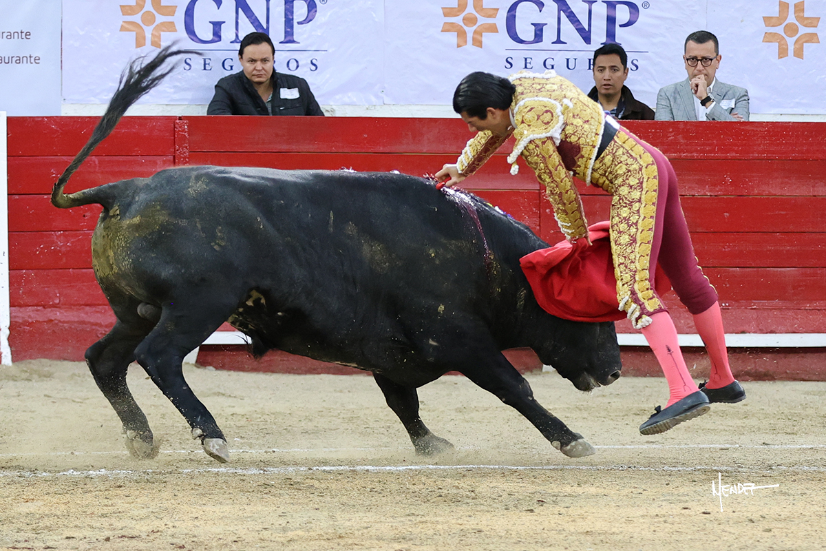 A pie, el mexiquense Ernesto Javier “Calita”, a su primero, que tuvo movilidad y calidad, lo recibió de rodillas en los medios para ser arropado y, ya en tablas, le dio un farol de hinojos y, de pie, bregó fácilmente. Con la muleta, le puso inteligencia al empezar doblándose, metiendo poco a poco en el engaño al toro en una faena que fue a más, aprovechando las buenas condiciones del delamoreño. Cuajó pases de evidente asentamiento, haciendo todo relajado, destacando la profundidad de sus derechazos, pero, al final, malogró todo con la espada y todo quedó en una salida al tercio.