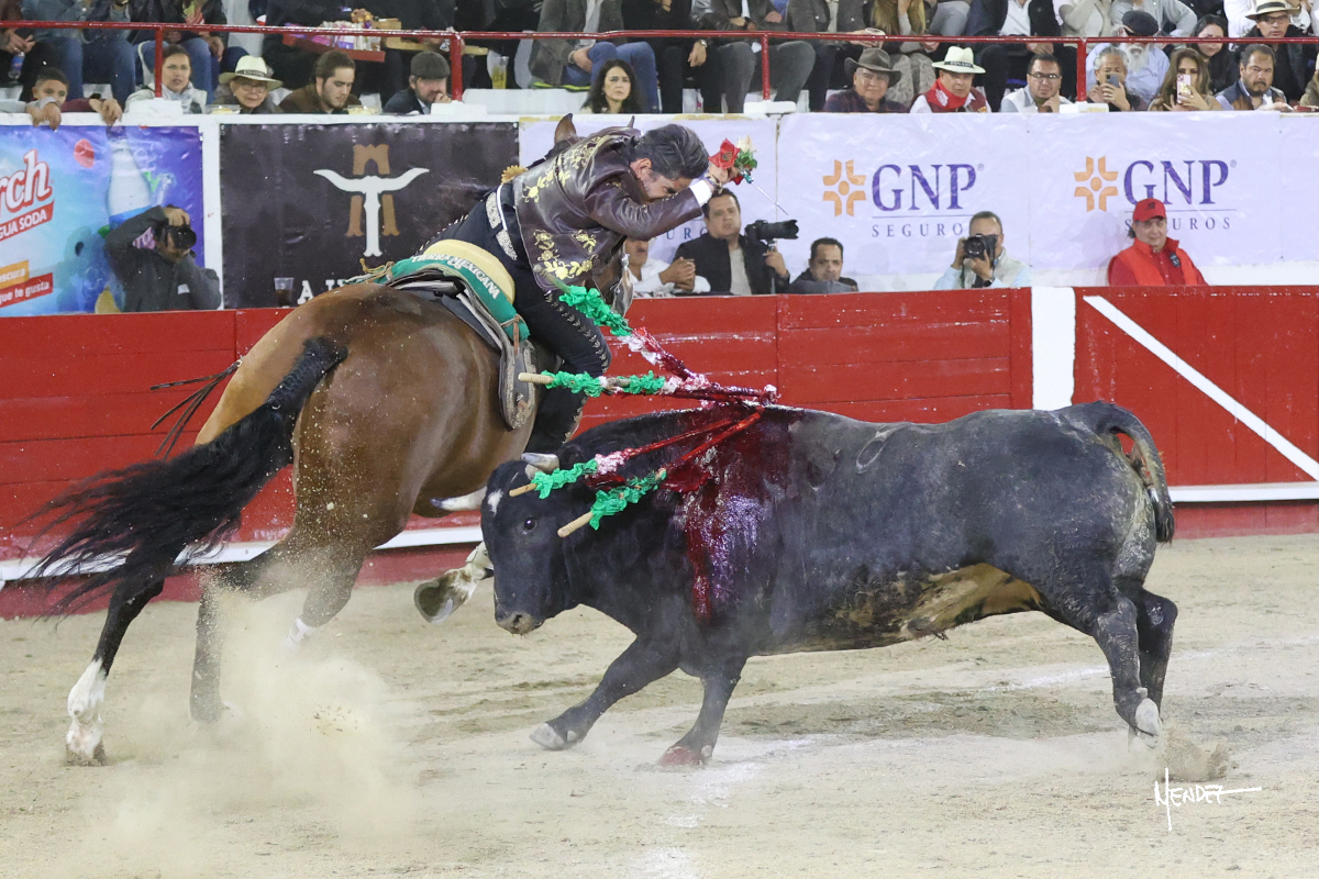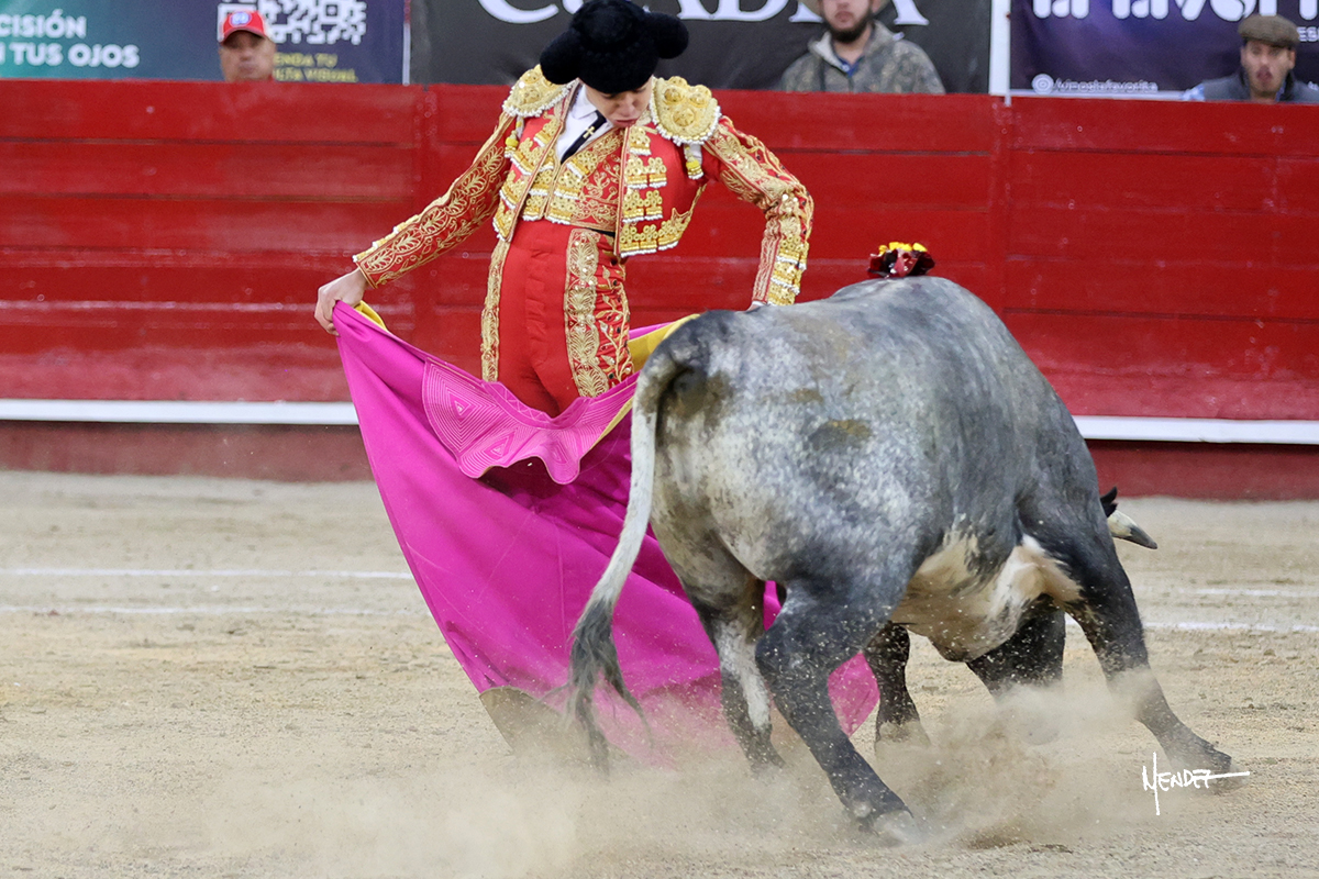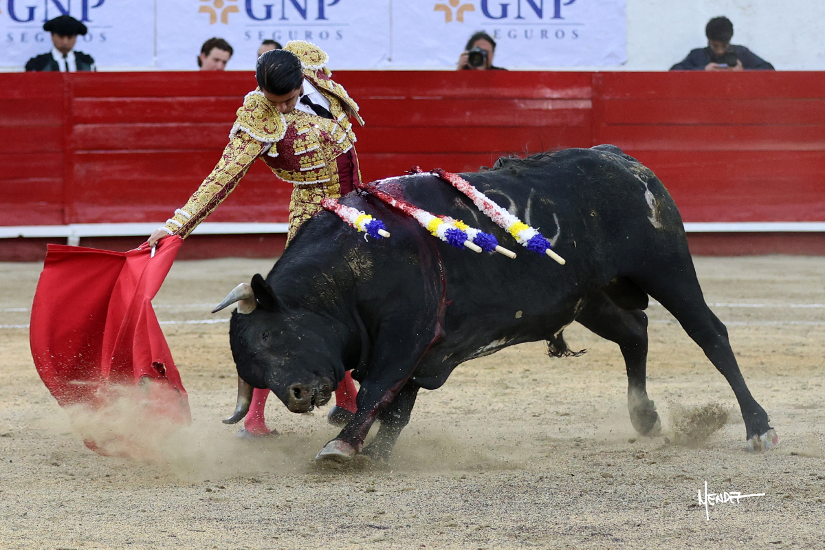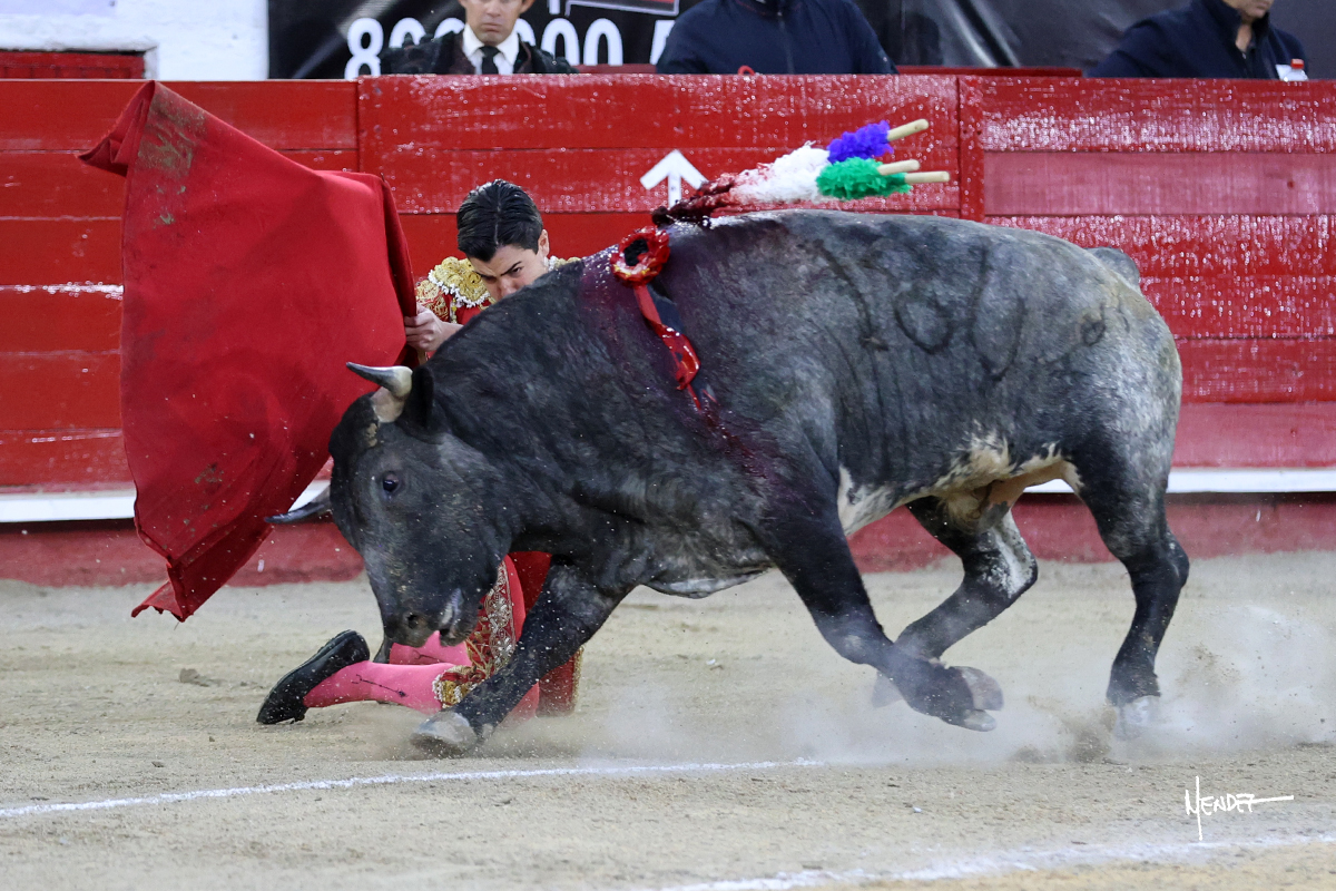A pie, el mexiquense Ernesto Javier “Calita”, a su primero, que tuvo movilidad y calidad, lo recibió de rodillas en los medios para ser arropado y, ya en tablas, le dio un farol de hinojos y, de pie, bregó fácilmente. Con la muleta, le puso inteligencia al empezar doblándose, metiendo poco a poco en el engaño al toro en una faena que fue a más, aprovechando las buenas condiciones del delamoreño. Cuajó pases de evidente asentamiento, haciendo todo relajado, destacando la profundidad de sus derechazos, pero, al final, malogró todo con la espada y todo quedó en una salida al tercio.