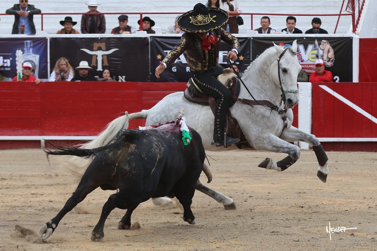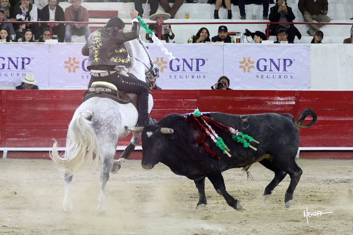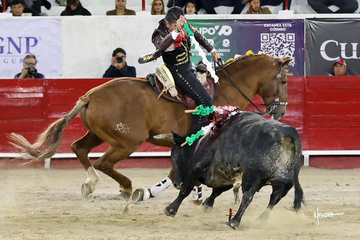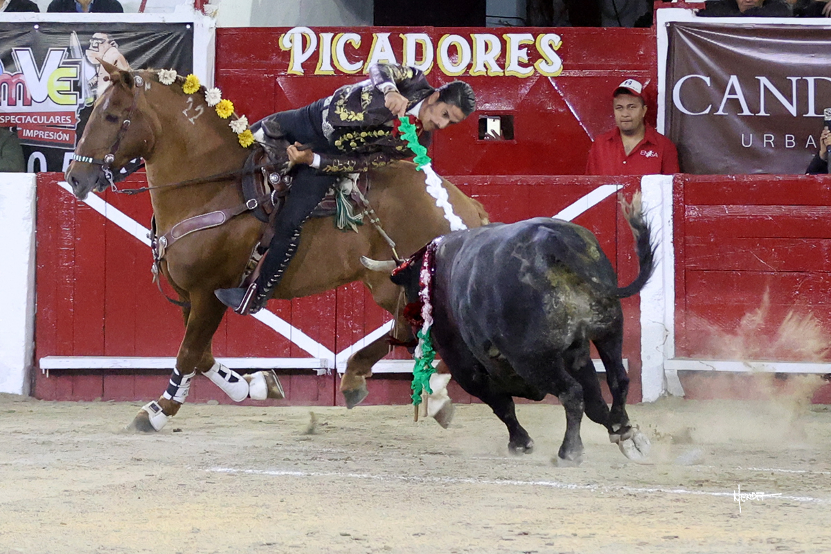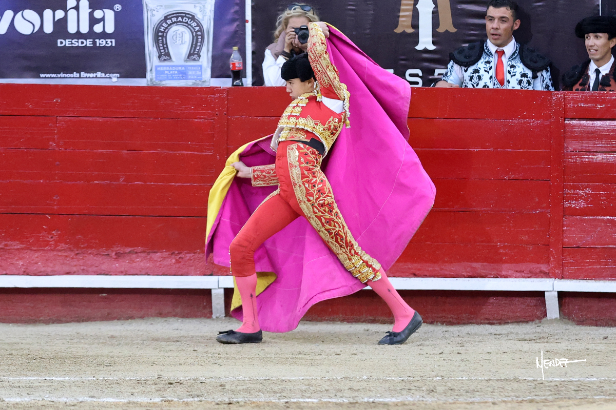 A pie, el mexiquense Ernesto Javier “Calita”, a su primero, que tuvo movilidad y calidad, lo recibió de rodillas en los medios para ser arropado y, ya en tablas, le dio un farol de hinojos y, de pie, bregó fácilmente. Con la muleta, le puso inteligencia al empezar doblándose, metiendo poco a poco en el engaño al toro en una faena que fue a más, aprovechando las buenas condiciones del delamoreño. Cuajó pases de evidente asentamiento, haciendo todo relajado, destacando la profundidad de sus derechazos, pero, al final, malogró todo con la espada y todo quedó en una salida al tercio.