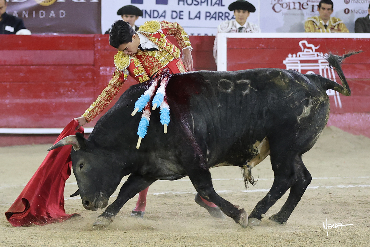 En su primero, “Parrandero”, de buen juego, el salmantino Marco Pérez instrumentó de inicio el lance de “La Veleta” y siguió toreramente aplicando delantales, quitando mejor por ceñidas chicuelinas. Buena vara del piquero Guillermo Cobos. Tras el segundo tercio, se desmonteró el banderillero Héctor García. Con la sarga, Marco fue construyendo una faena importante, sacando buen partido de las buenas condiciones del “socio”. Logró pases en redondo de mucho temple y mano baja, sintiéndose a gusto y emocionando a la gente. Al final, coronó todo de soberbia estocada para hacerse de dos orejas y, al toro, se le dio arrastre lento.