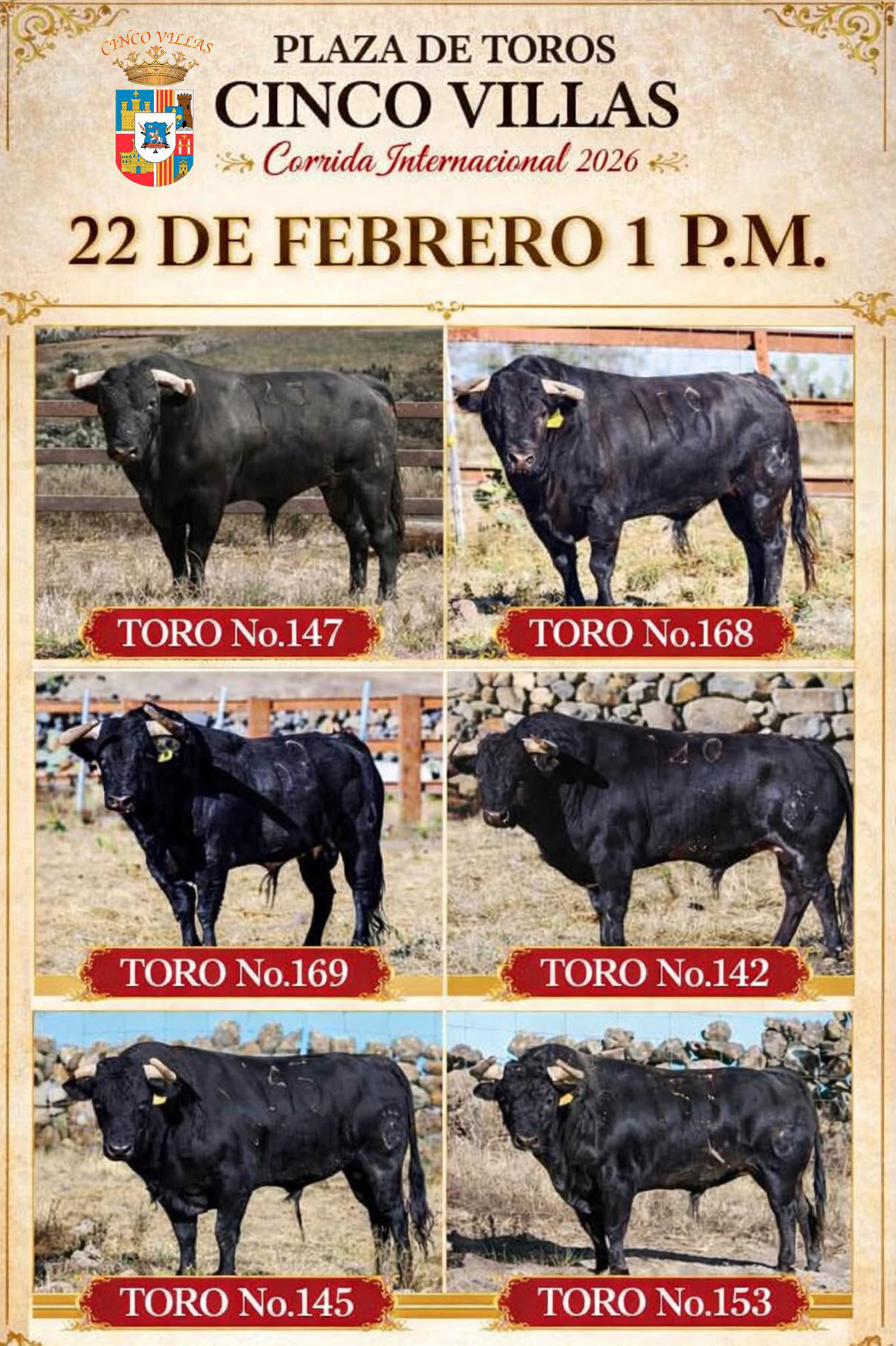 La corrida tiene un peso promedio de 480 kilos, es importante señalar que en las fotos publicadas los toros aun tienen las fundas que les protegen los pitones, mismas que ser retirarán el día de su embarque.