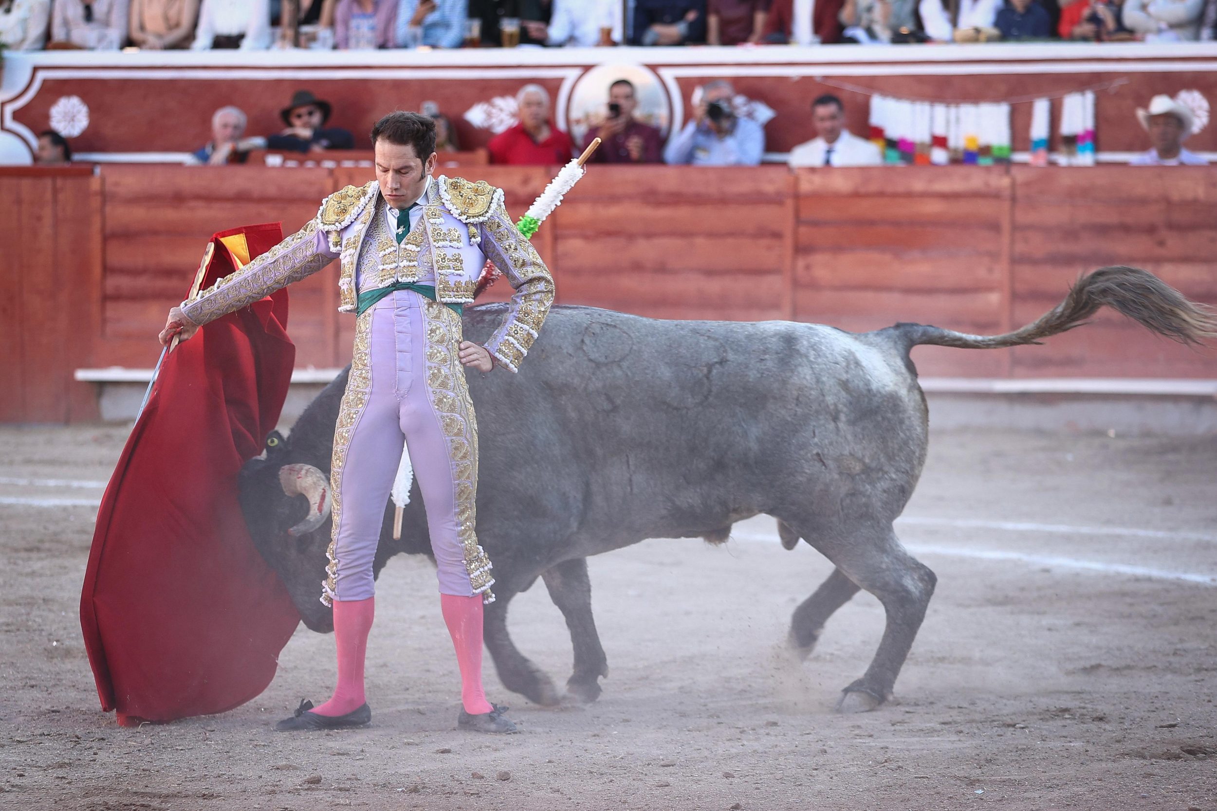 Las primeras series llegaron con temple, marcando el ritmo y buscando la cadencia desde el pitón derecho, por donde el ejemplar ofrecía mayor claridad y recorrido. Los muletazos fueron largos, acompañados con la cintura y rematados atrás, cuidando siempre la colocación. Por el izquierdo, en cambio, el de la dehesa potosina evidenció menor fondo, quedándose corto y obligando al torero a resolver con toque firme y recursos técnicos.