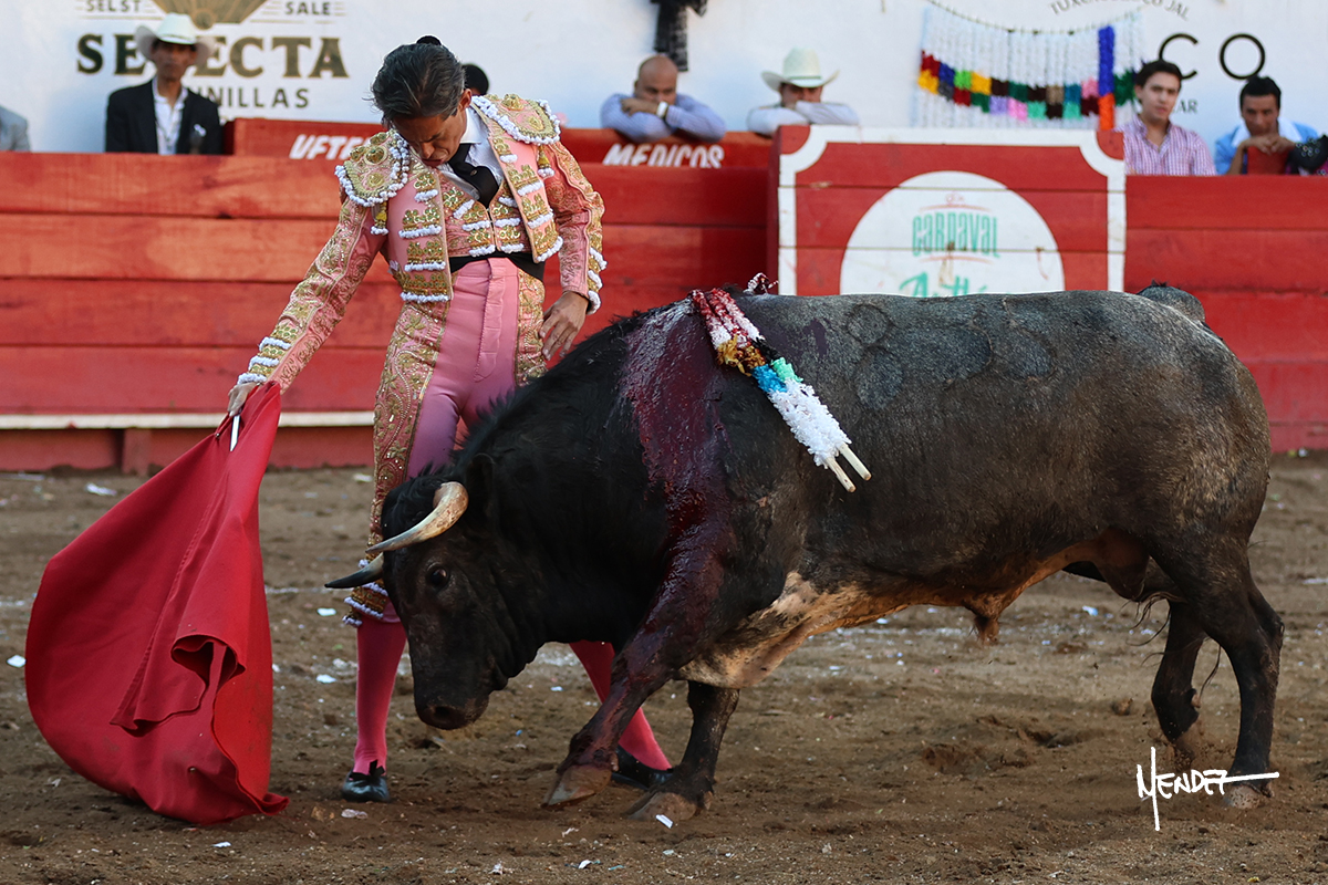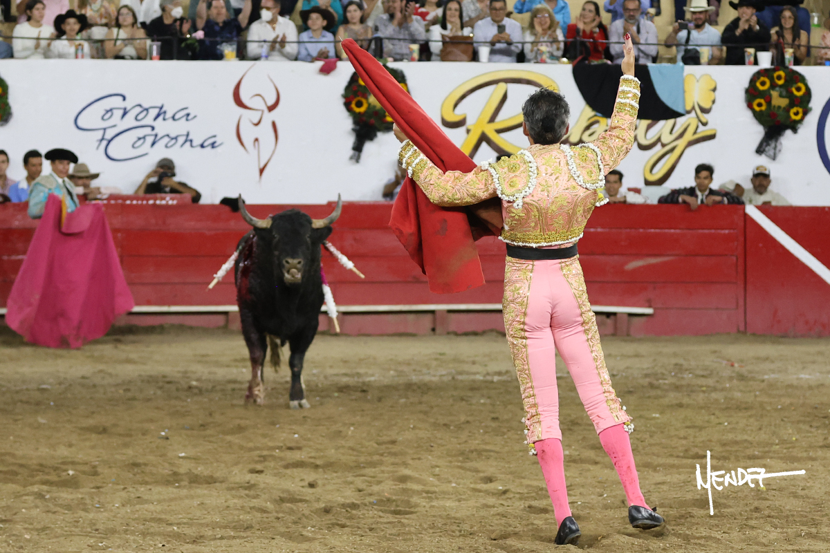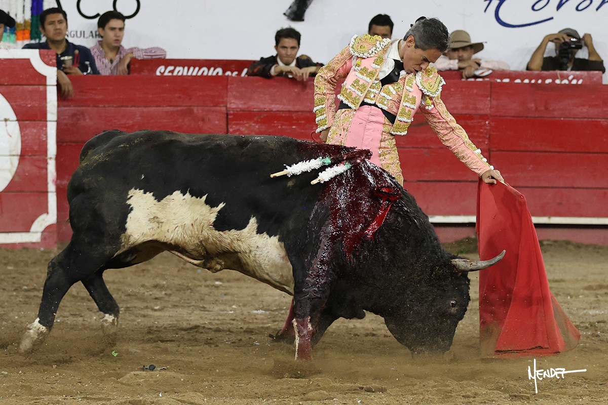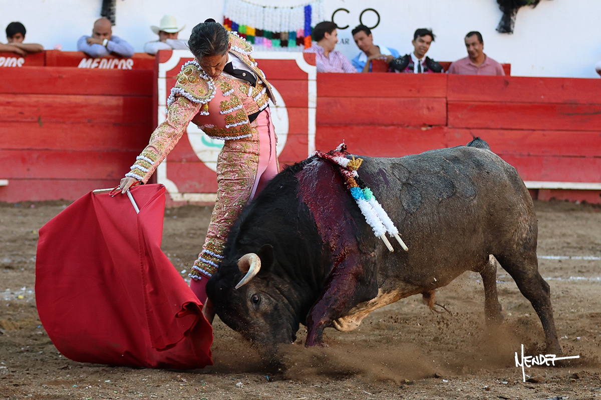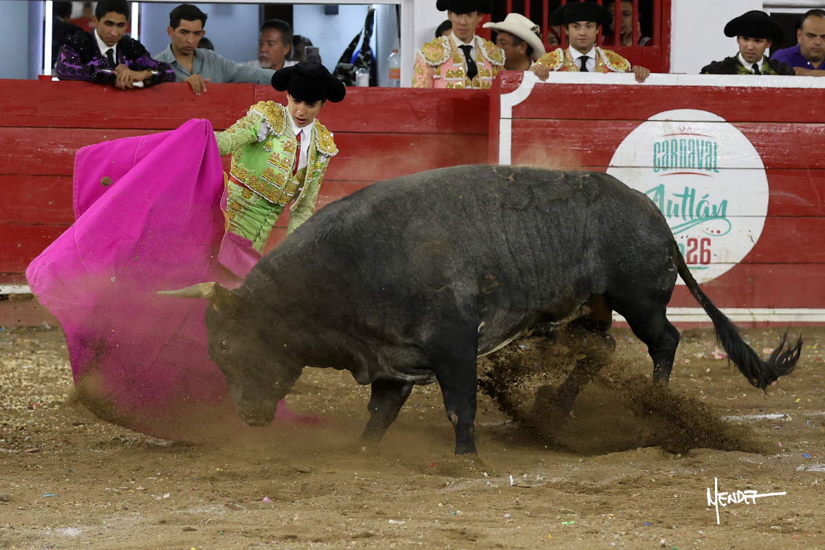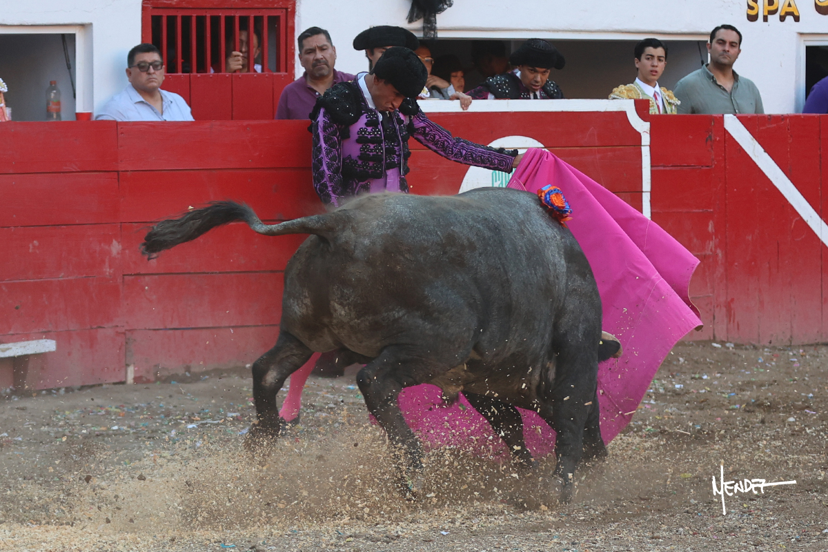 Salió el toro con el que cerraba el Carnaval de Autlán de la Grana al que saludo Marco Pérez con buenos lances a la verónica. El toro empujó fuerte en el caballo, casi derribándolo, para que. Con la muleta, el salmantino inició su faena doblándose con elegancia, después a base de actitud le dió los siguientes muletazos, por ahí algunos adornos y desplantes que llegaron al tendido y al final desafortunadamente falló con la espada teniendo que usar el descabello siendo silenciado.