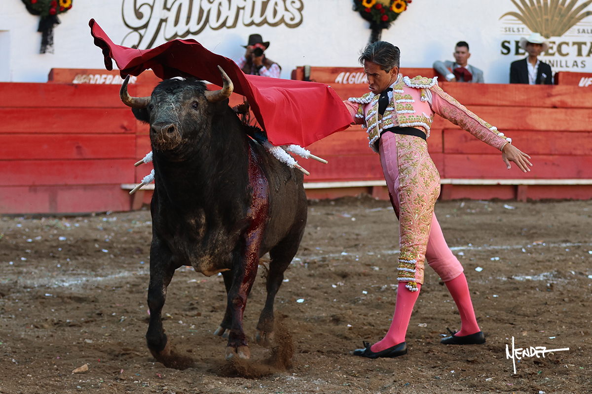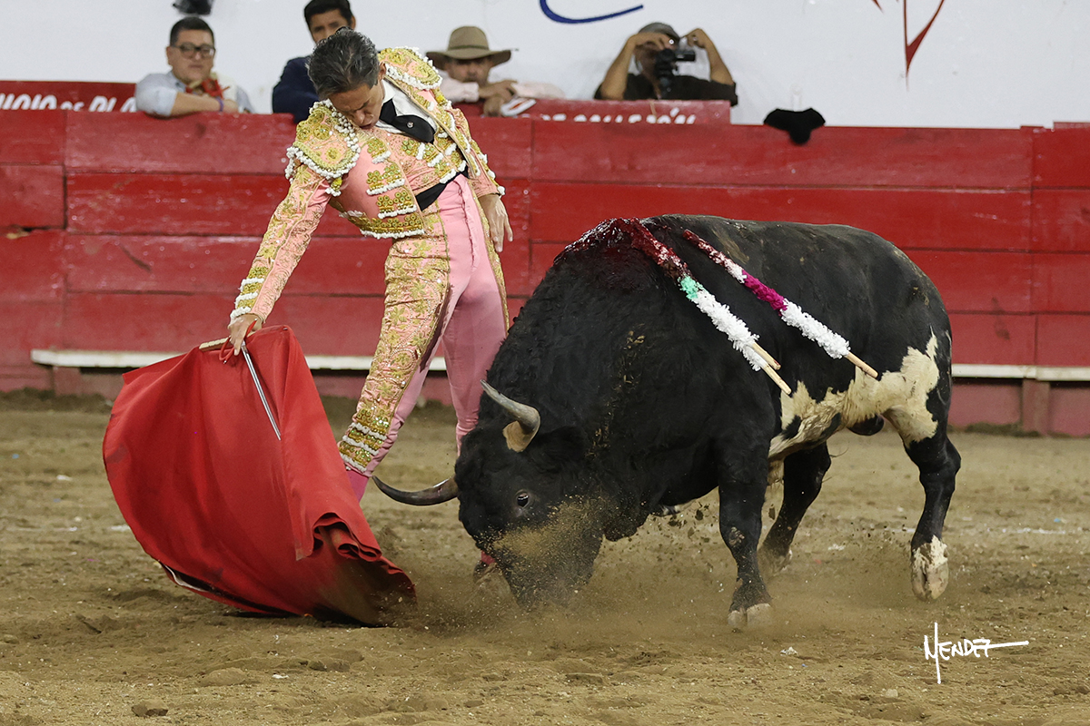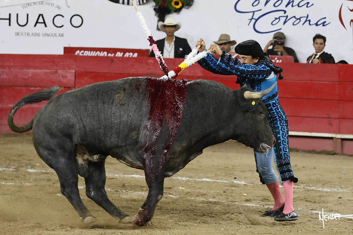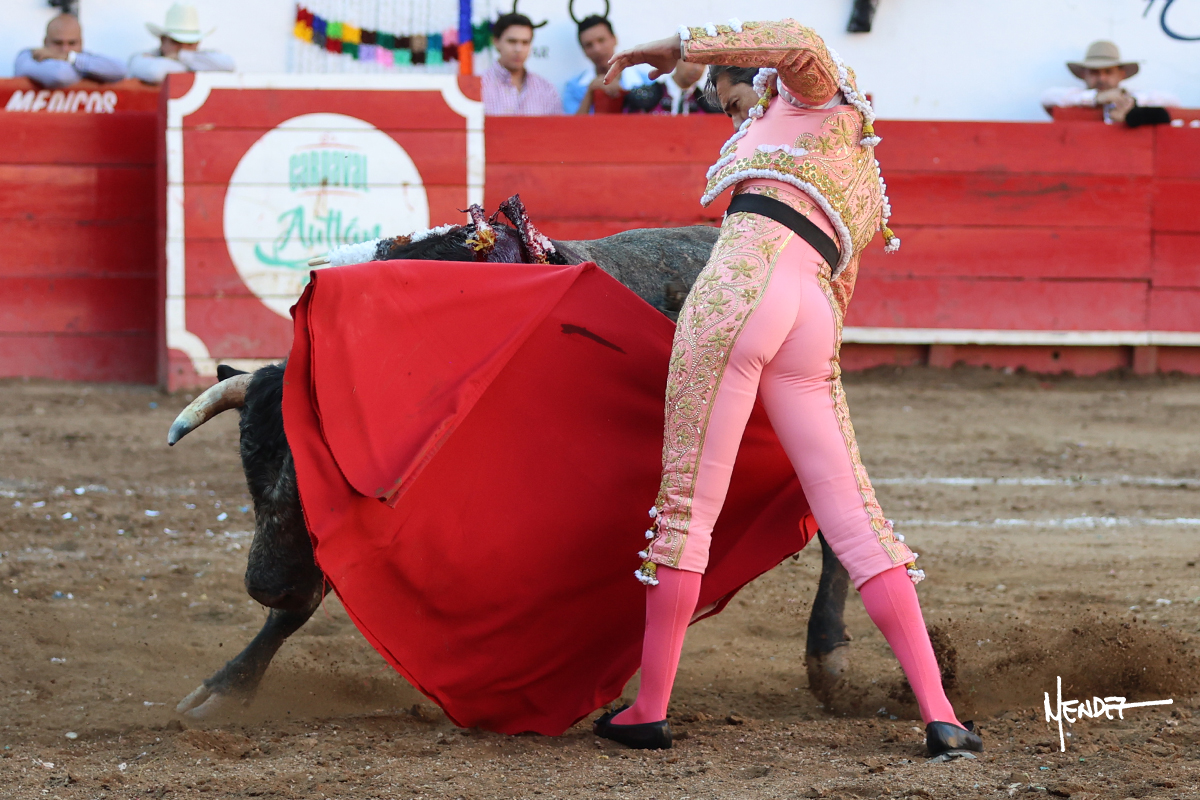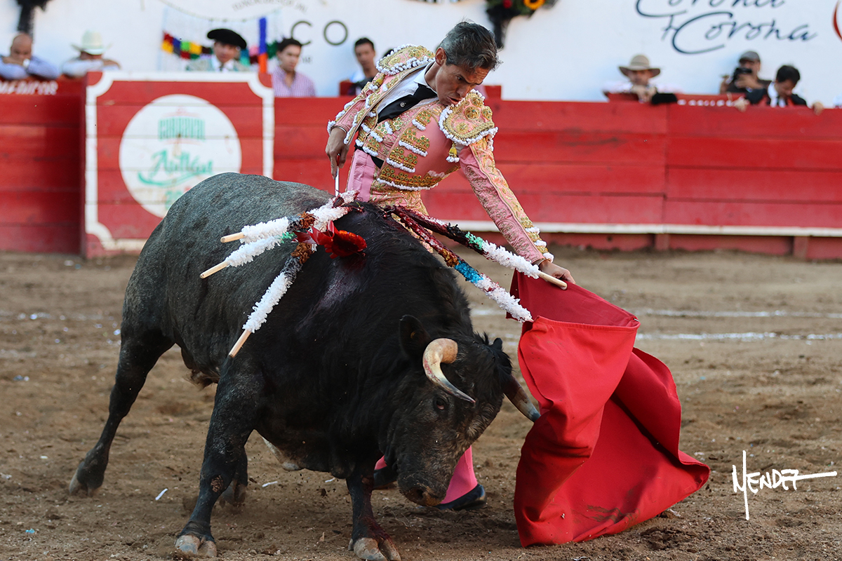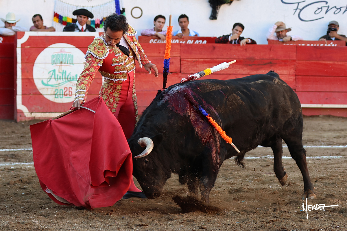 Salió el toro con el que cerraba el Carnaval de Autlán de la Grana al que saludo Marco Pérez con buenos lances a la verónica. El toro empujó fuerte en el caballo, casi derribándolo, para que. Con la muleta, el salmantino inició su faena doblándose con elegancia, después a base de actitud le dió los siguientes muletazos, por ahí algunos adornos y desplantes que llegaron al tendido y al final desafortunadamente falló con la espada teniendo que usar el descabello siendo silenciado.