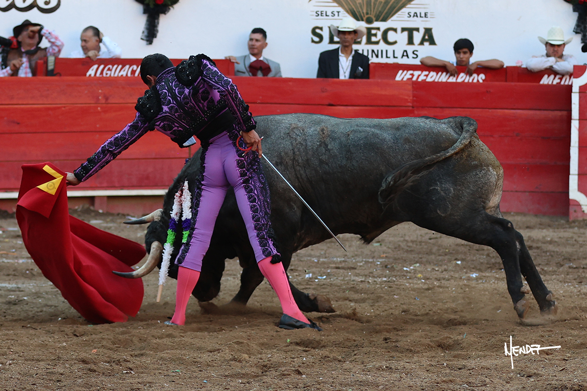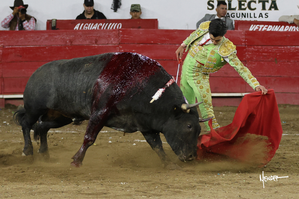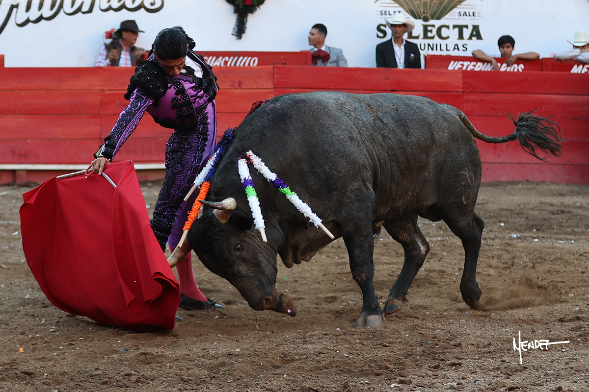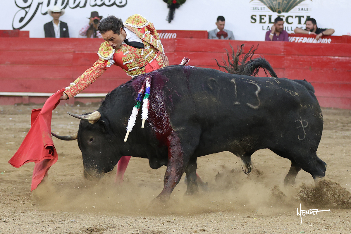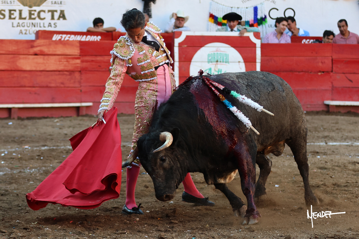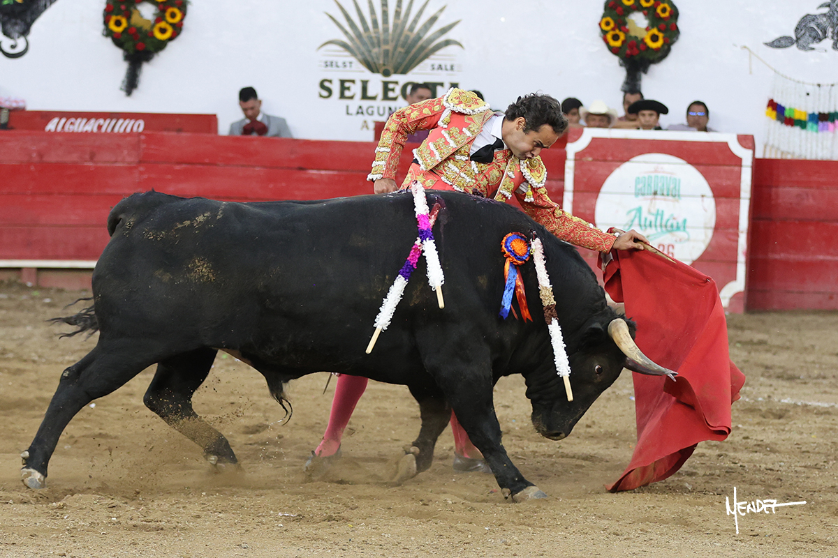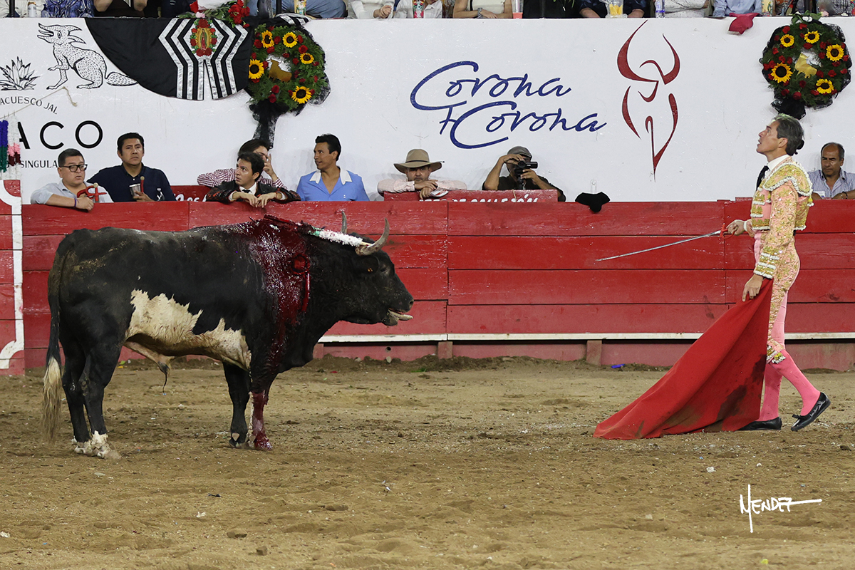 Salió el toro con el que cerraba el Carnaval de Autlán de la Grana al que saludo Marco Pérez con buenos lances a la verónica. El toro empujó fuerte en el caballo, casi derribándolo, para que. Con la muleta, el salmantino inició su faena doblándose con elegancia, después a base de actitud le dió los siguientes muletazos, por ahí algunos adornos y desplantes que llegaron al tendido y al final desafortunadamente falló con la espada teniendo que usar el descabello siendo silenciado.