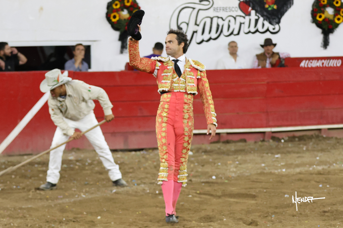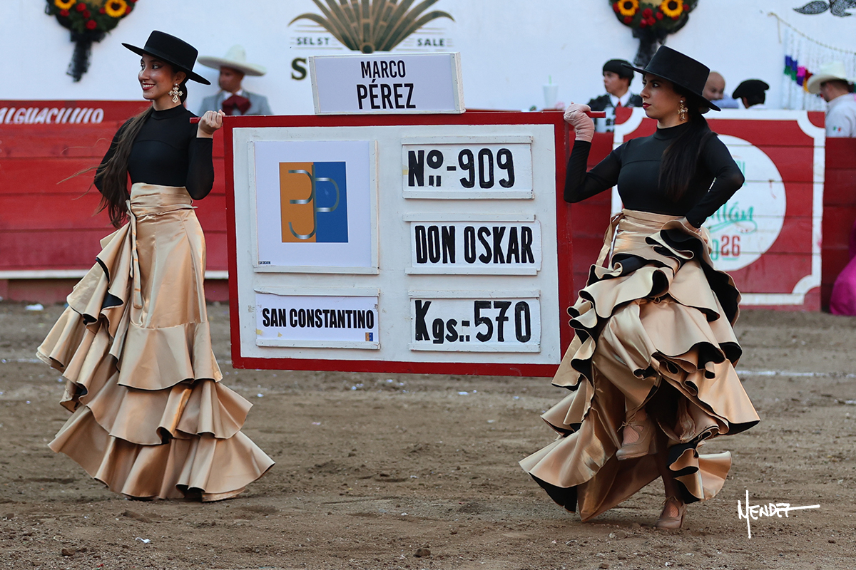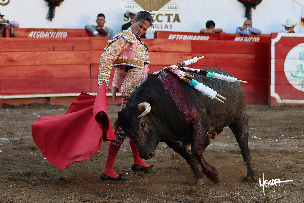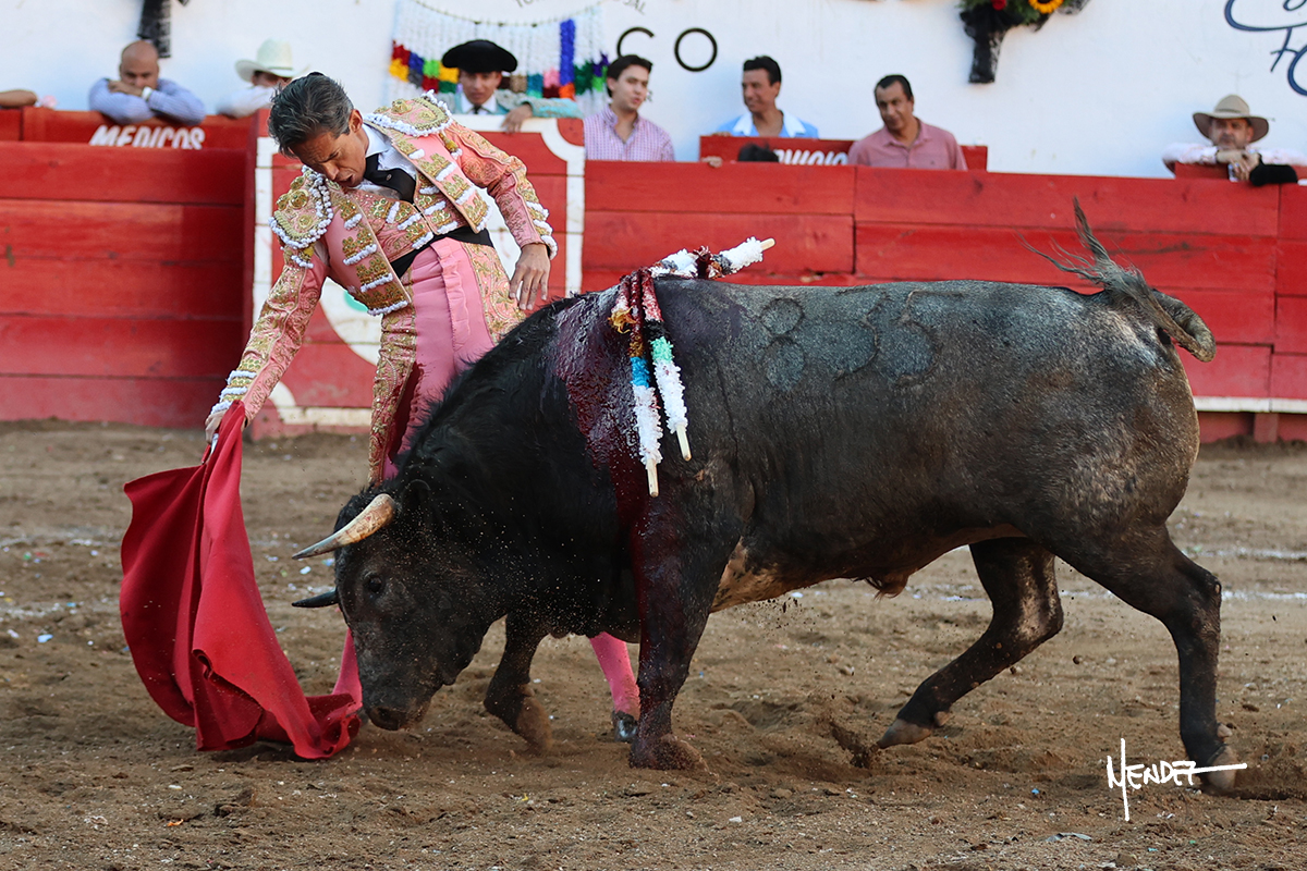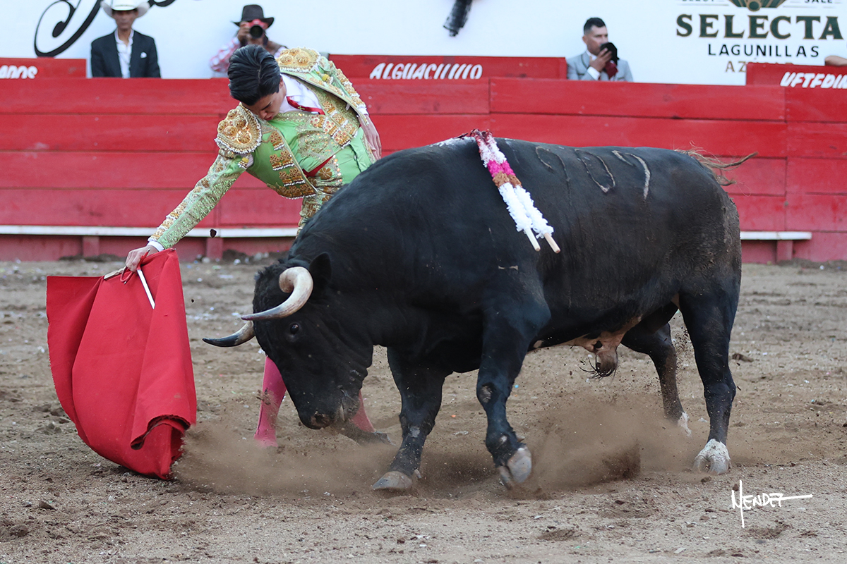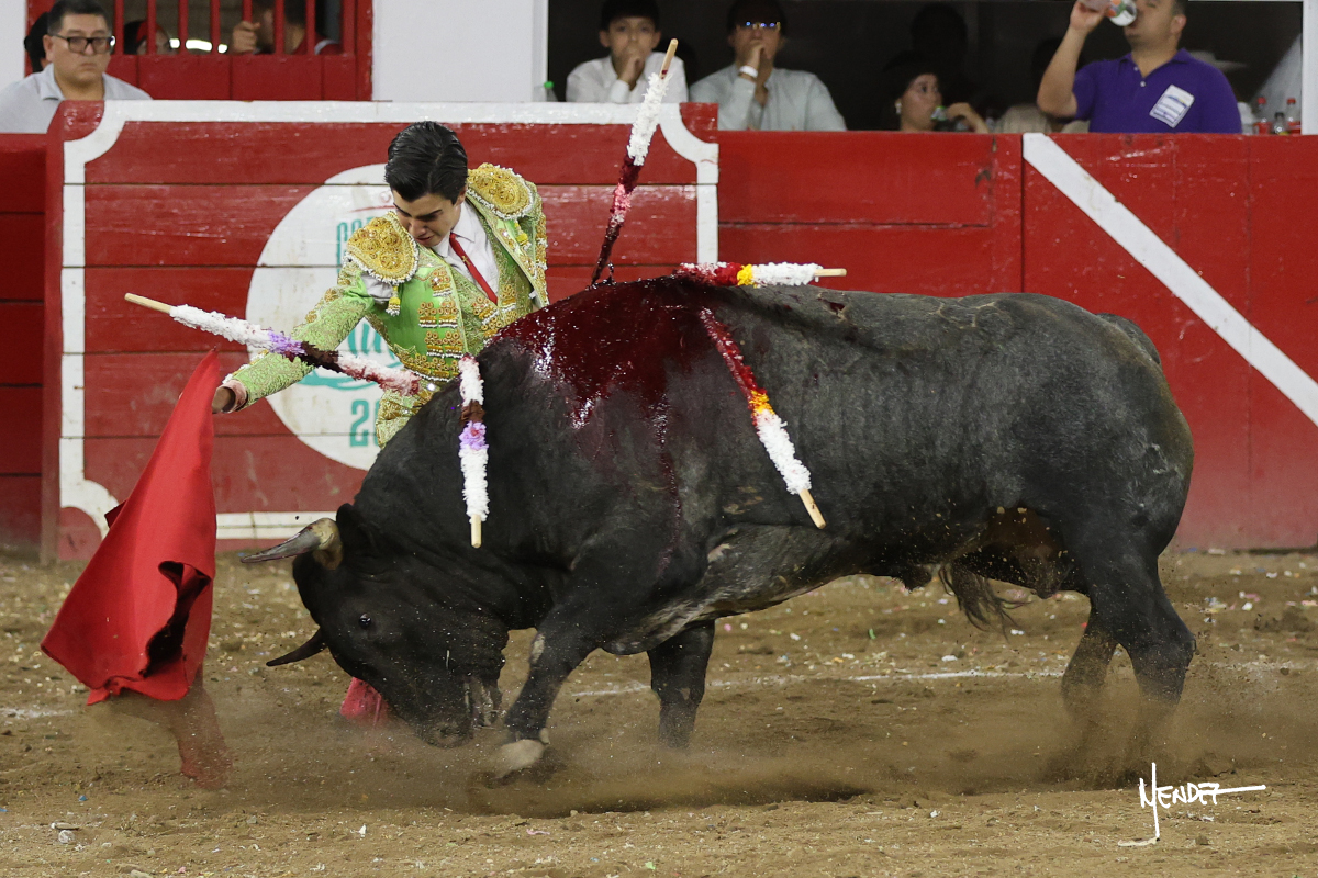 Salió el toro con el que cerraba el Carnaval de Autlán de la Grana al que saludo Marco Pérez con buenos lances a la verónica. El toro empujó fuerte en el caballo, casi derribándolo, para que. Con la muleta, el salmantino inició su faena doblándose con elegancia, después a base de actitud le dió los siguientes muletazos, por ahí algunos adornos y desplantes que llegaron al tendido y al final desafortunadamente falló con la espada teniendo que usar el descabello siendo silenciado.