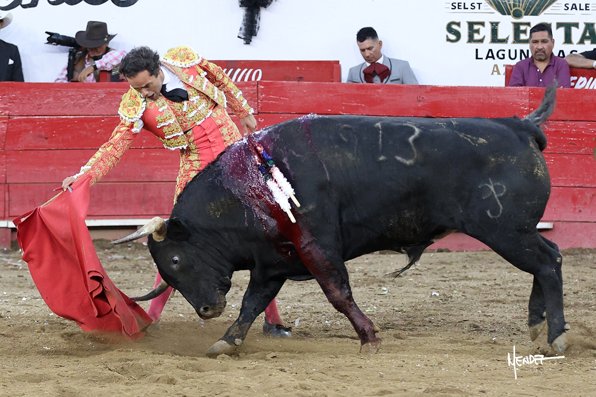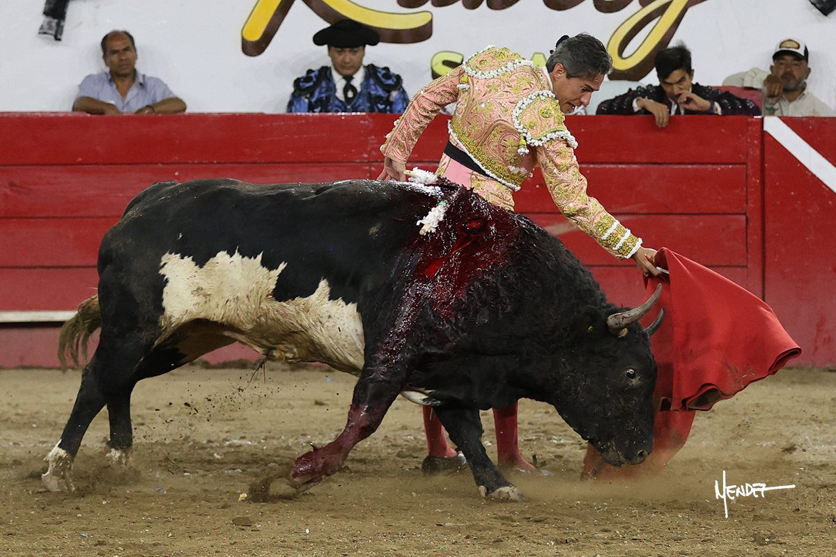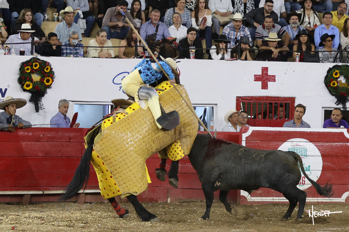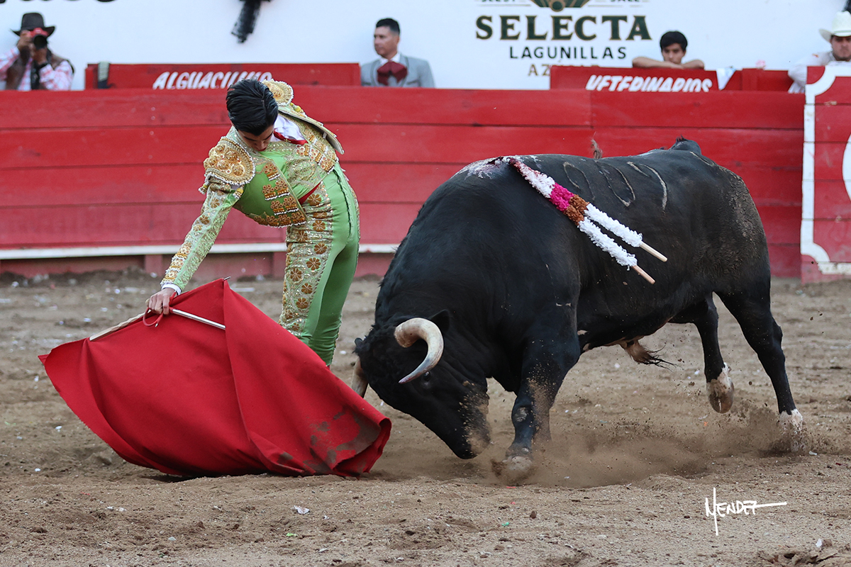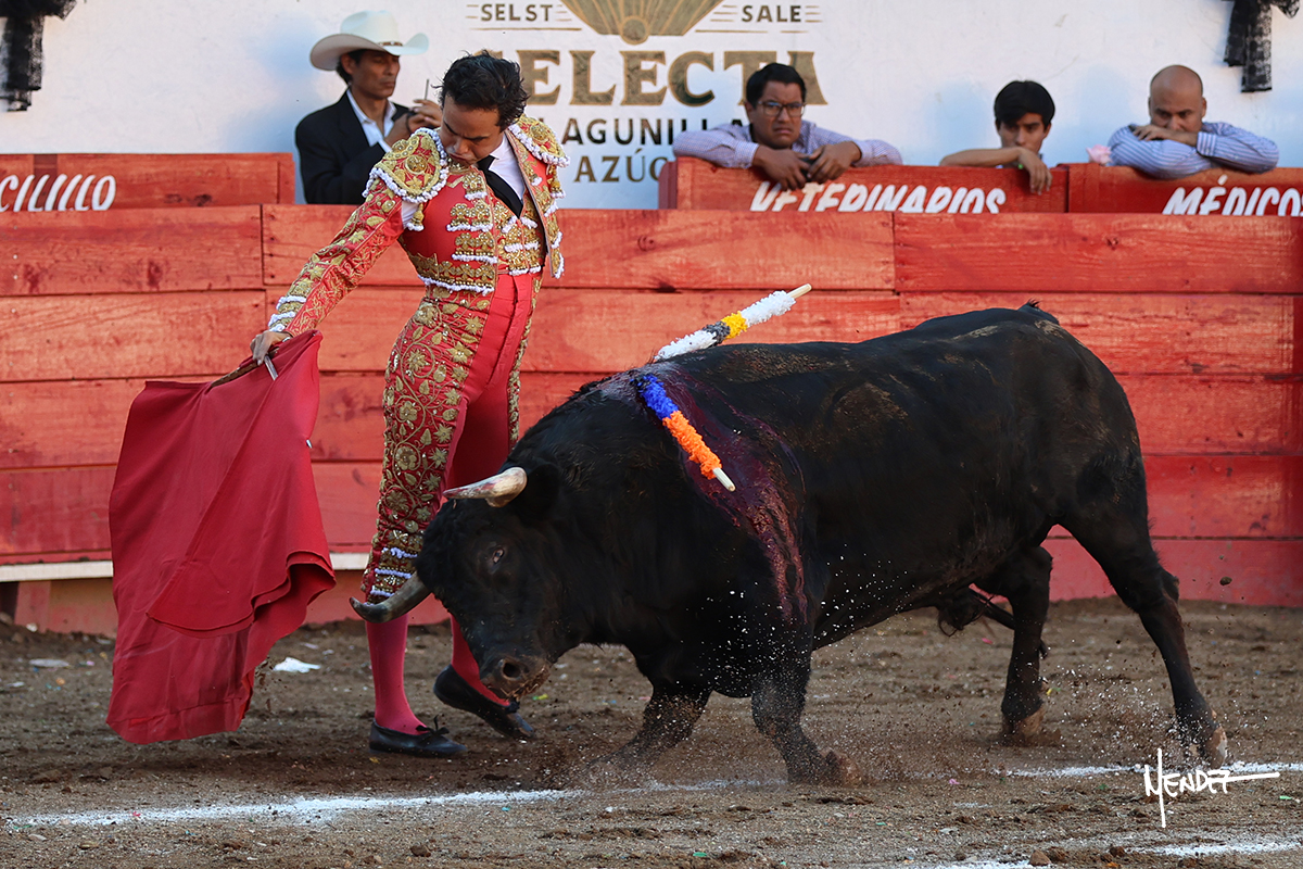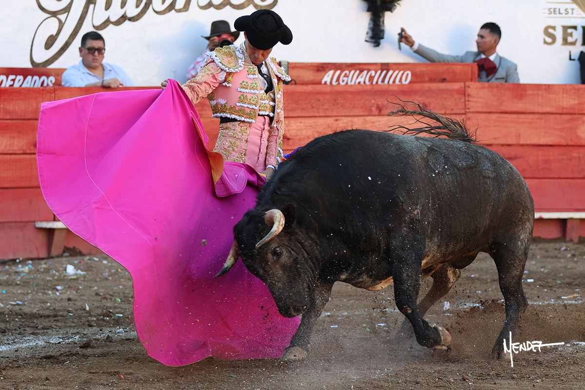 Salió el toro con el que cerraba el Carnaval de Autlán de la Grana al que saludo Marco Pérez con buenos lances a la verónica. El toro empujó fuerte en el caballo, casi derribándolo, para que. Con la muleta, el salmantino inició su faena doblándose con elegancia, después a base de actitud le dió los siguientes muletazos, por ahí algunos adornos y desplantes que llegaron al tendido y al final desafortunadamente falló con la espada teniendo que usar el descabello siendo silenciado.
