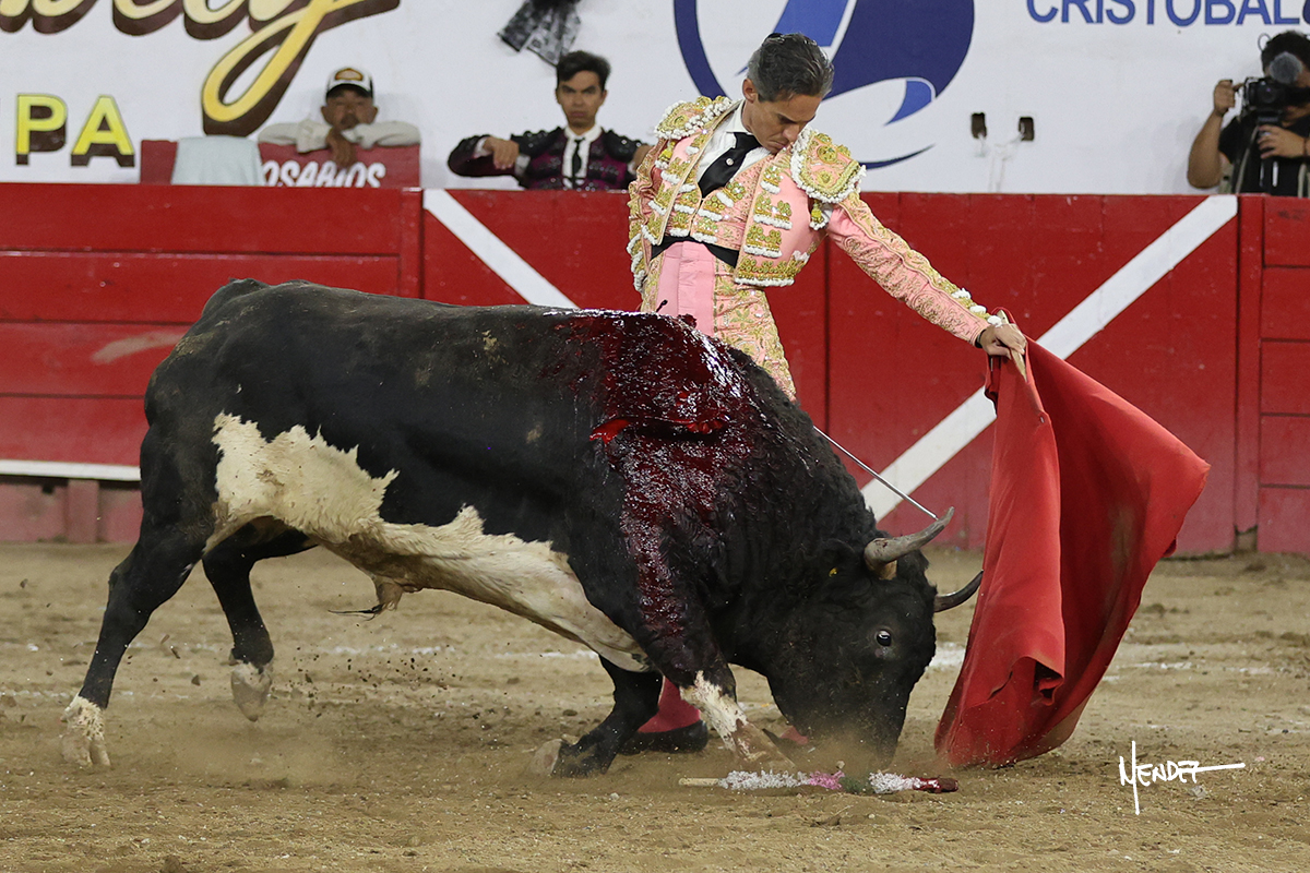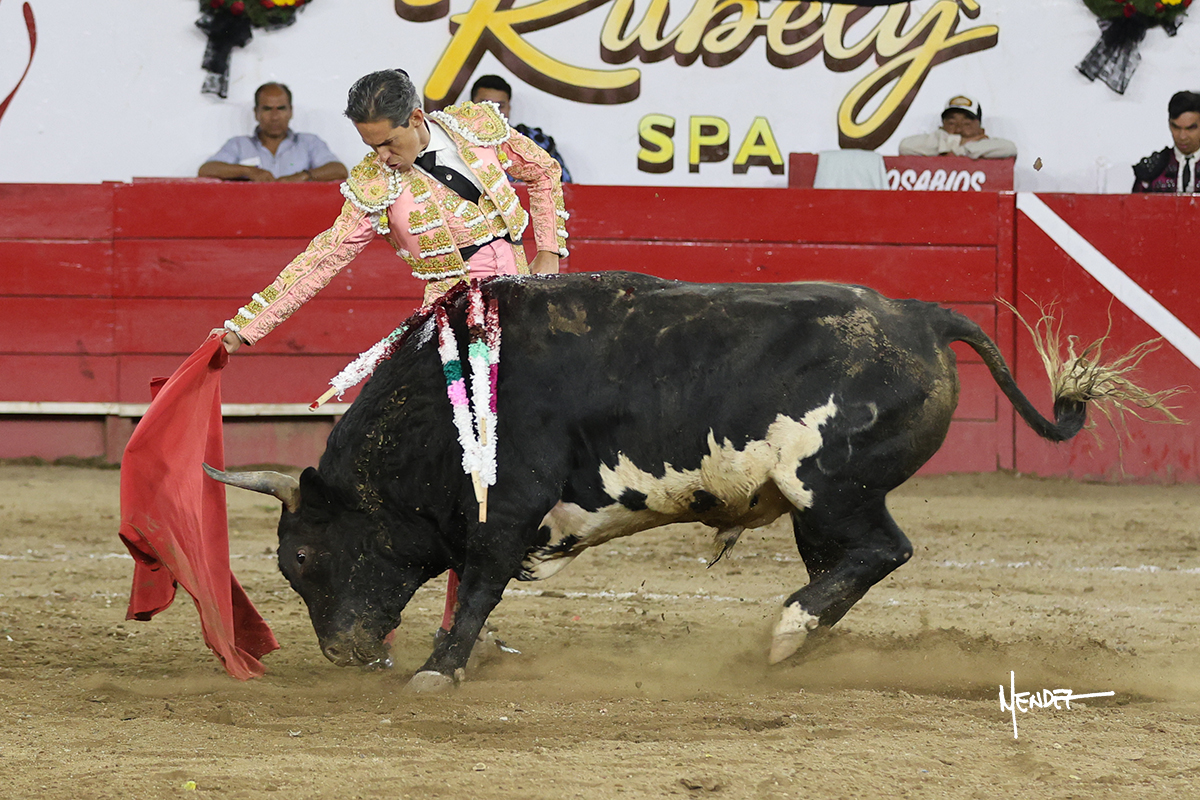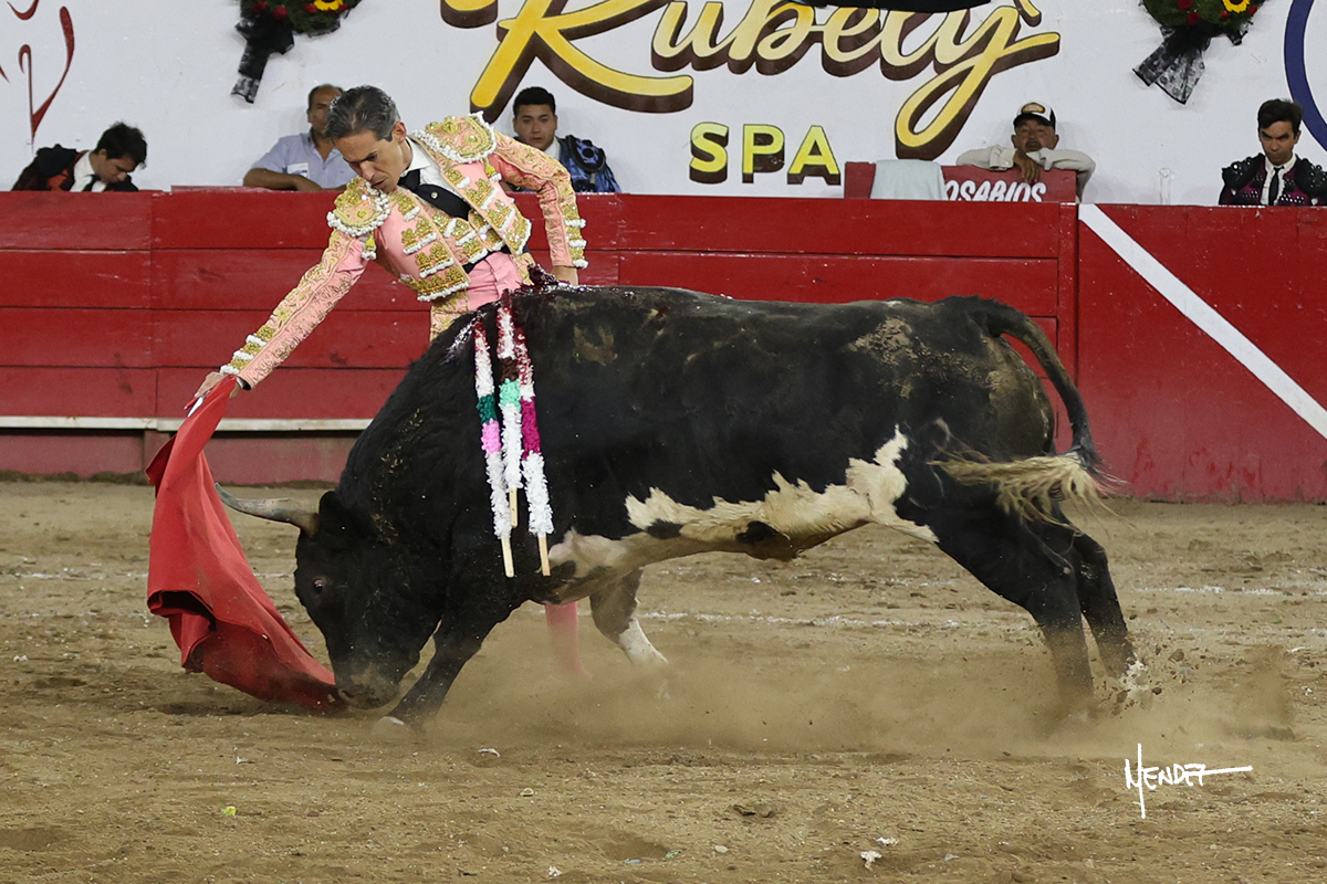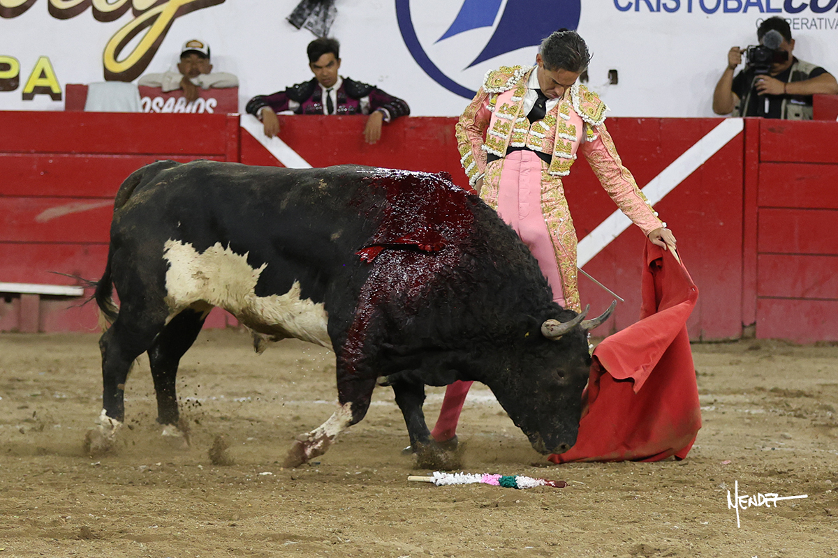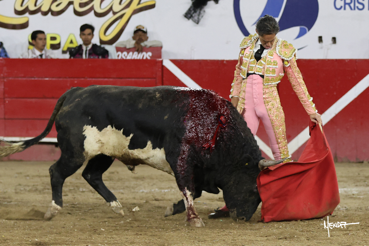 Al segundo de su lote lo saludó Juan Pablo con algunas verónicas. Cumplió el astado en el caballo siendo bien picado por Salomon Azpeitia para después con la muleta iniciara una labor importante en la que la altura y la distancia fueron claves para poder realizar una faena ante un toro que empezó al principio a perder las manos. Tenía debilidad, pero tenía también una calidad que supo aprovecharla al máximo Juan Pablo y le cuajó muletazos para que terminara una faena que fue más, culminó con un media estocada y ovación.