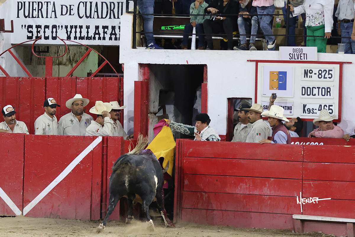 Salió el segundo de Diego Silveti, un toro que mostró calidad desde un principio en los lances con el capote. Brindo al fotógrafo Oskar Ruizesparza, ya después con la muleta, una faena que fue a más, el toro se creció ante el castigo y posteriormente aprovechó muy bien Silveti su bravura y calidad, le empezó a cuajar las primeras tandas con gusto, con profundidad, en la que hubo momentos en el que se abandonó el torero sobre, todo toreando al natural dejando muletazos con mucho sentimiento y profundidad, le siguieron varios muletazos en redondo, molinetes y al final algunos adornos muy toreros con sello propio en la que el toro seguía más con transmisión, por lo que la gente pidió con fuerza el indulto que al final, el palco concedió. Al final, la vuelta al ruedo de Diego Silveti con el Ganadero Juan Pablo Corona.