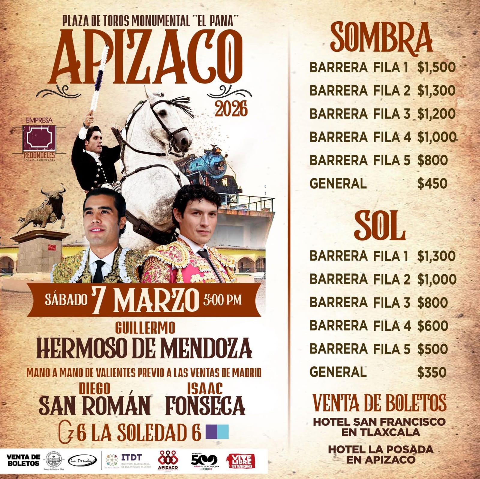 En el cartel figuran el rejoneador Guillermo Hermoso de Mendoza y los matadores Diego San Roman e Isaac Fonseca el festejo es organizado por la empresa «Redondeles».