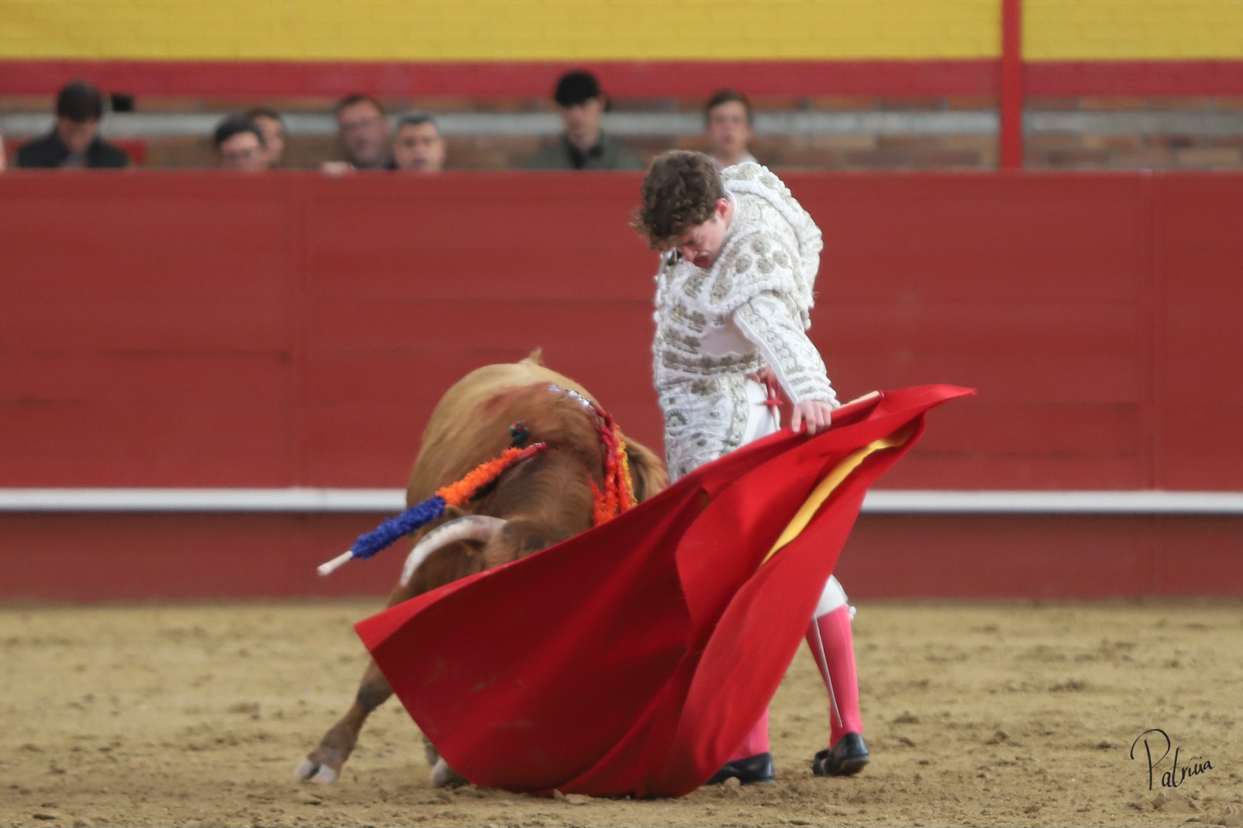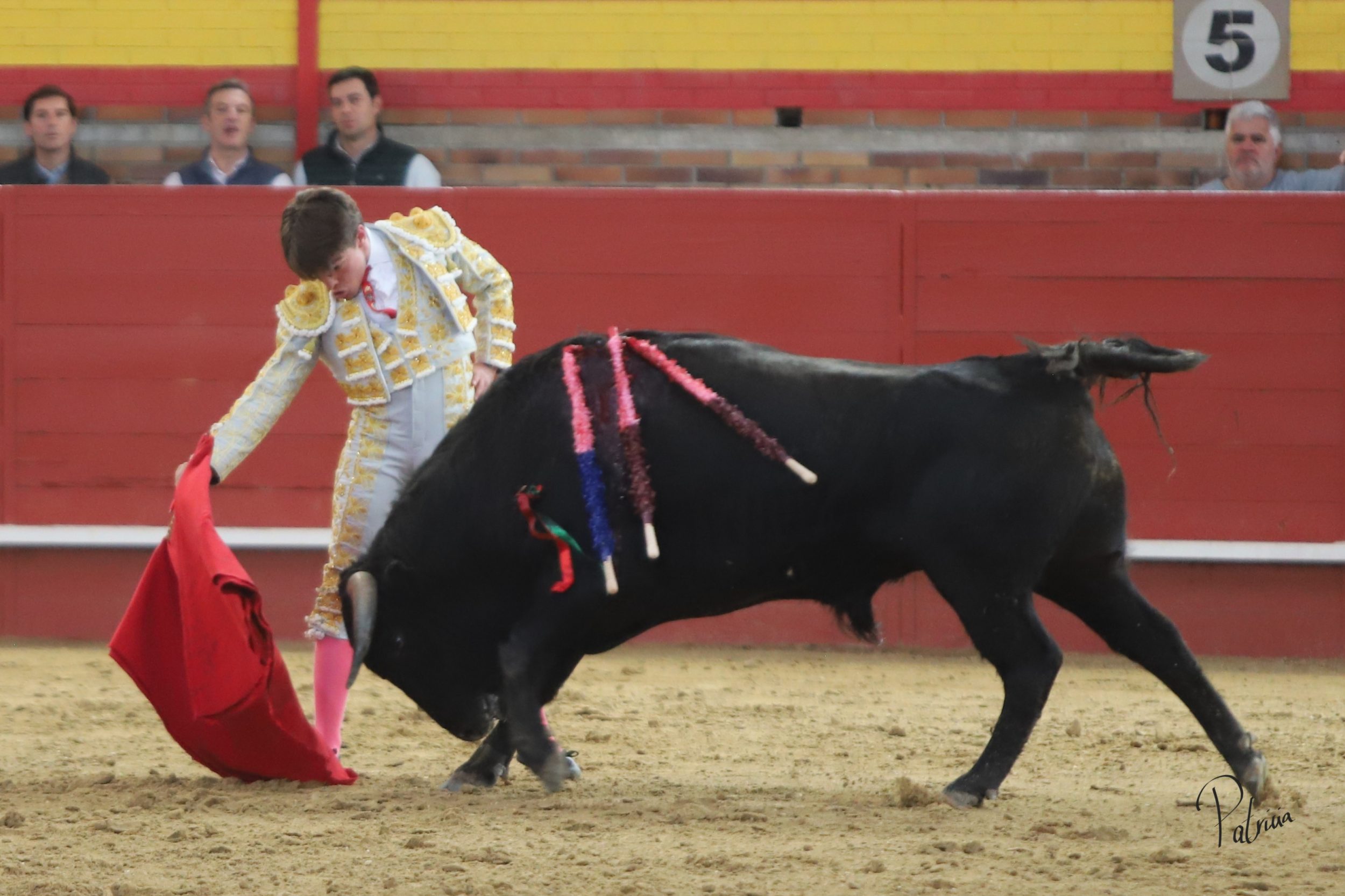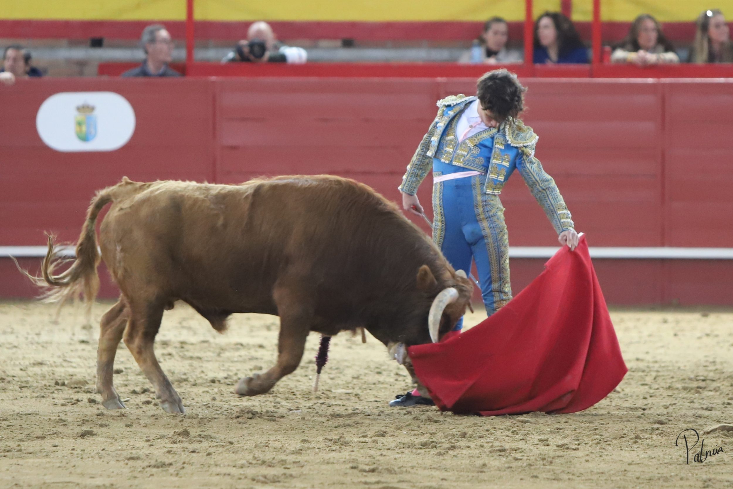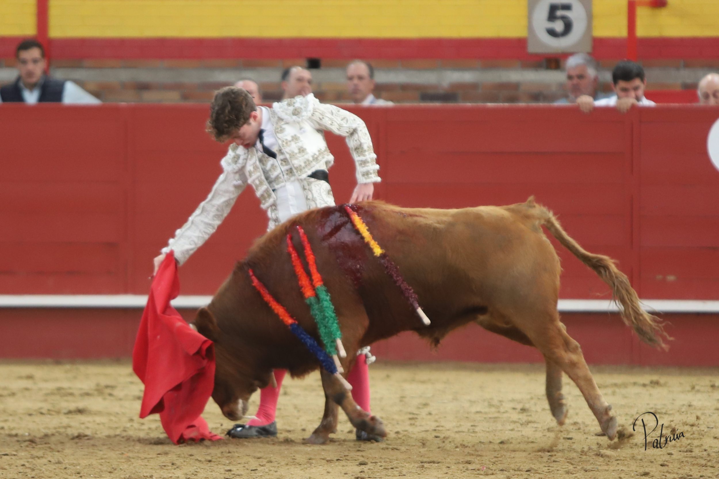 Gabriel Segura se fue a la puerta de chiqueros para recibir a portagayola a «Mineron» de Cerro Longo, un animal que le pasó por encima, aunque sin consecuencias. Cambió los terrenos y junto a las tablas continuó con dos largas cambiadas de rodillas y un farol. Después se pudo estirar a la verónica en su variado saludo capotero. Rojo realizó su quite en los medios, pero el novillo se lo llevó por delante, aunque sin aparentes consecuencias. Replicó Segura y también le prendió sin aparentes consecuencias, aunque quedando a merced del animal. Se fue directo a los medios para comenzar su faena, citándolo en la larga distancia y pasándoselo con un cambiado por la espalda sin probaturas. Siguió por el pitón derecho de un animal que cabeceaba y deslucía el muletazo. A pesar de ello, Segura lo toreaba con mando en su pañosa. Había que perderle pasos y también le daba tiempo entre tandas. Cambió al natural y de uno en uno lo fue pasando, aguantando. A pies juntos, girando sobre sí mismo y sin moverse, logró una tanda al natural reconocida en el tendido. Retomó el derecho y con muleta planchá se enroscó con el haciéndose con la embestida del novillo. Le recetó los últimos naturales de uno en uno entre desplantes, adornándose. Cerró por bernardinas, pero se le vino recto y se lo llevó por delante, volteándolo feamente. Se recompuso y volvió a la cara del animal para seguir por bernardinas. Falló con la espada.