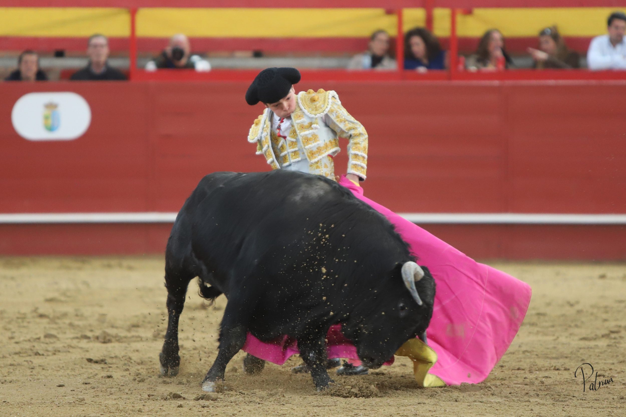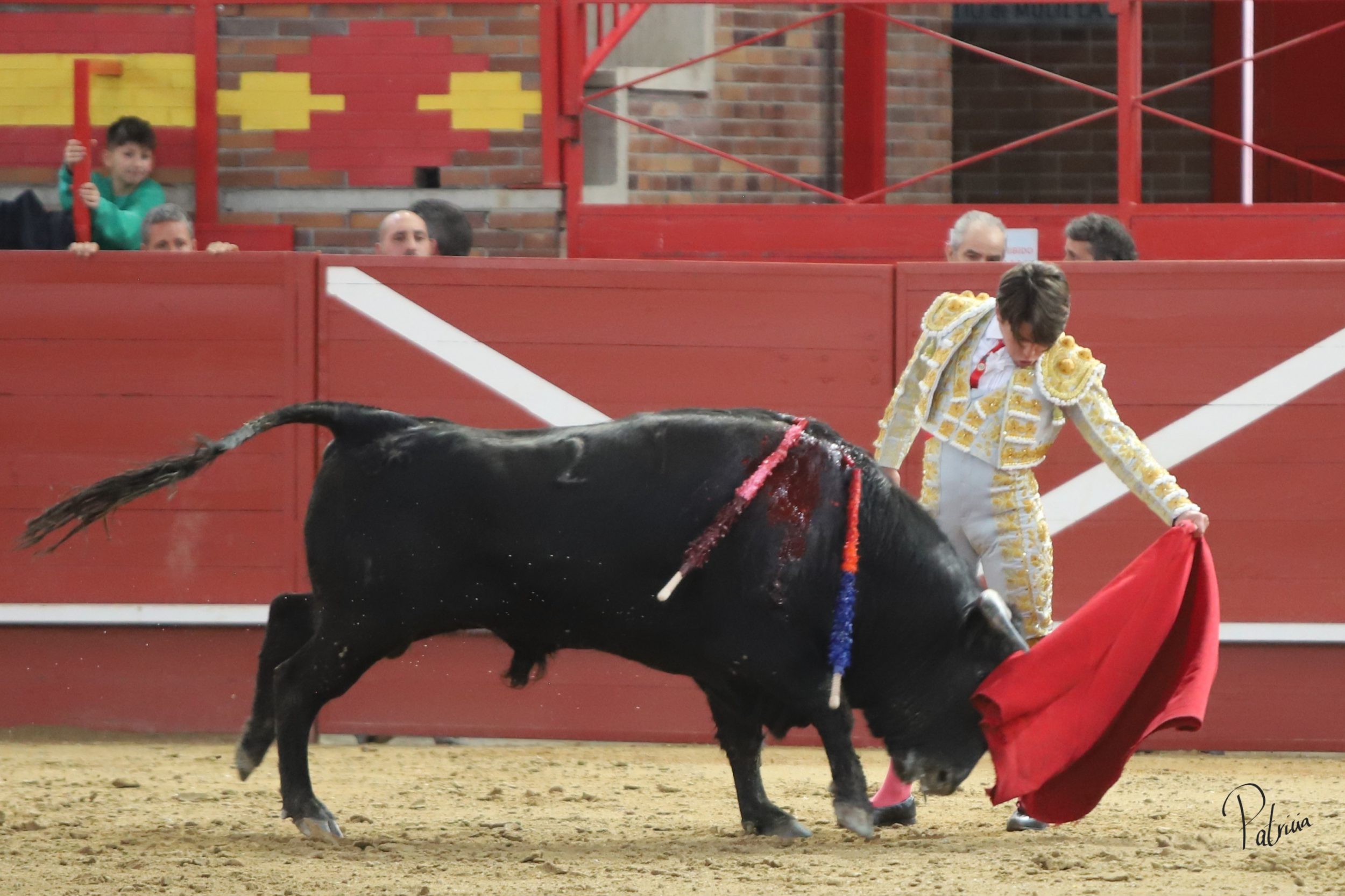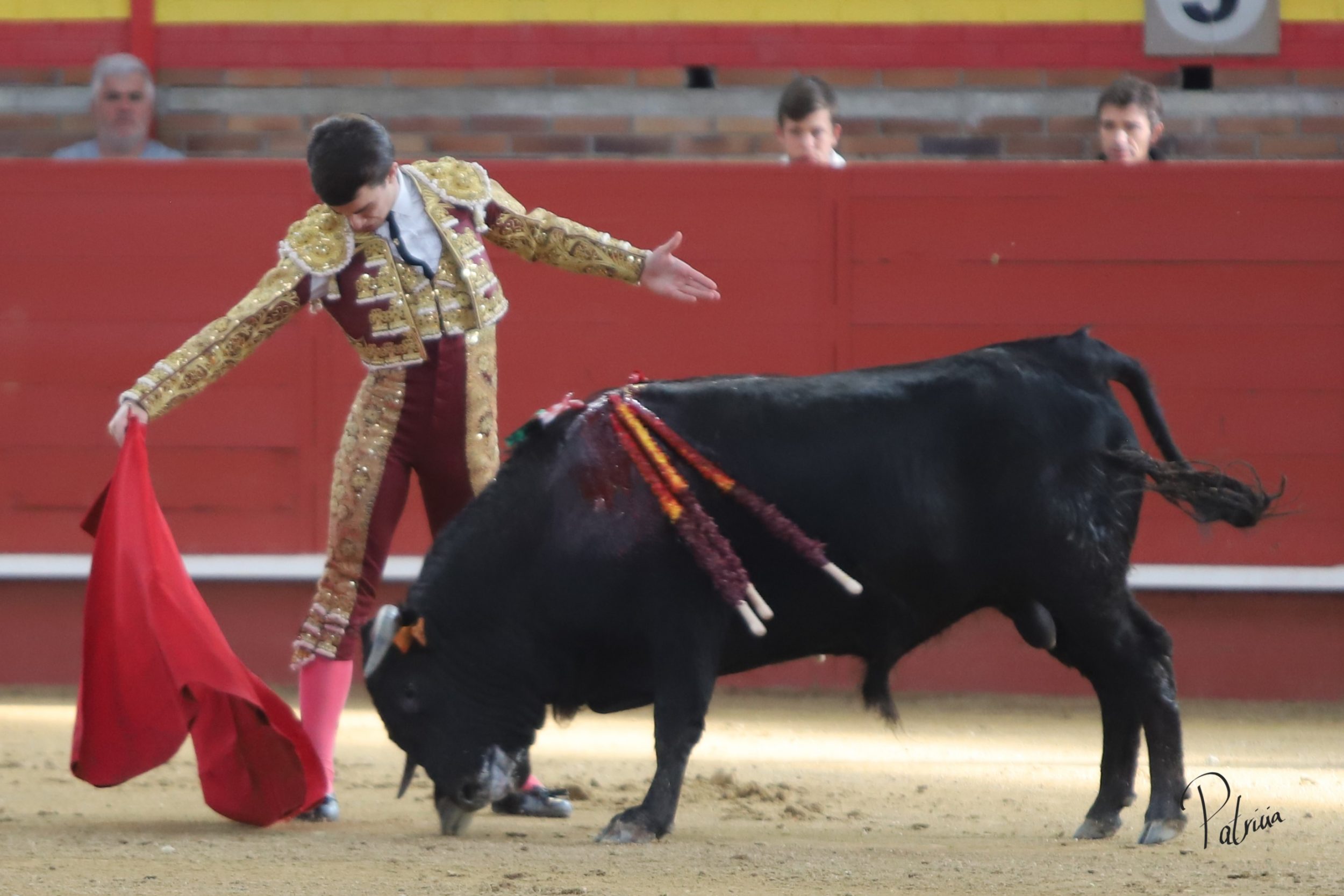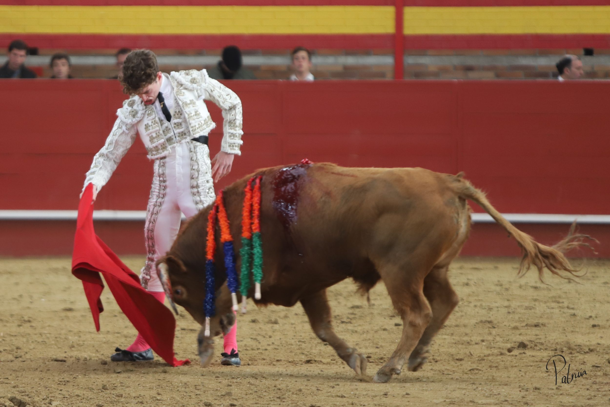 Gabriel Segura se fue a la puerta de chiqueros para recibir a portagayola a «Mineron» de Cerro Longo, un animal que le pasó por encima, aunque sin consecuencias. Cambió los terrenos y junto a las tablas continuó con dos largas cambiadas de rodillas y un farol. Después se pudo estirar a la verónica en su variado saludo capotero. Rojo realizó su quite en los medios, pero el novillo se lo llevó por delante, aunque sin aparentes consecuencias. Replicó Segura y también le prendió sin aparentes consecuencias, aunque quedando a merced del animal. Se fue directo a los medios para comenzar su faena, citándolo en la larga distancia y pasándoselo con un cambiado por la espalda sin probaturas. Siguió por el pitón derecho de un animal que cabeceaba y deslucía el muletazo. A pesar de ello, Segura lo toreaba con mando en su pañosa. Había que perderle pasos y también le daba tiempo entre tandas. Cambió al natural y de uno en uno lo fue pasando, aguantando. A pies juntos, girando sobre sí mismo y sin moverse, logró una tanda al natural reconocida en el tendido. Retomó el derecho y con muleta planchá se enroscó con el haciéndose con la embestida del novillo. Le recetó los últimos naturales de uno en uno entre desplantes, adornándose. Cerró por bernardinas, pero se le vino recto y se lo llevó por delante, volteándolo feamente. Se recompuso y volvió a la cara del animal para seguir por bernardinas. Falló con la espada.