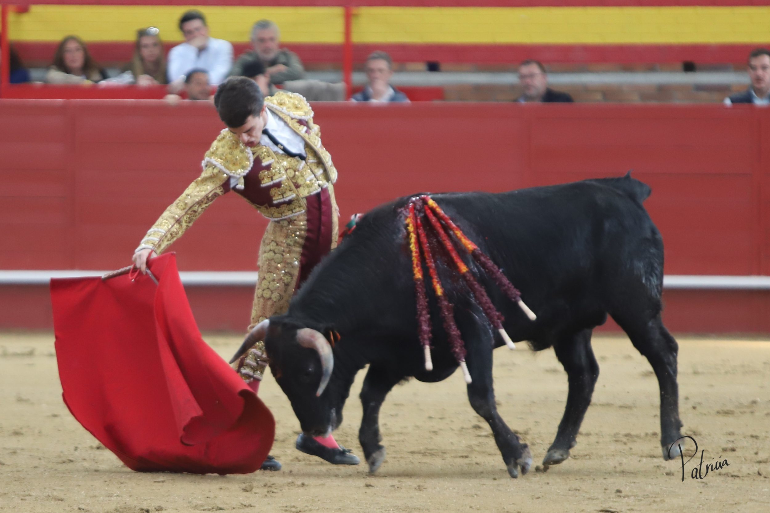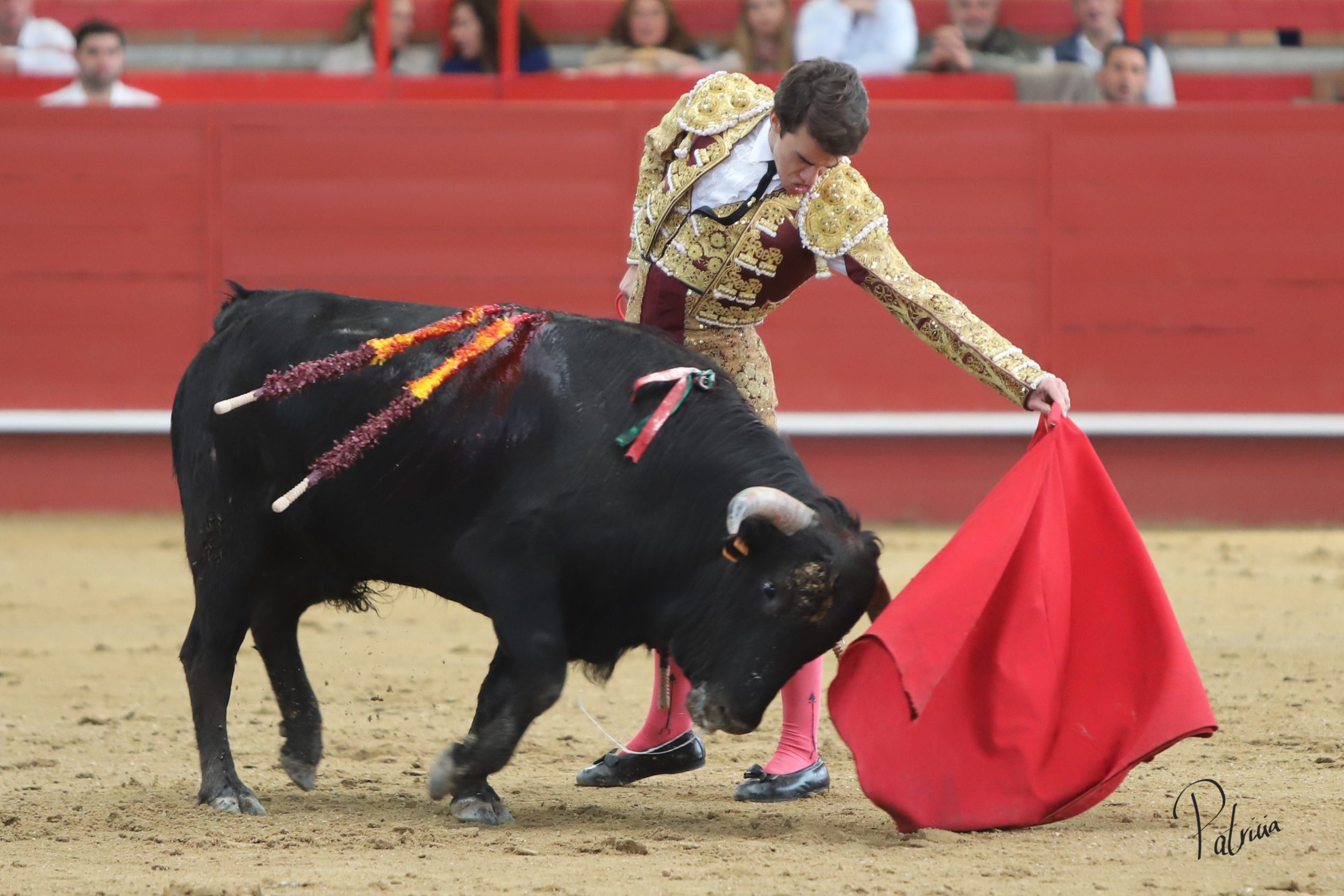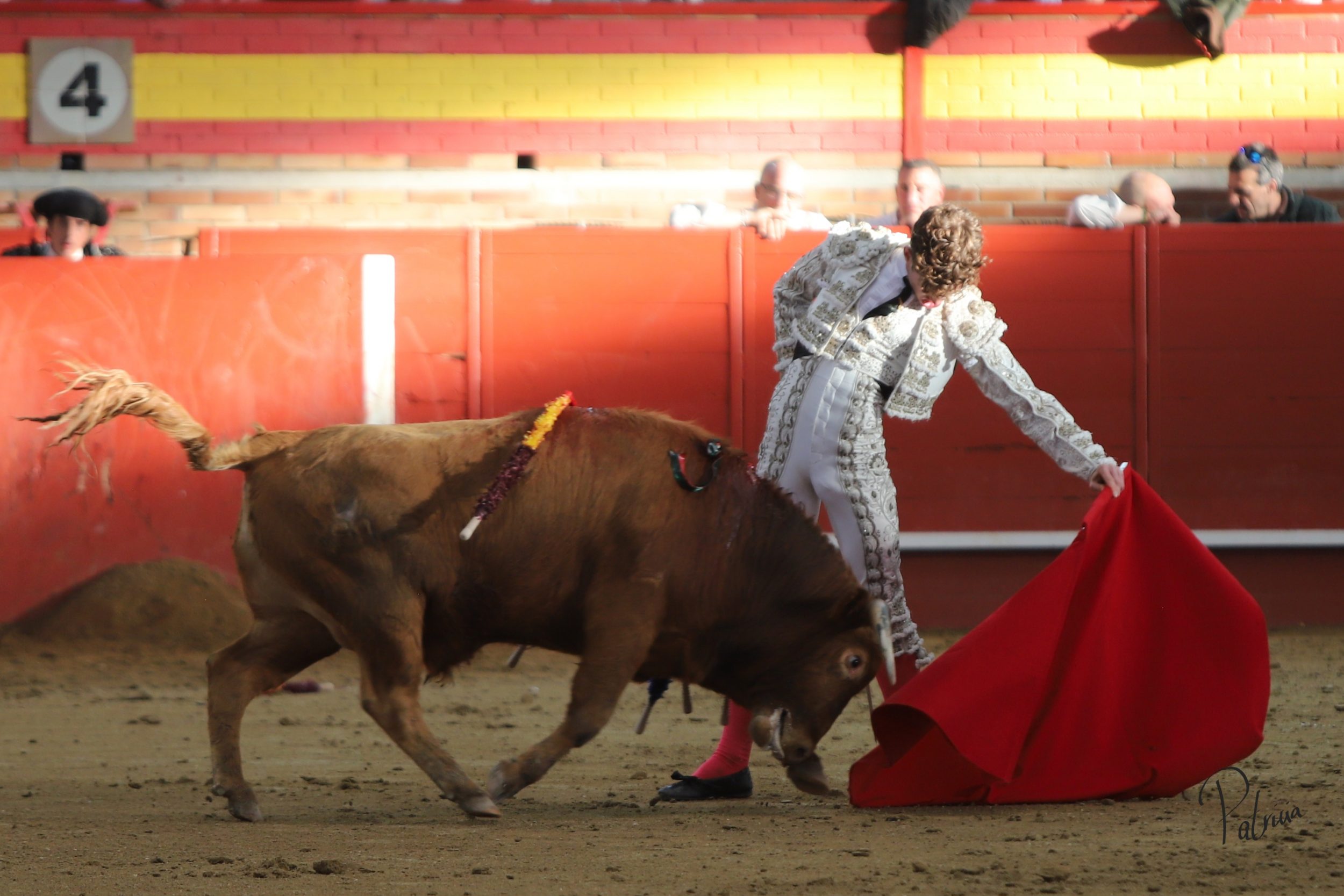 Israel Guirao paró a «Porcelano» de Guerrero y Carpintero con una larga cambiada para después pasarlo con una brega llevada. Segura intentó lucirse con su quite con más ganas que opciones. En los medios, sin probaturas, inició su faena de muleta con un pase cambiado por la espalda. Siguió sobre el pitón derecho cerrando la tanda con un cambio de mano. Siguió por el derecho toreando en redondo a un animal de extraordinarias condiciones, aunque medido de fuerza. Cambió al natural y le perdía pasos hasta lograr girar sobre sí mismo. Se iba viniendo algo más corto, por lo que buscó recursos de su tauromaquia para poner al respetable en pie. Alternó pitones dándole el pecho y tirando de el en cada pase entre aplausos. Se lució por el derecho, pasándolo en su muleta sin moverse ni un ápice. Deleitó con unas luquesinas para cerrar su labor de muleta. Hizo su epílogo por bernardinas y un cierre explosivo que puso al tendido de acuerdo. Lo mató de una fulminante estocada.